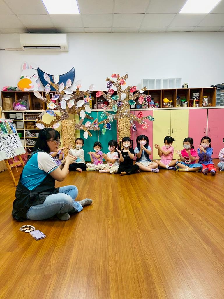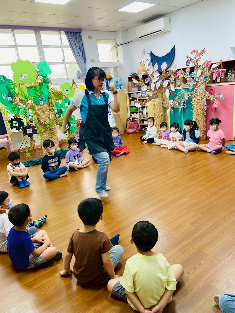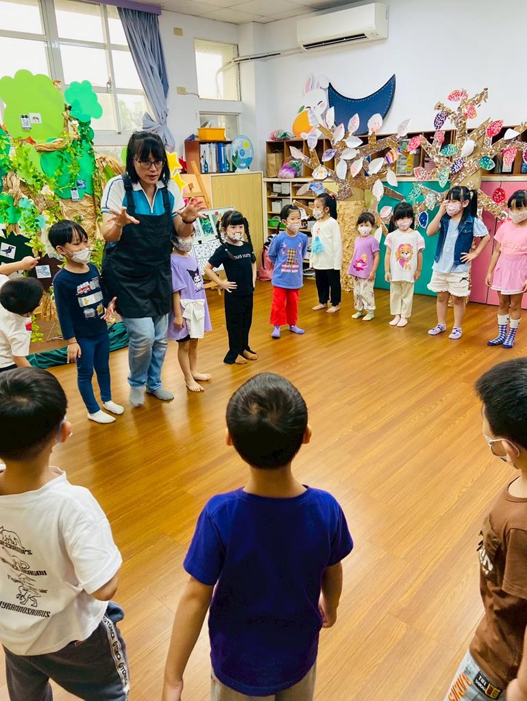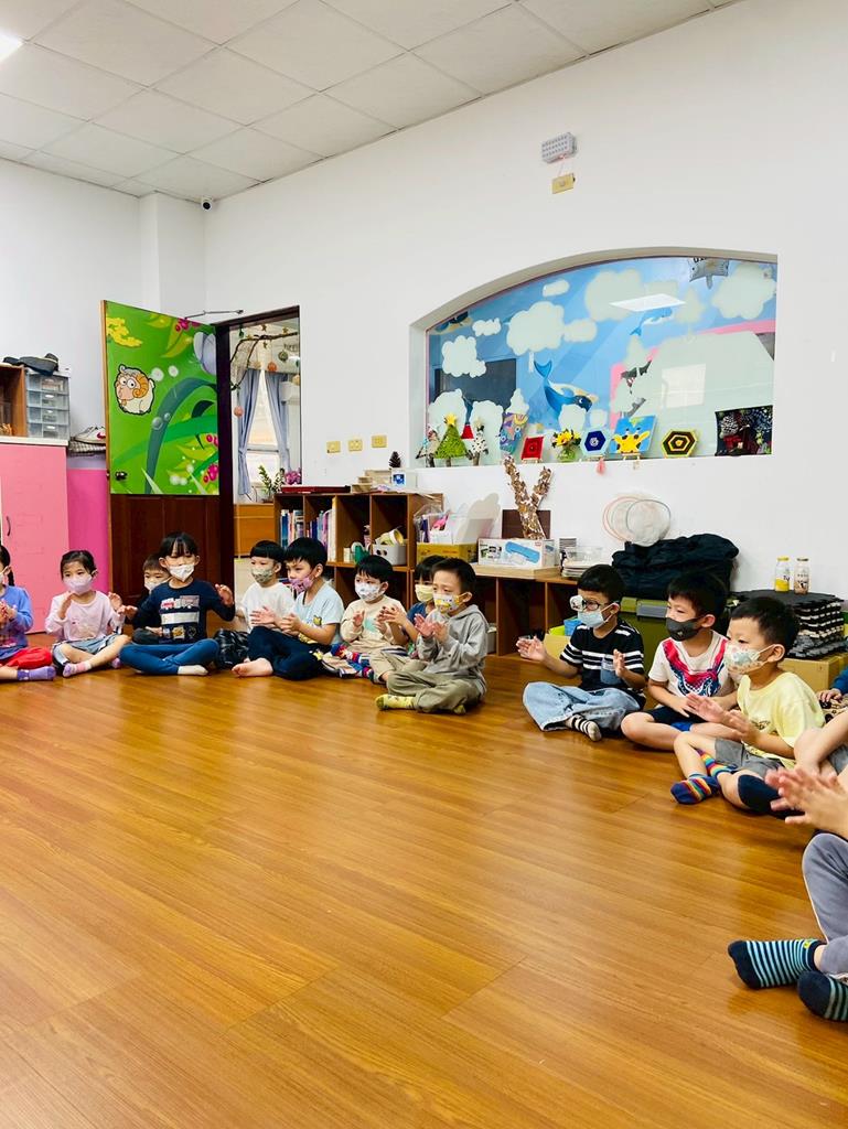老師與孩子進行好玩的聽音停遊戲,並分成小組創作「腳步舞」