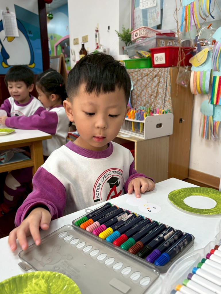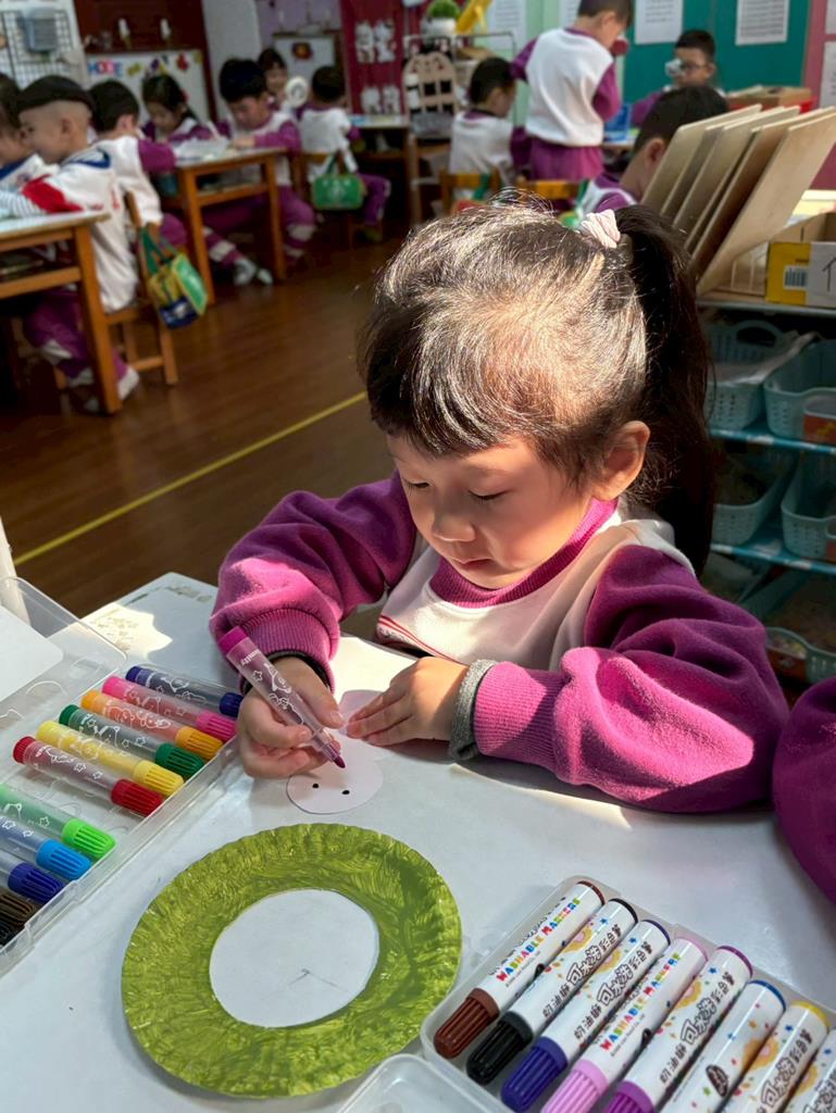 孩子們利用蛋糕紙盤進行聖誕花圈DIY並裝飾在聖誕樹上