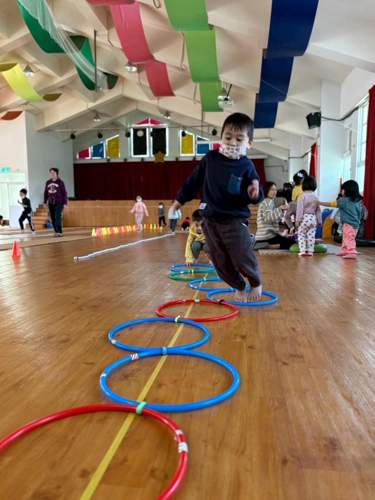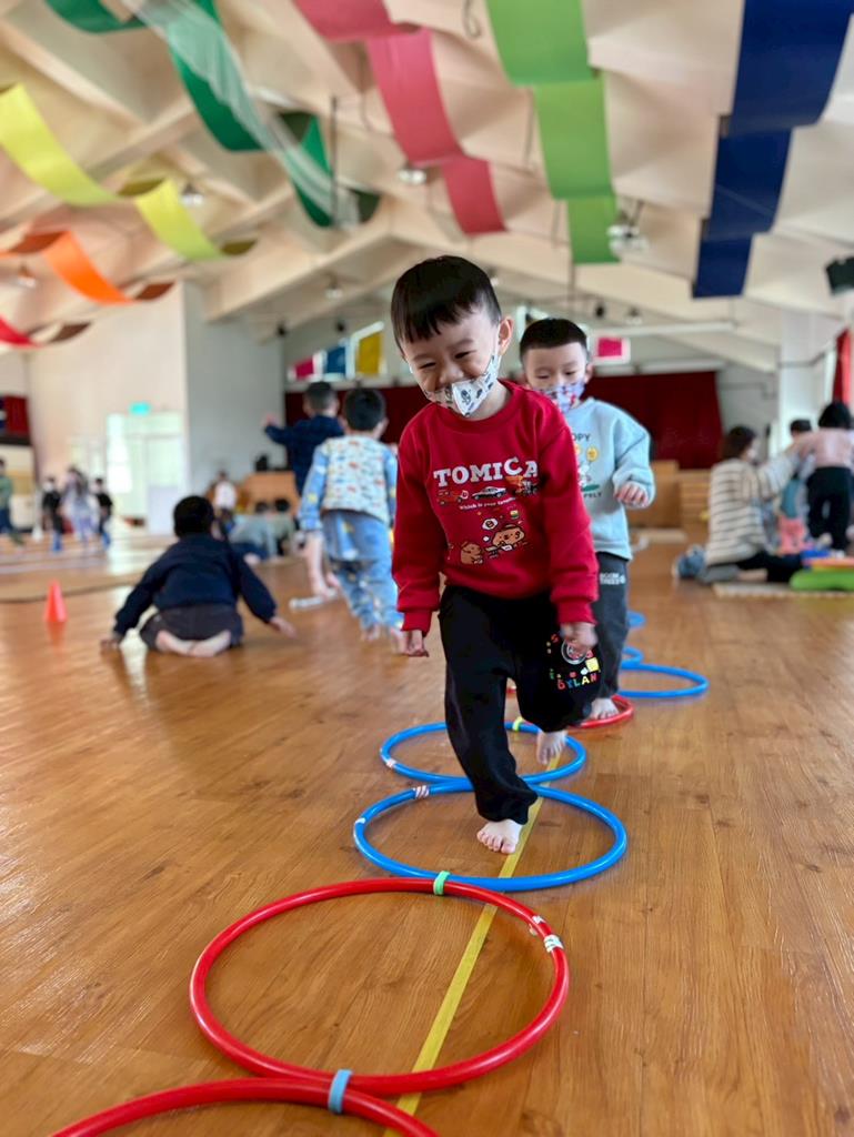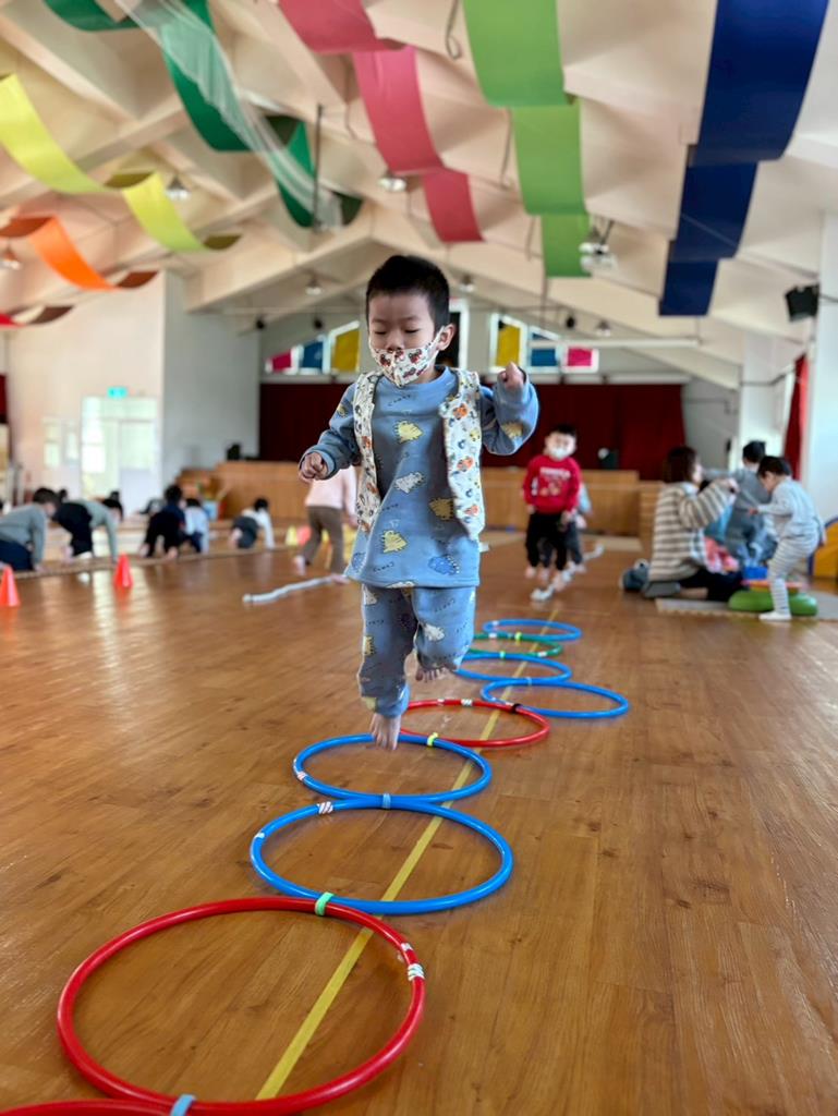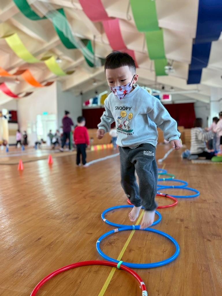 邀請幼兒運用各種器材進行大肌肉運動