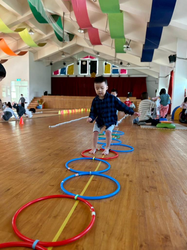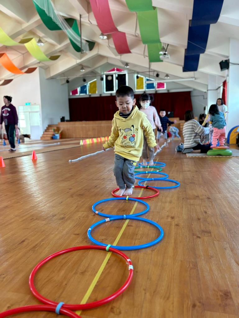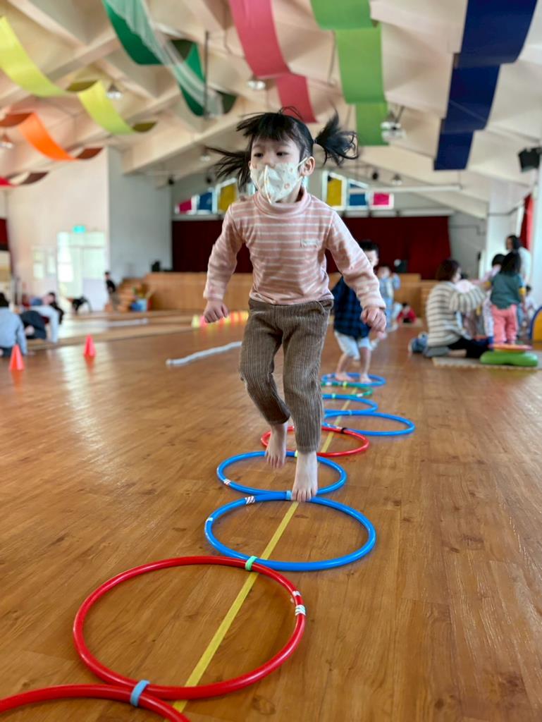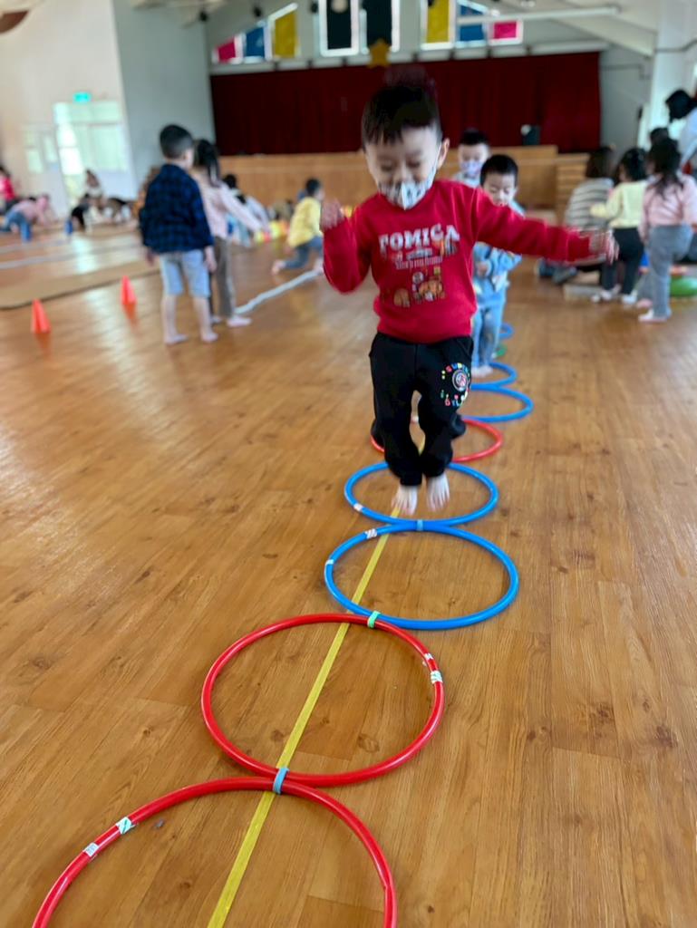 邀請幼兒運用各種器材進行大肌肉運動
