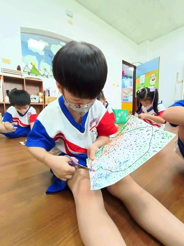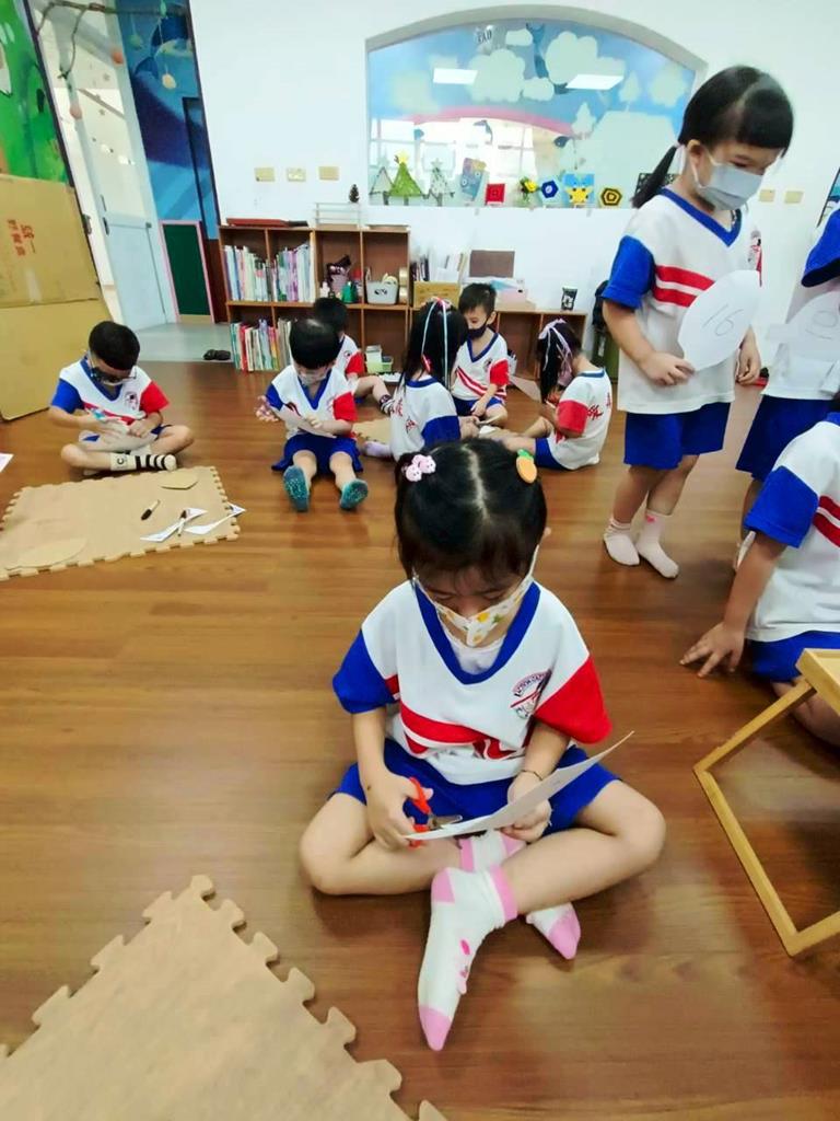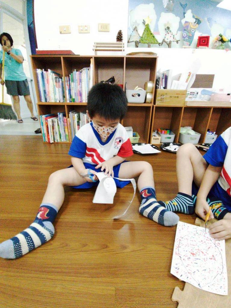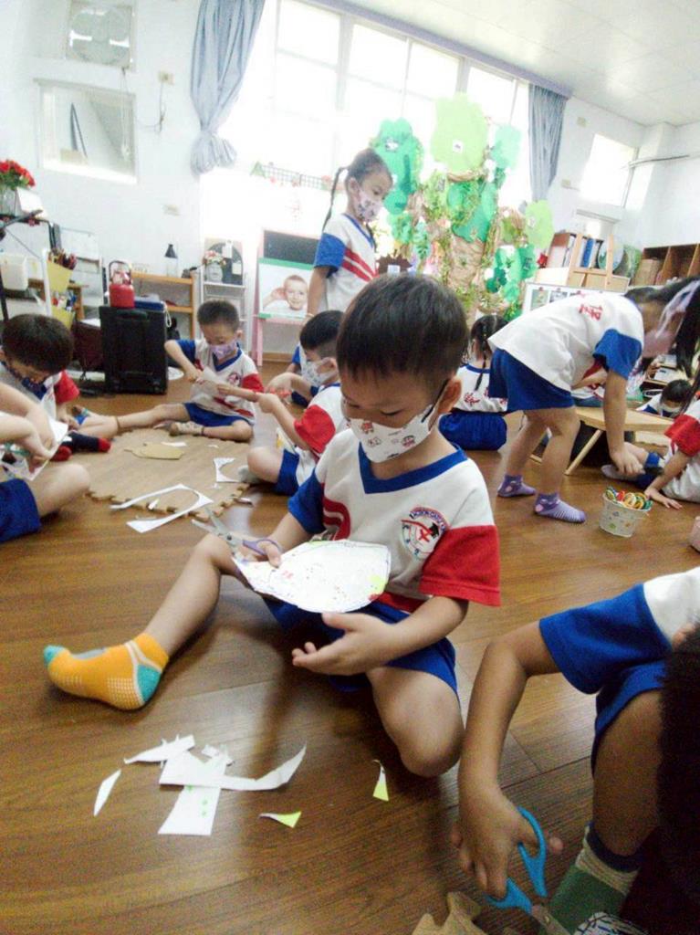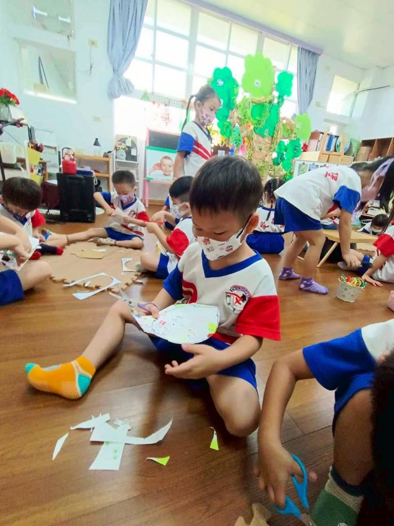 孩子們用模板描出葉片並自己剪下來,完成了聲音葉片