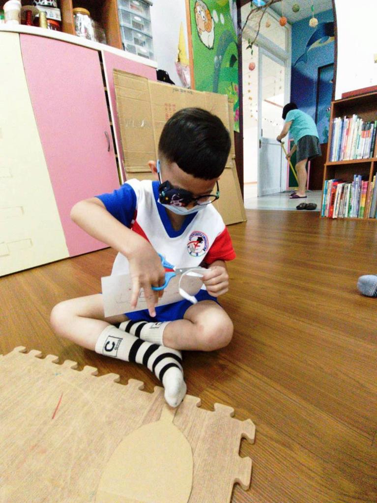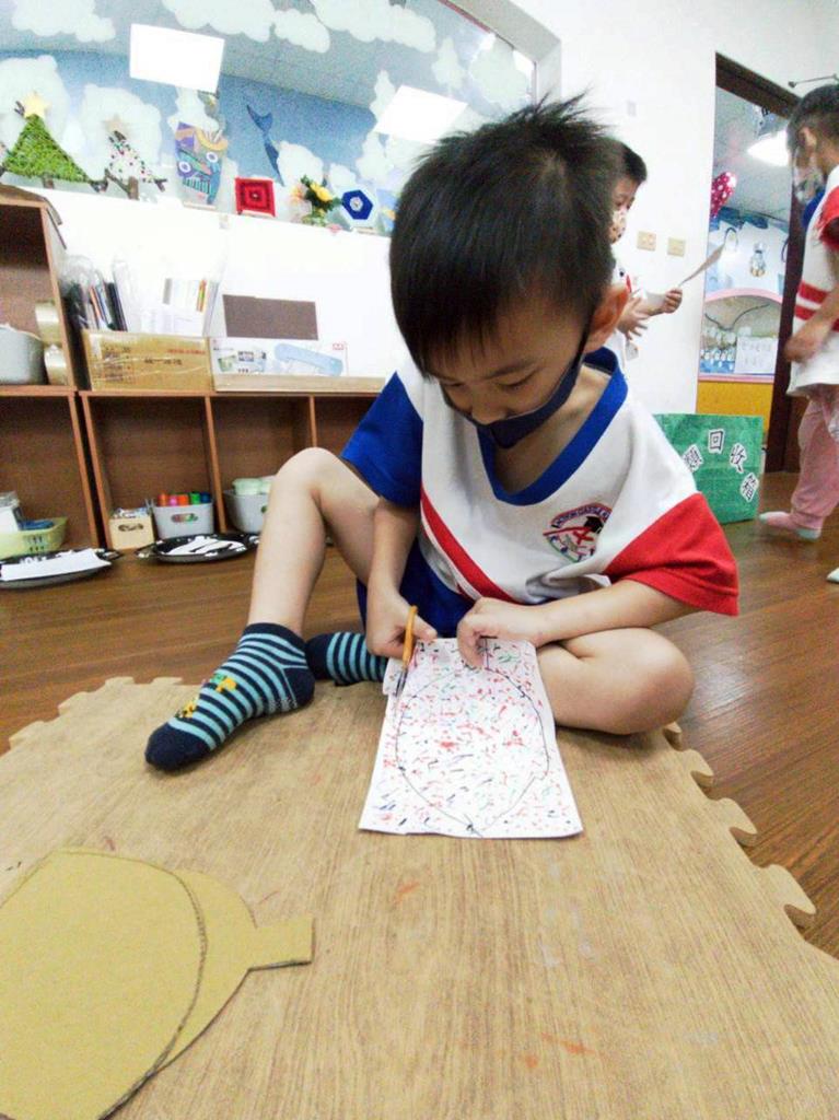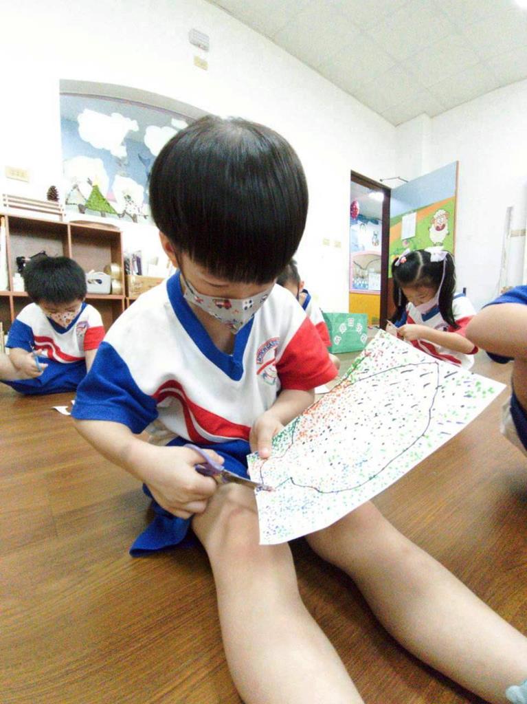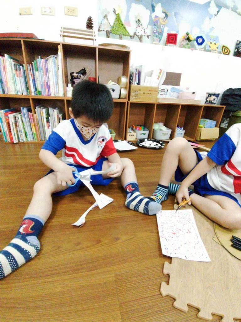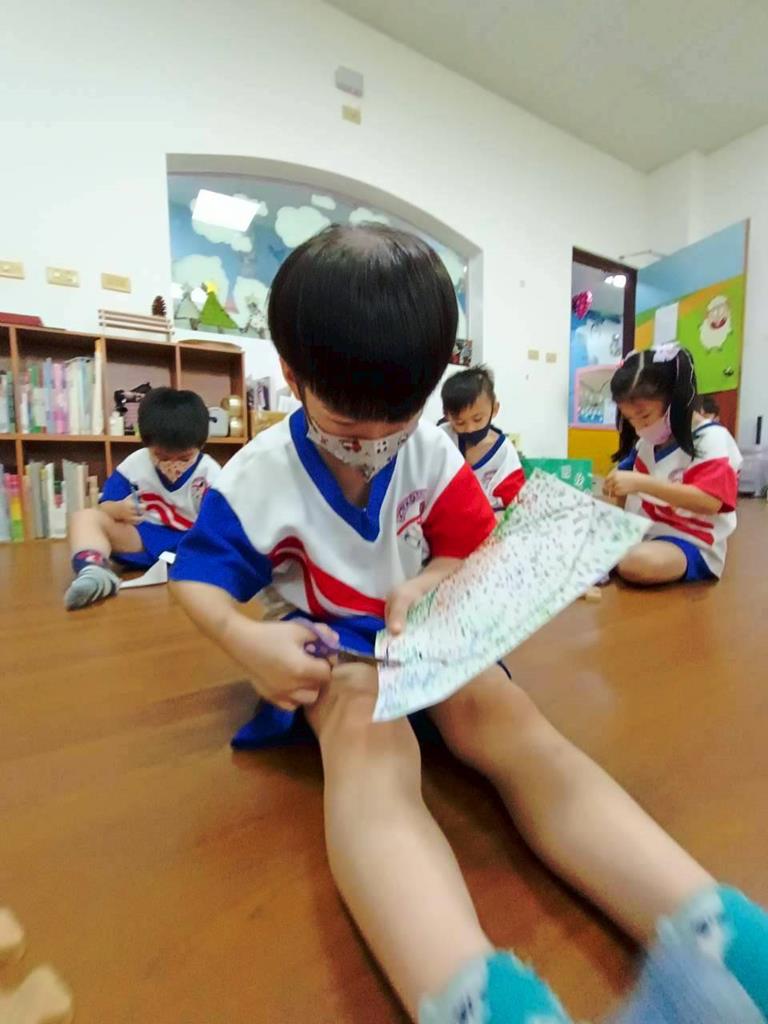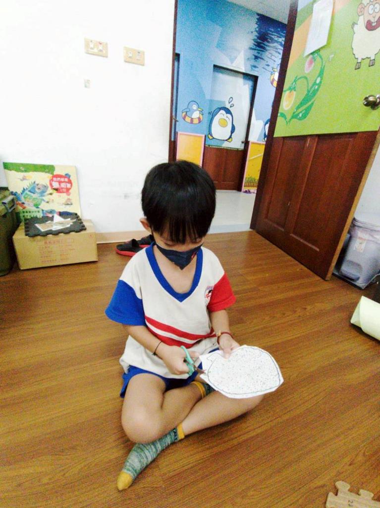 孩子們用模板描出葉片並自己剪下來,完成了聲音葉片