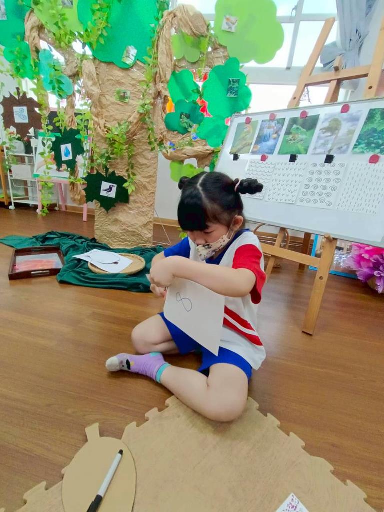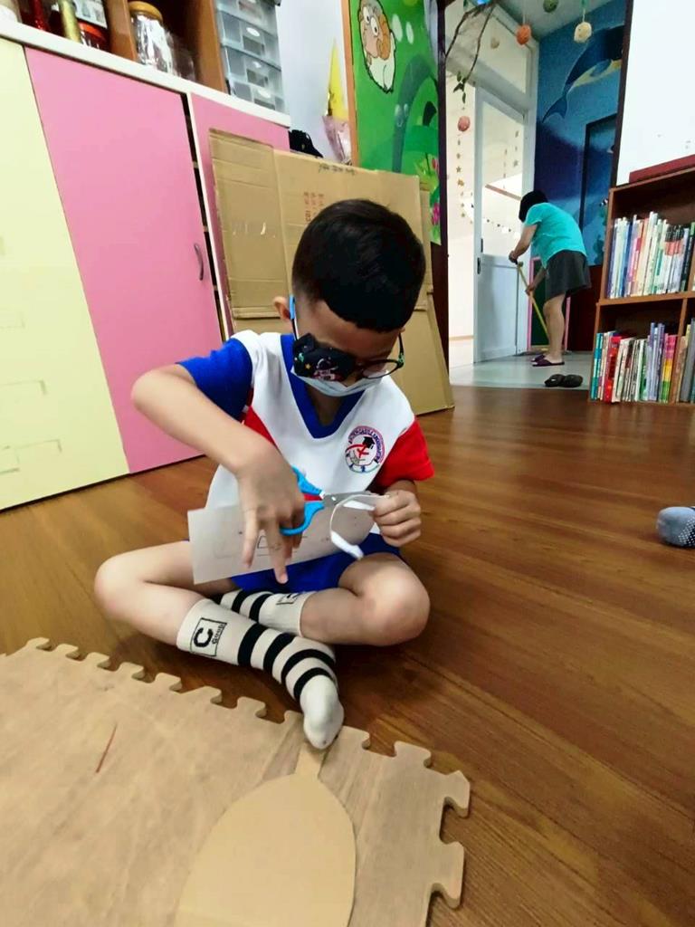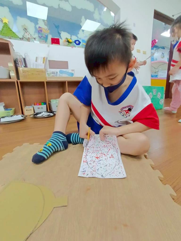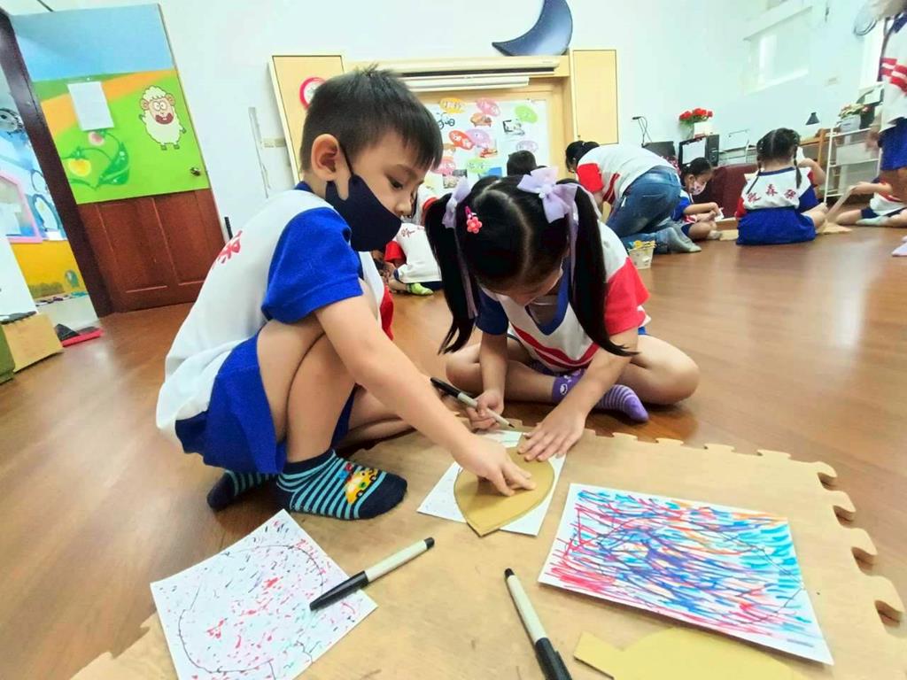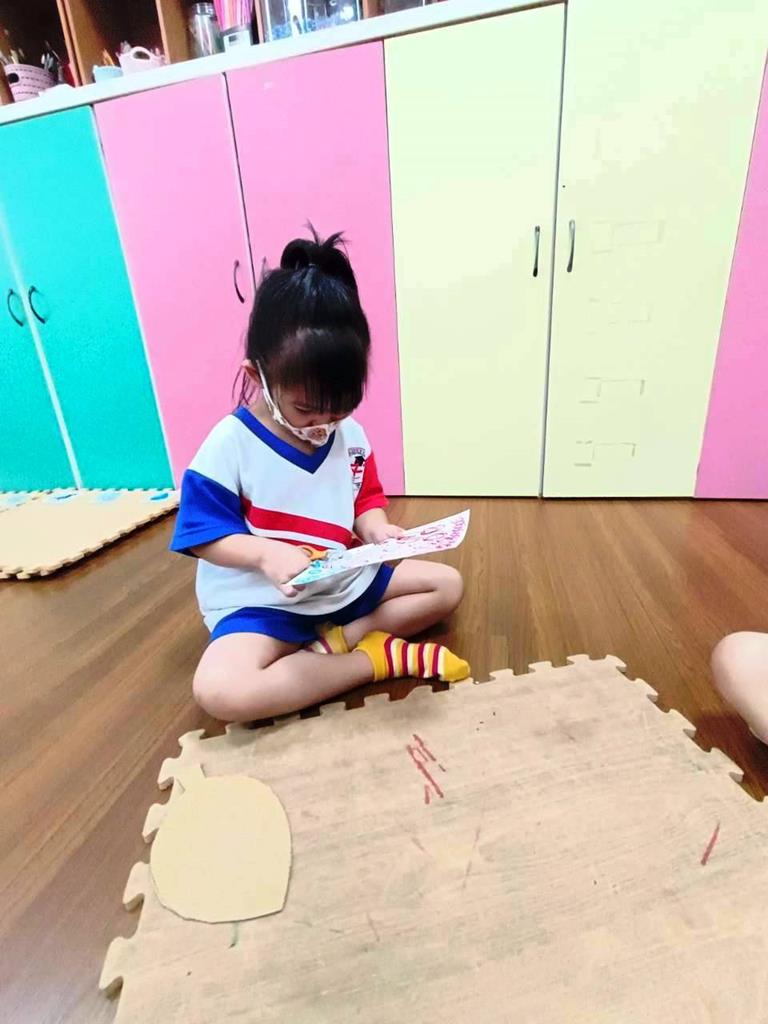 孩子們用模板描出葉片並自己剪下來,完成了聲音葉片