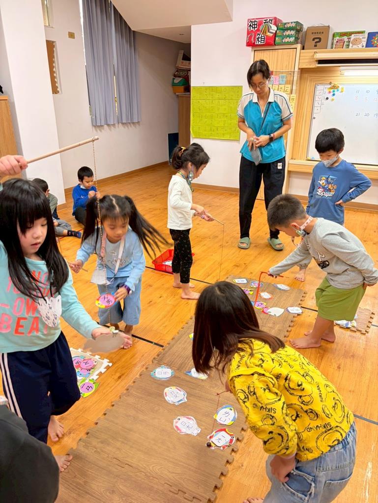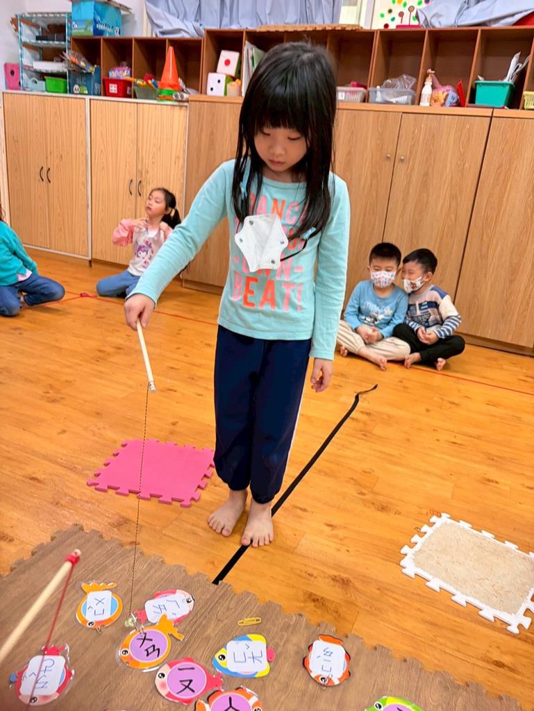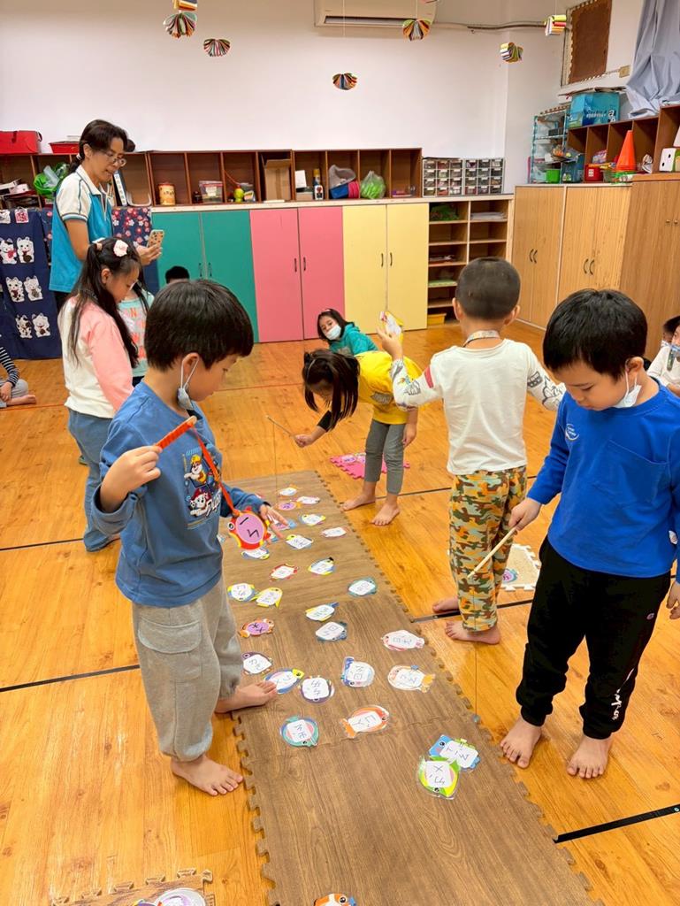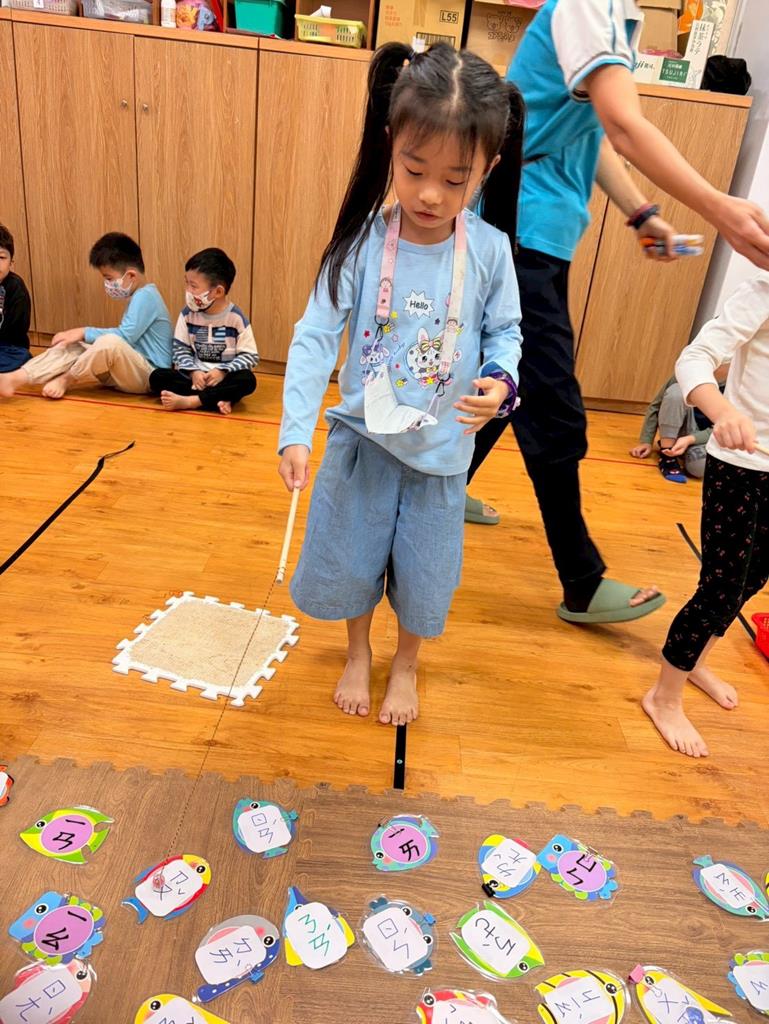 老師將教過的注音擺放在軟墊上,以分組的方式進行PK大賽