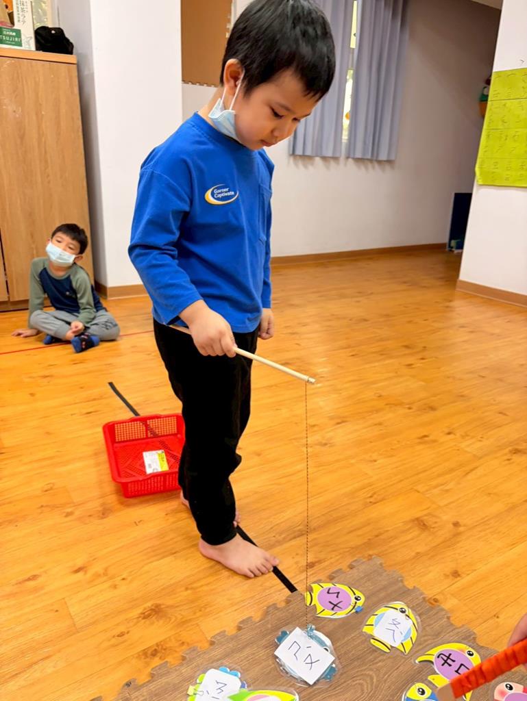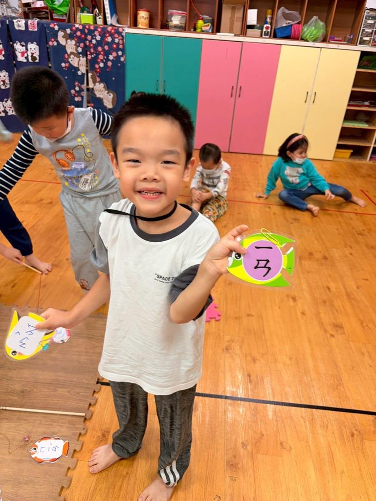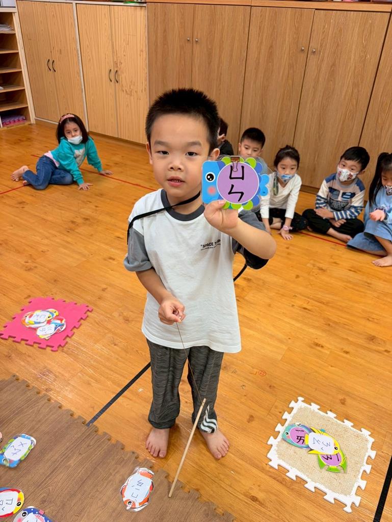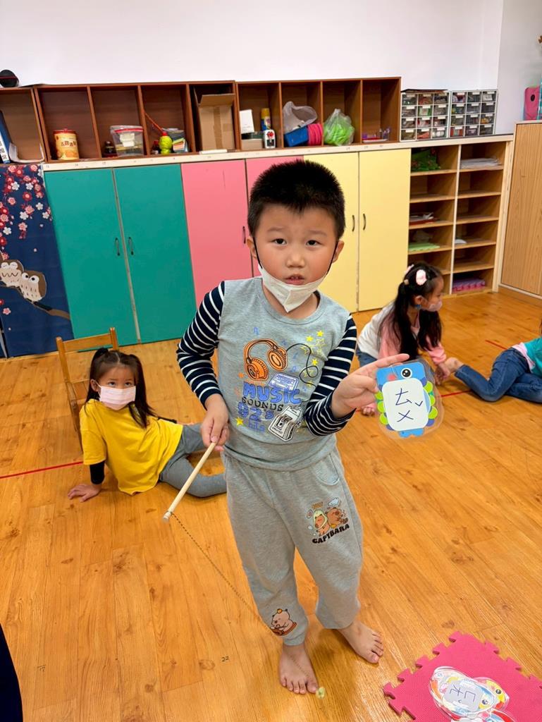 老師將教過的注音擺放在軟墊上,以分組的方式進行PK大賽