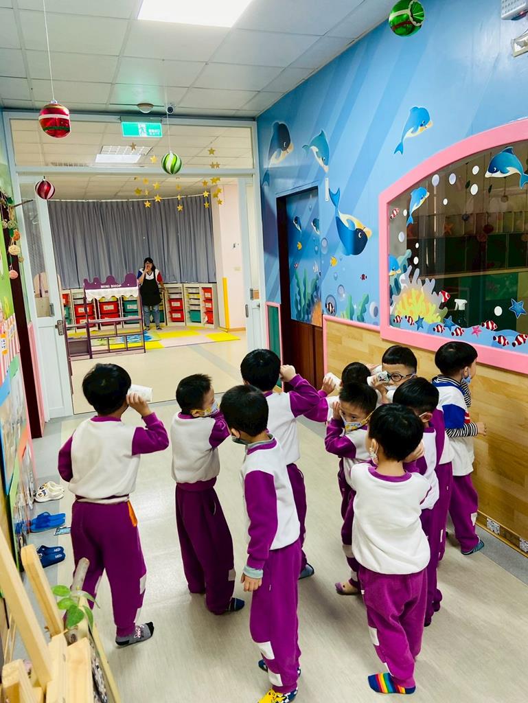 老師給每個孩子準備一個簡單的聽聲筒,請孩子們輪流將聽聲筒的一端放在耳邊,另一端指向 不同的位置,聆聽來自不同地方的聲音。