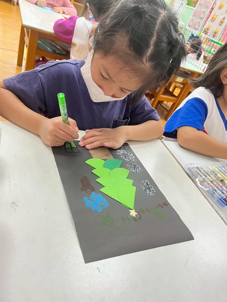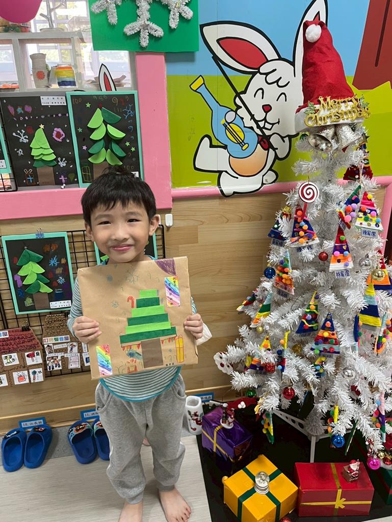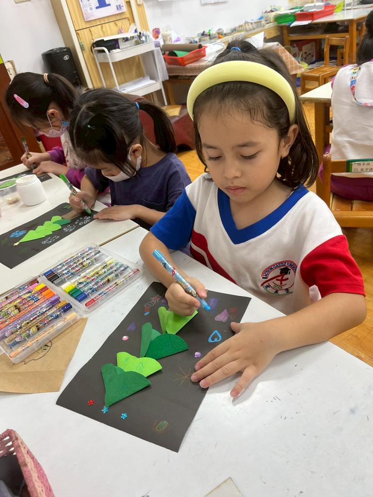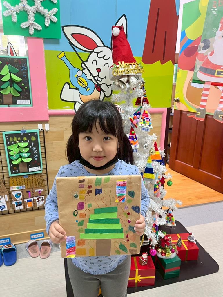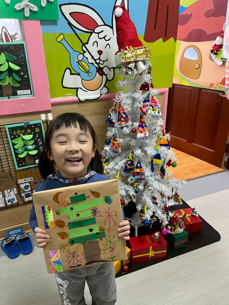 邀請孩子利用美勞素材進行自由創作~歡樂聖誕樹