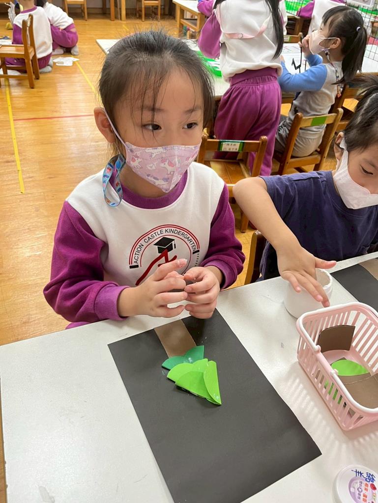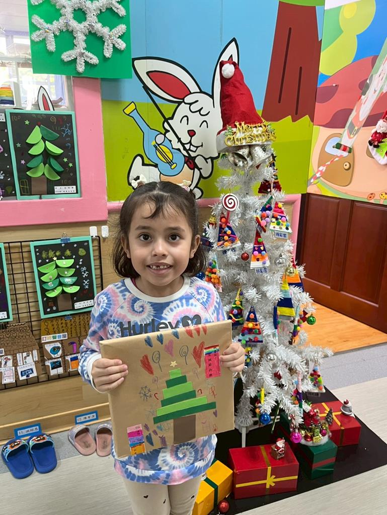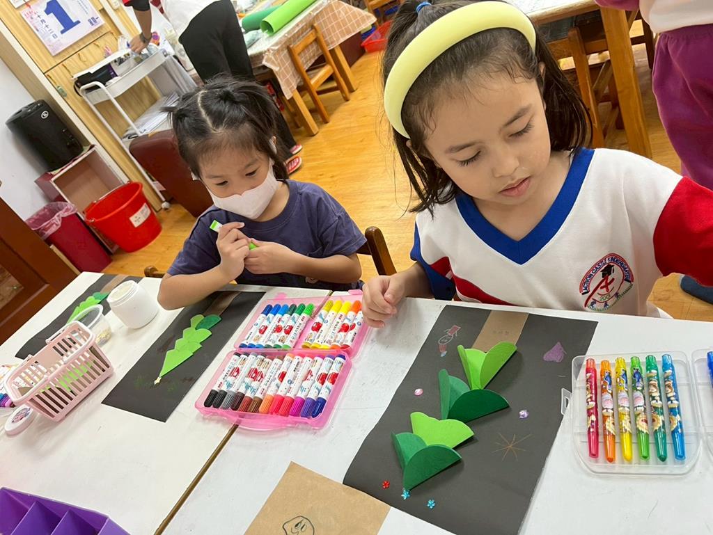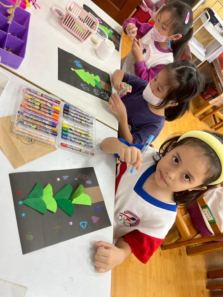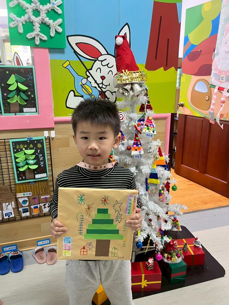 邀請孩子利用美勞素材進行自由創作~歡樂聖誕樹