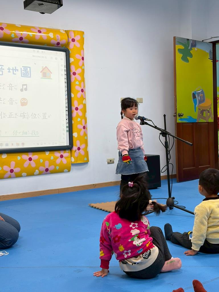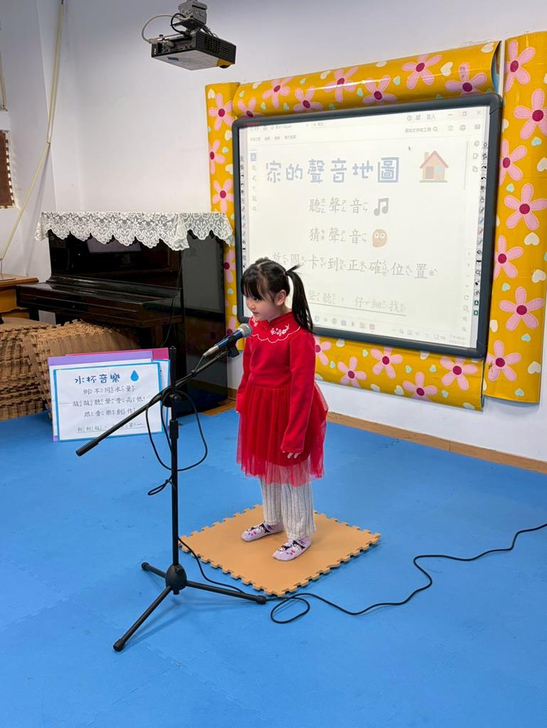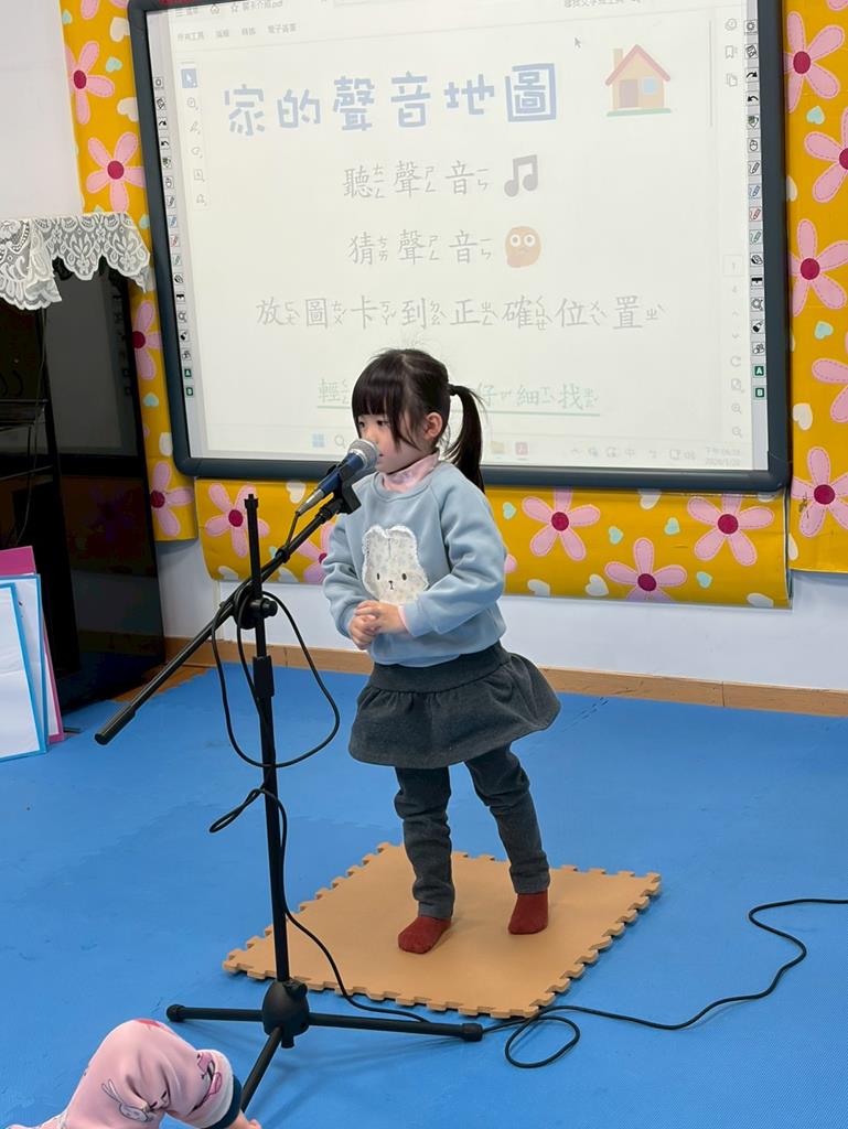 完成闖關活動後,進行活動回顧與分享,透過照片引導孩子說一說闖關時聽到的聲音與感受