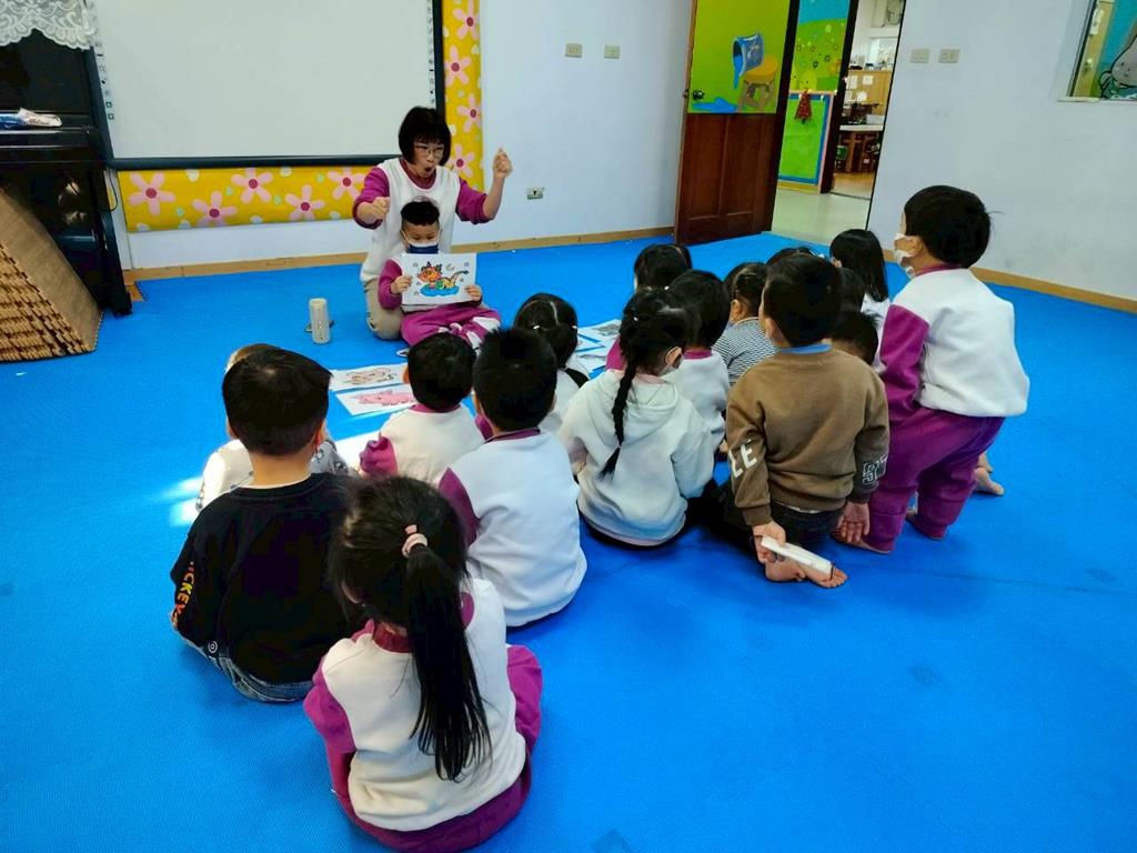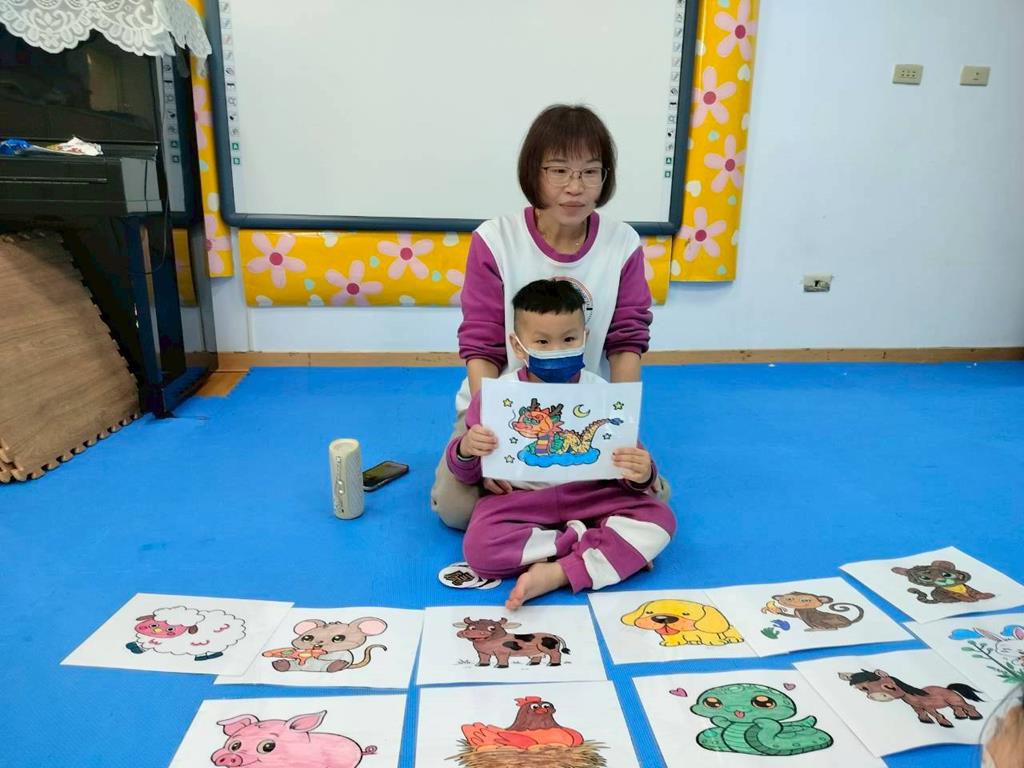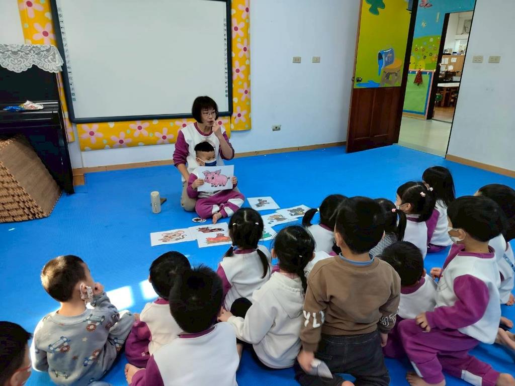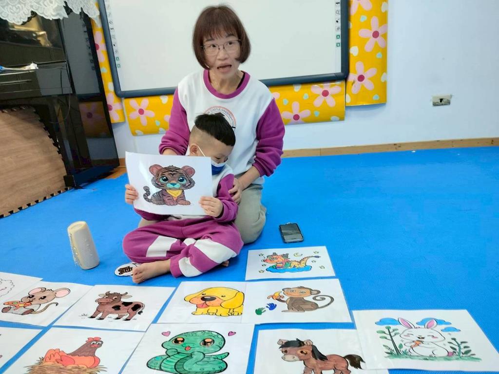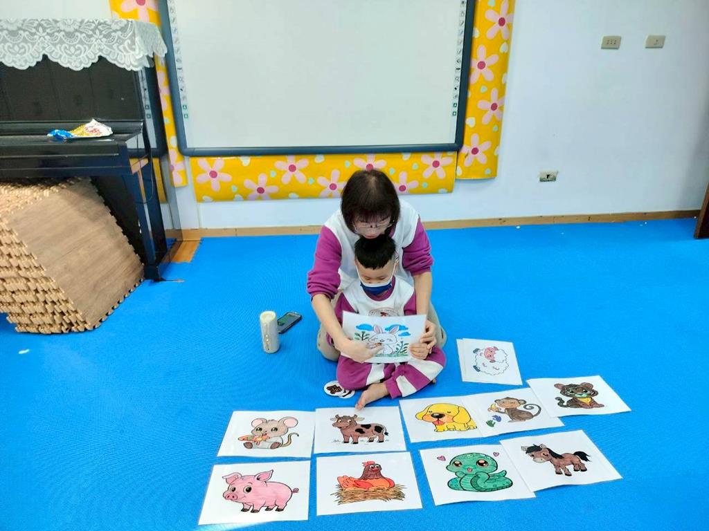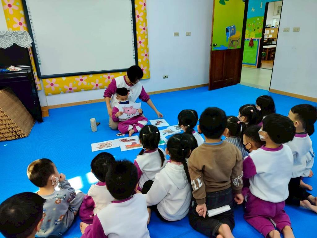 透過故事讓孩子認識十二生肖由來,讓孩子跟著老師說出動物名稱,並模仿叫聲,鼓勵幼兒勇敢表達