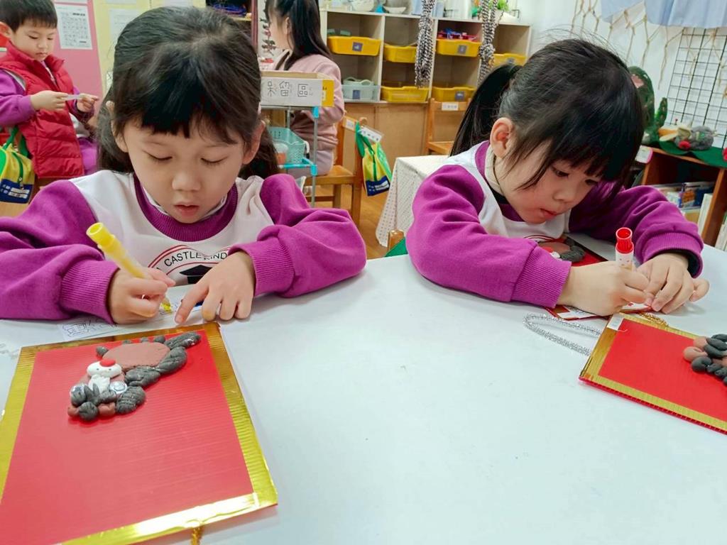 請幼兒分享在過年時有看過哪些佈置,並邀請孩子一起製作馬年的小吊飾