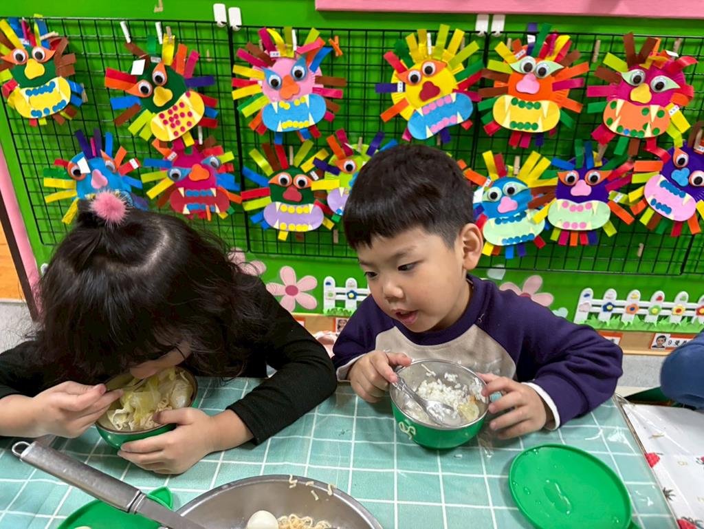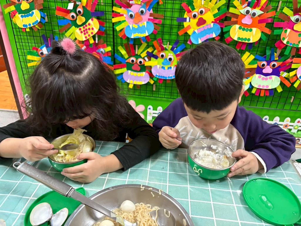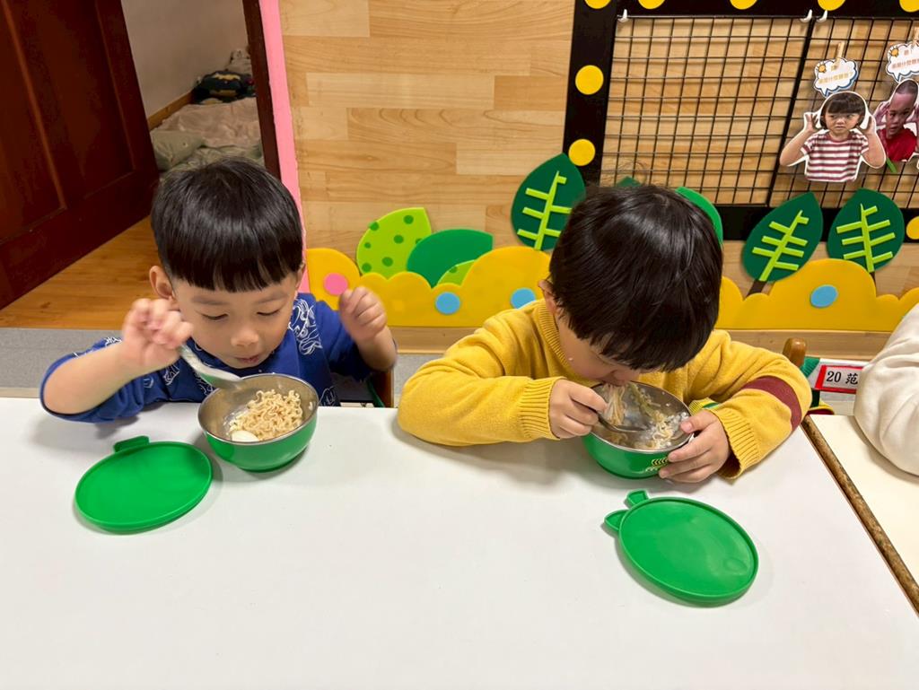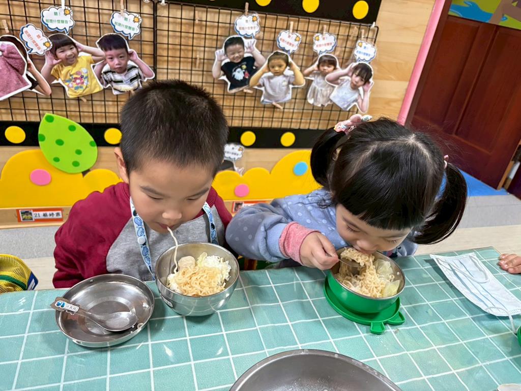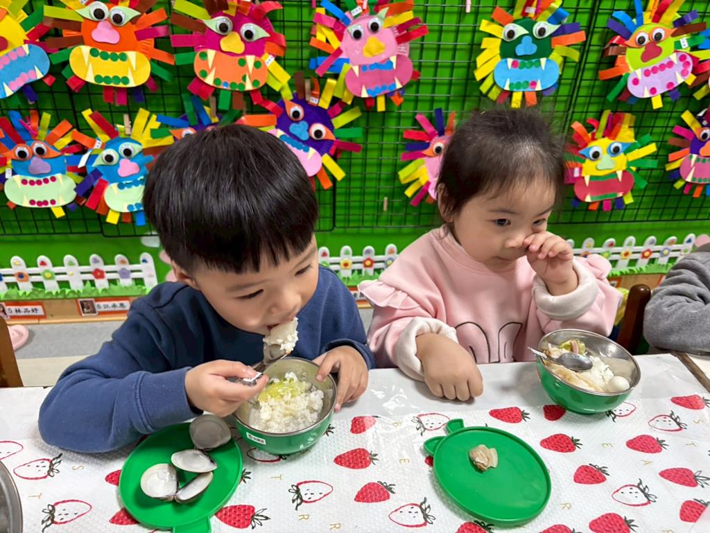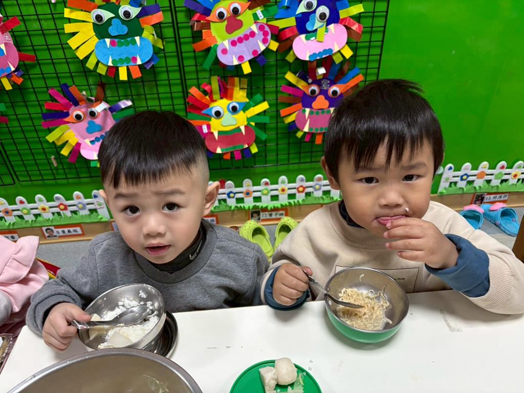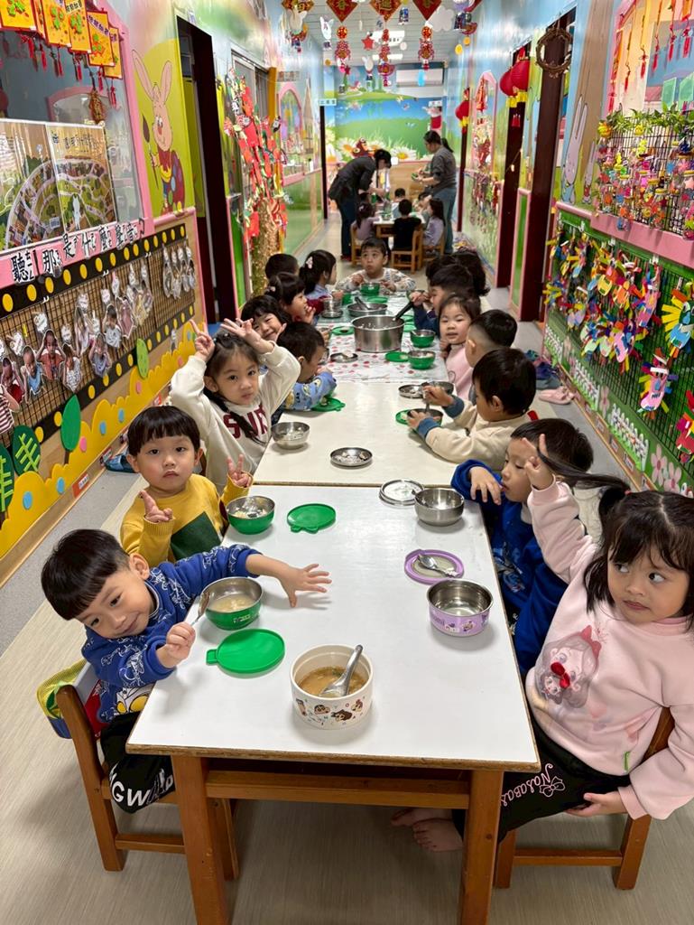 幼兒在學校吃火鍋圍爐感受過年的氛圍
