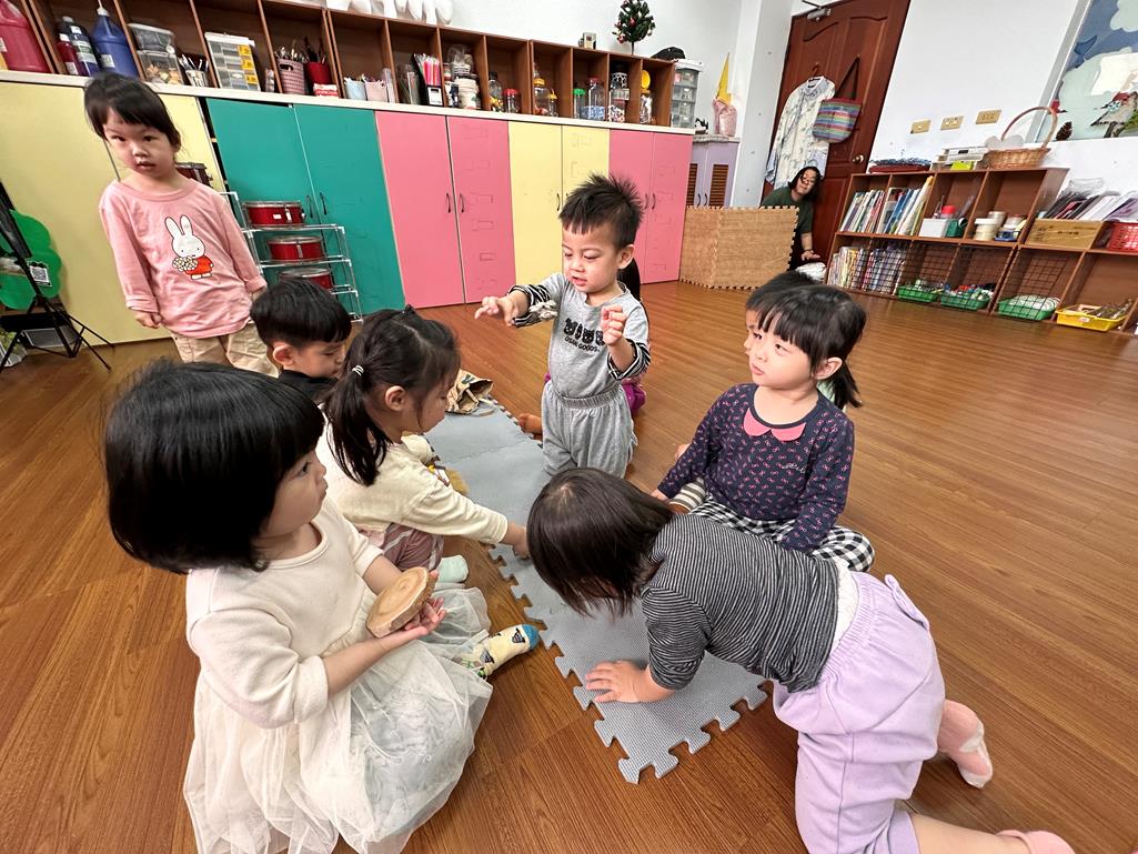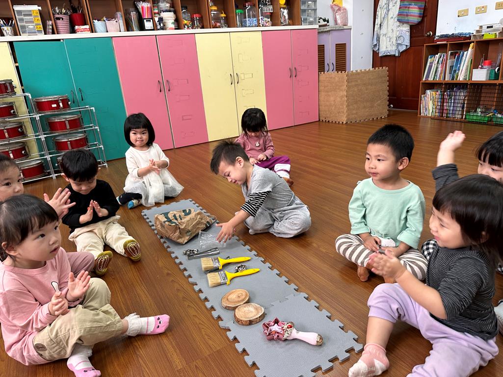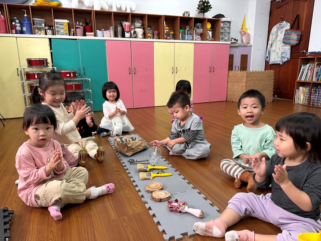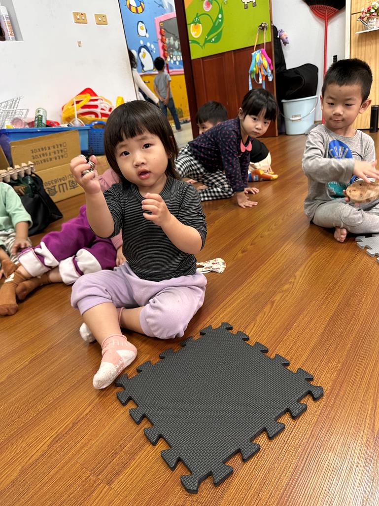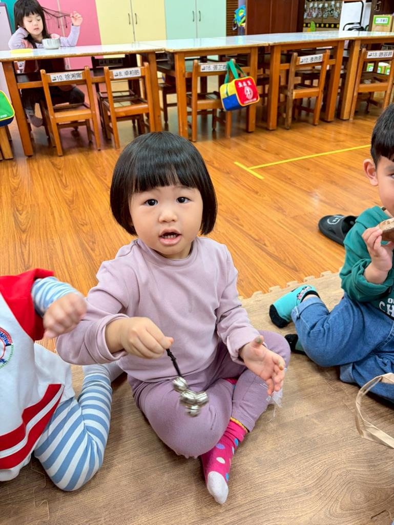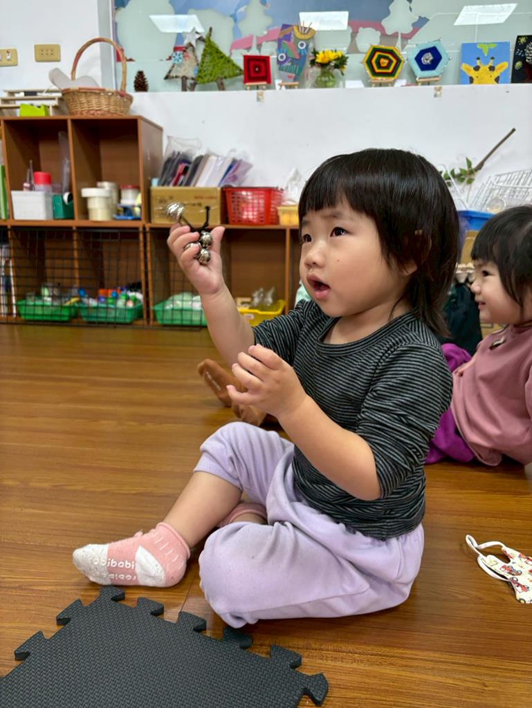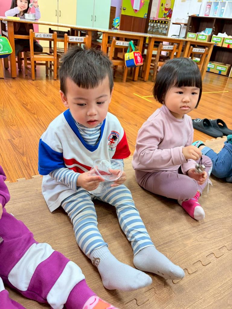 小寶貝嘗試操作物品,感受搖動、敲擊、摩擦不同方式帶來的聲音差異。