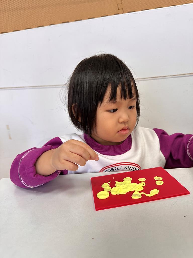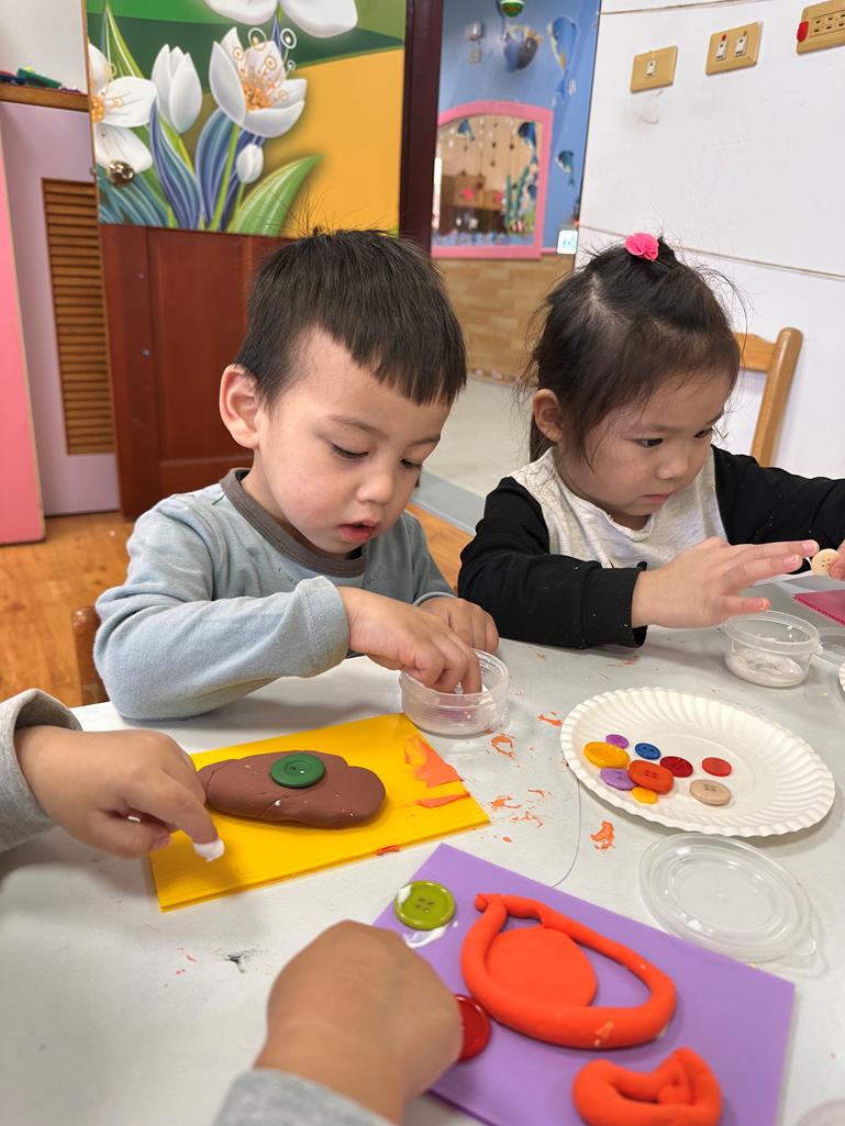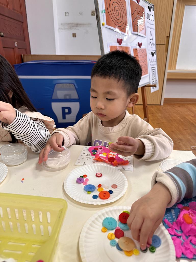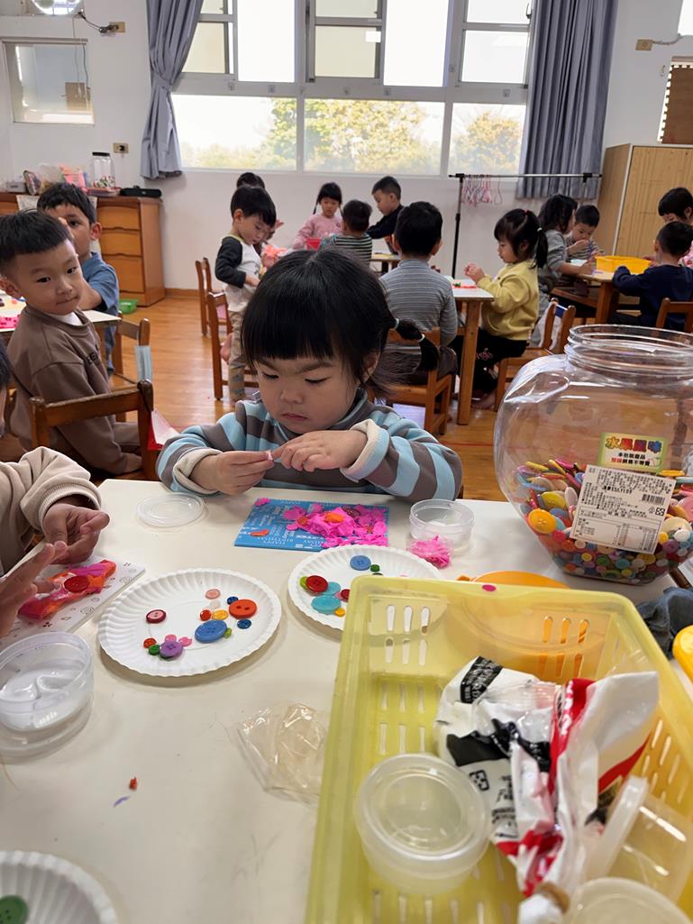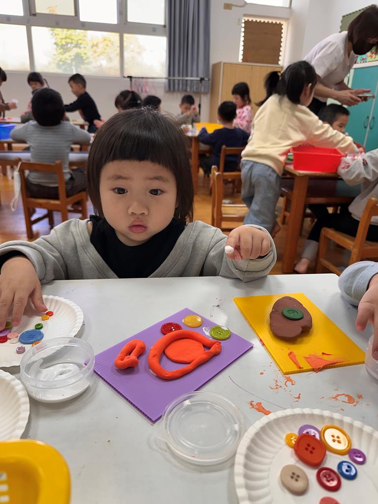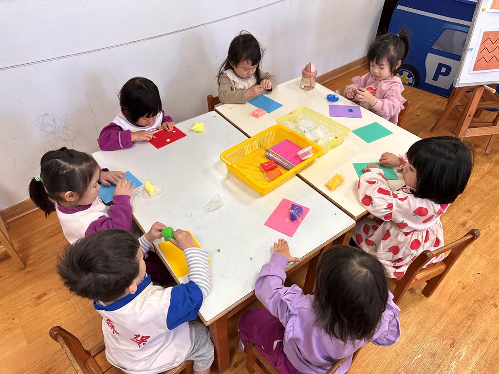 孩子操作黏土,老師帶著孩子用黏土做出聲音。