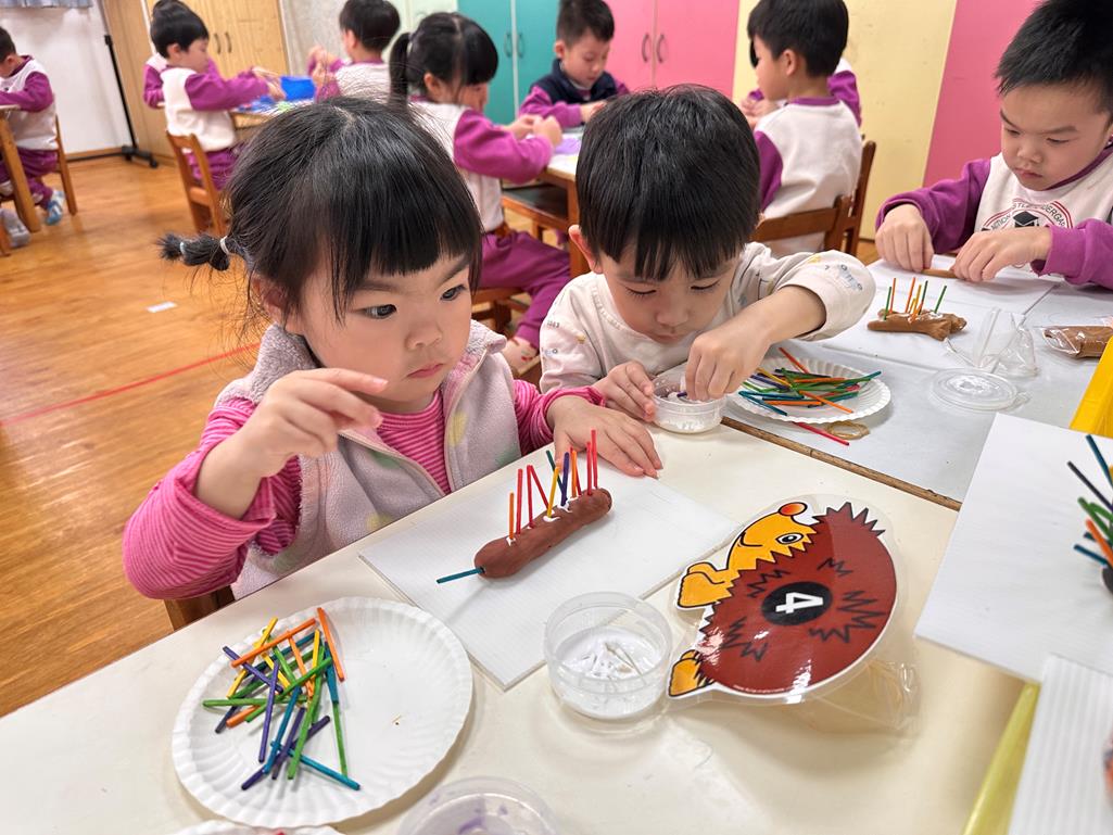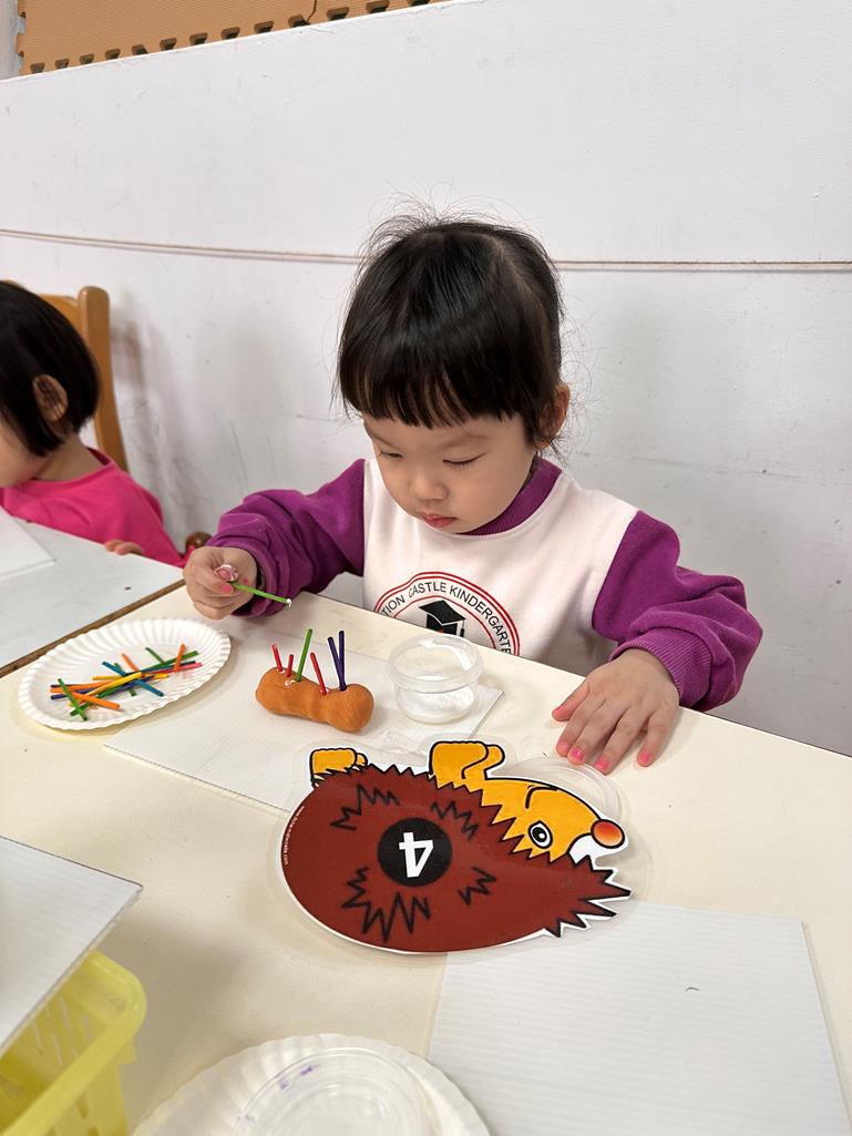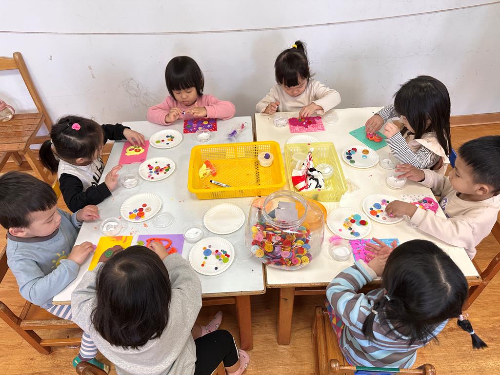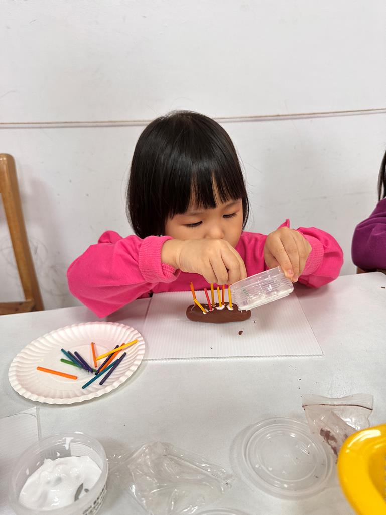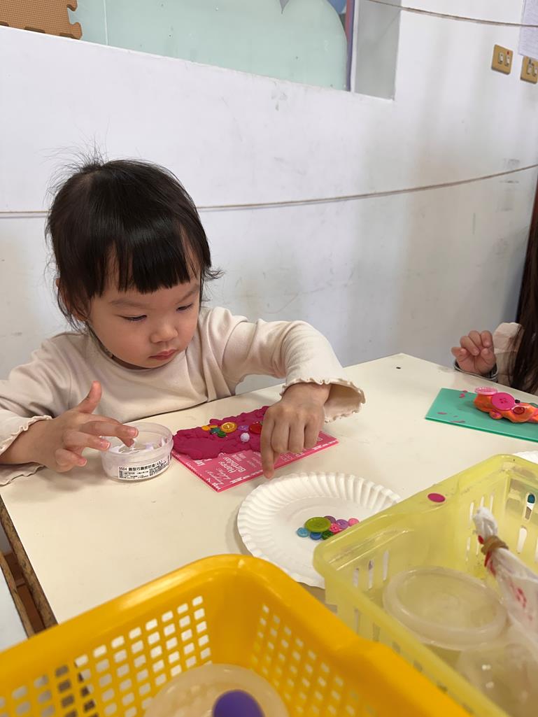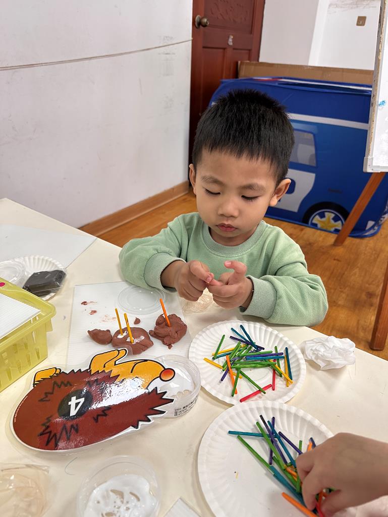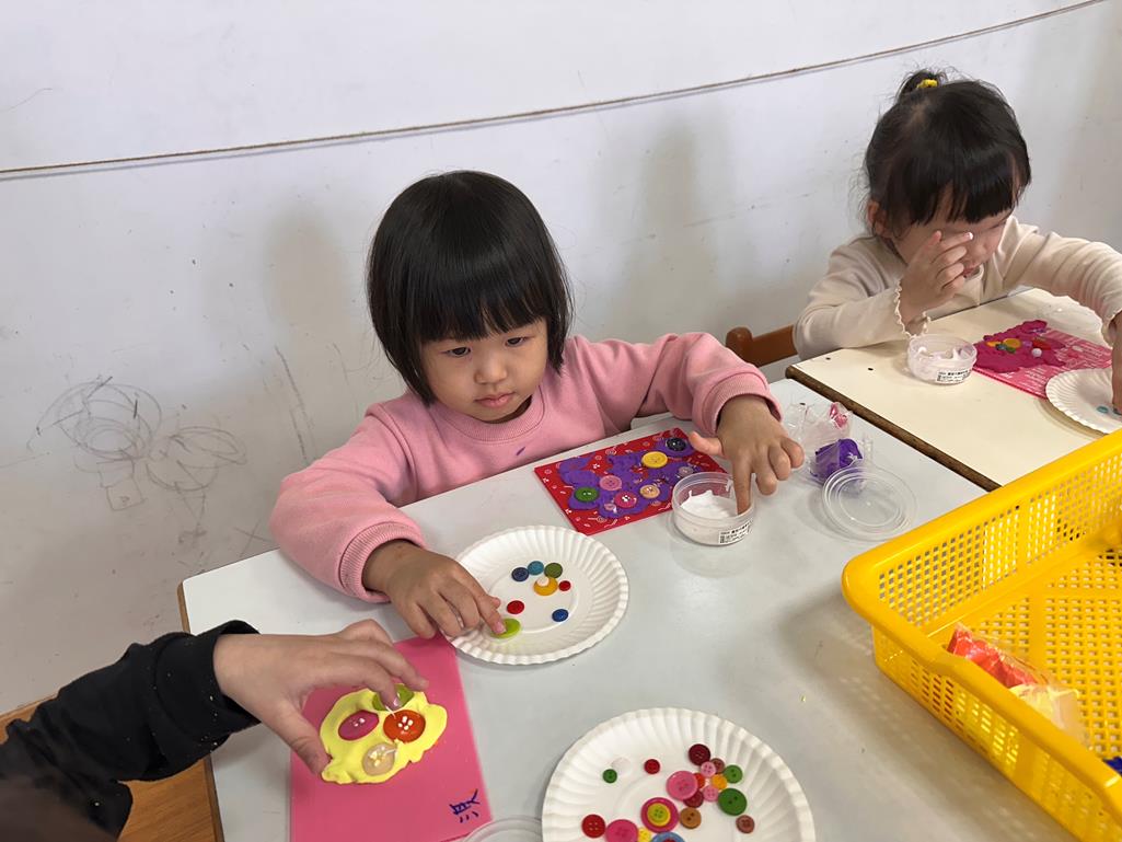 孩子操作黏土,老師帶著孩子用黏土做出聲音。