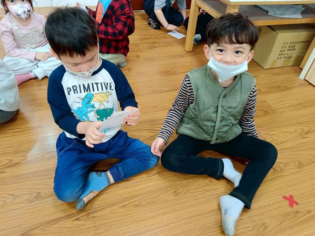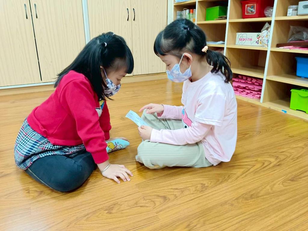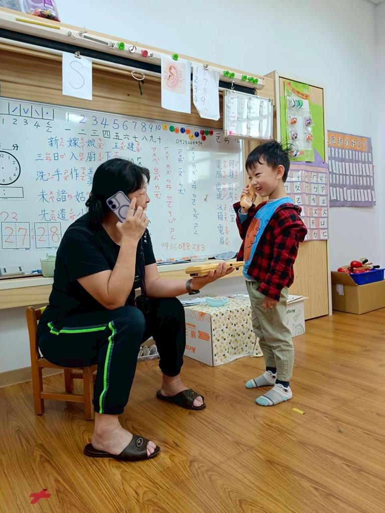 老師請孩子兩人一組進行角色扮演,一位孩子負責打 電話,另一位孩子負責接電話。
