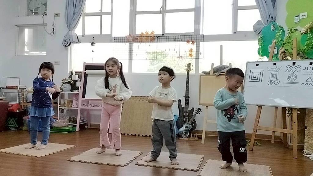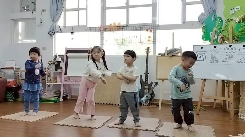 孩子們跟著經典歌曲《青蘋果樂園》一起動一動,透過拍手 踏步 跳一跳,感受音樂節奏