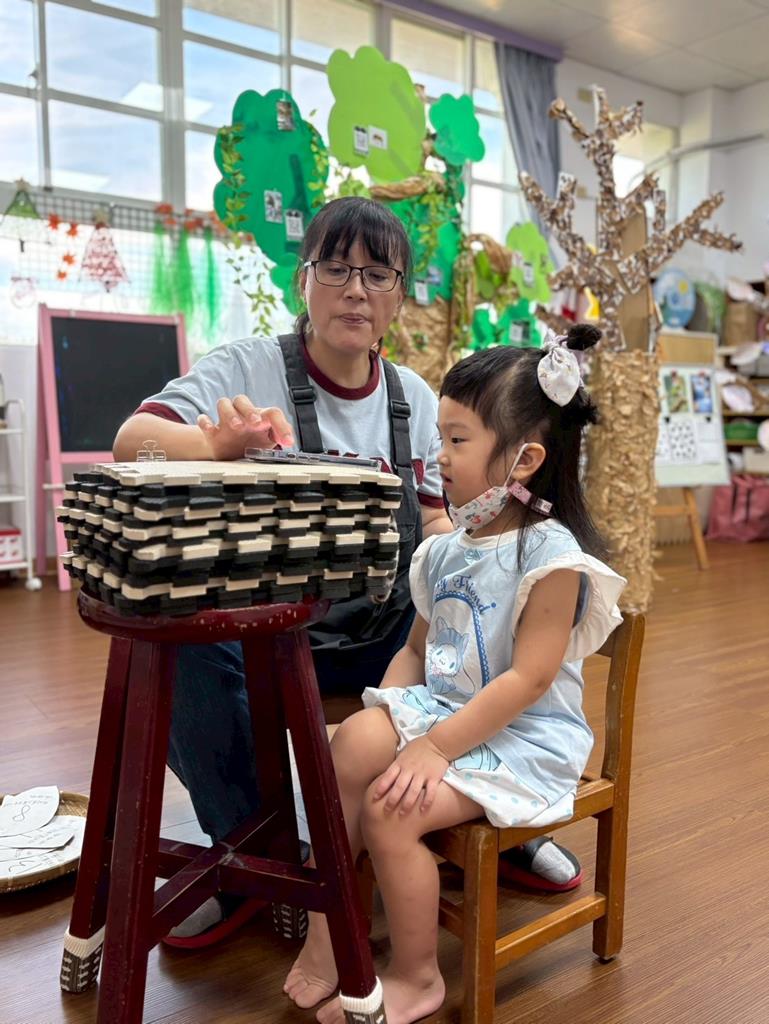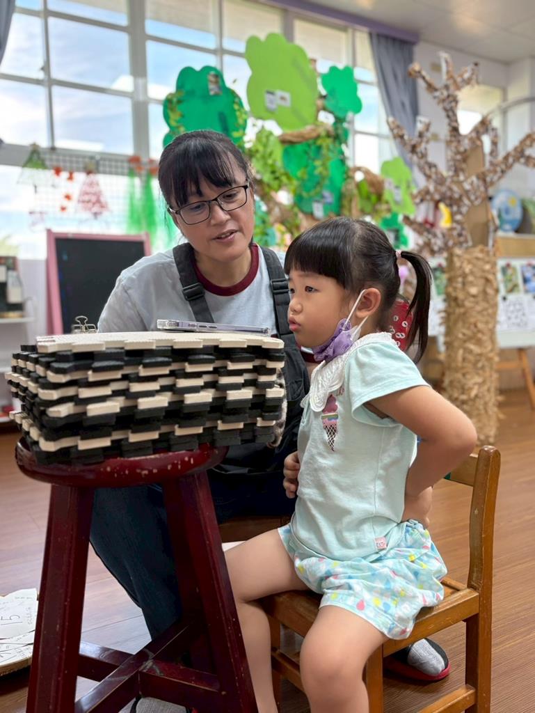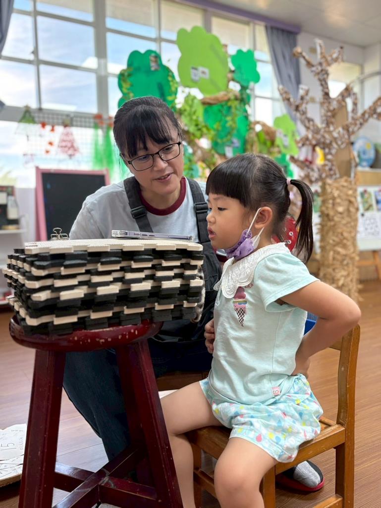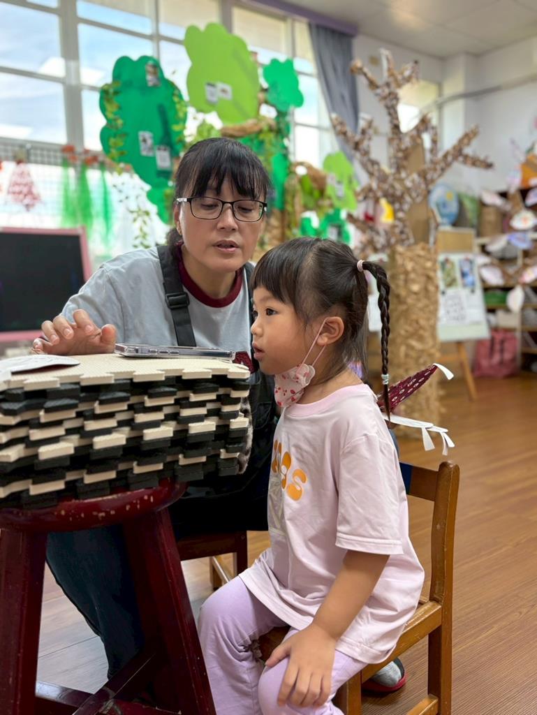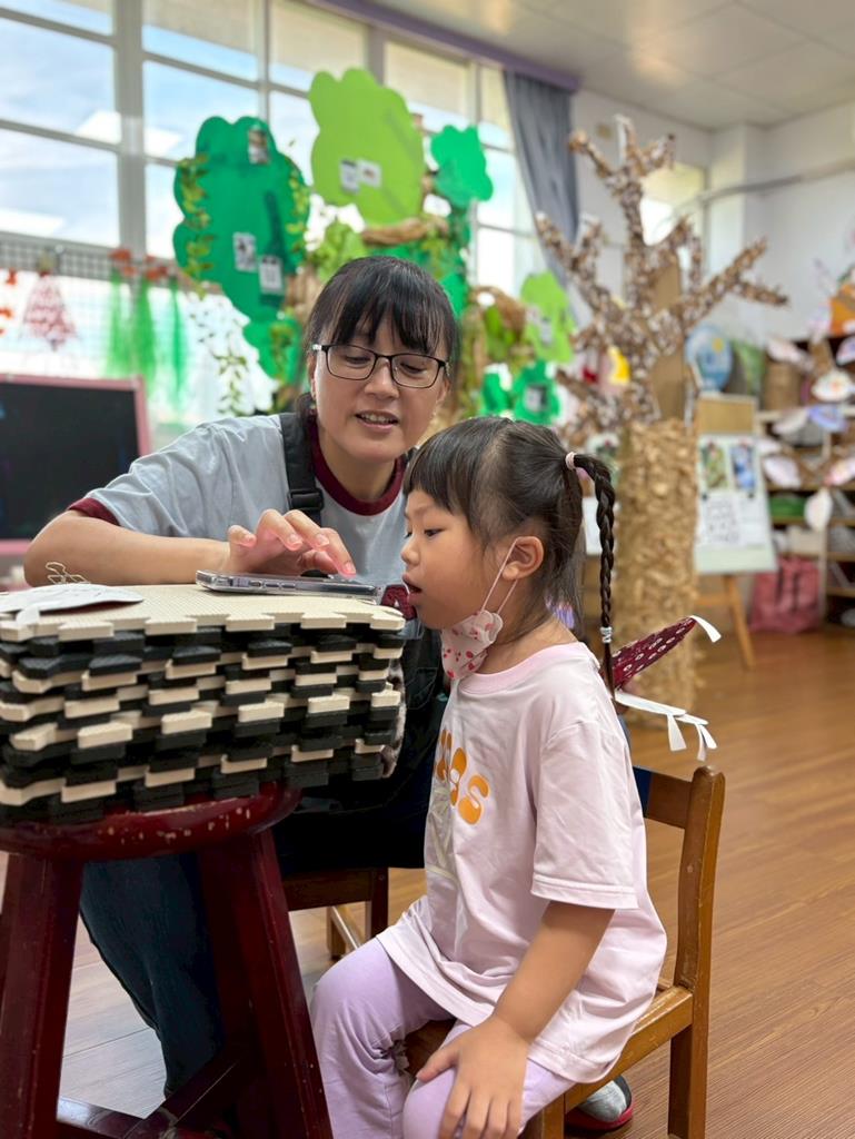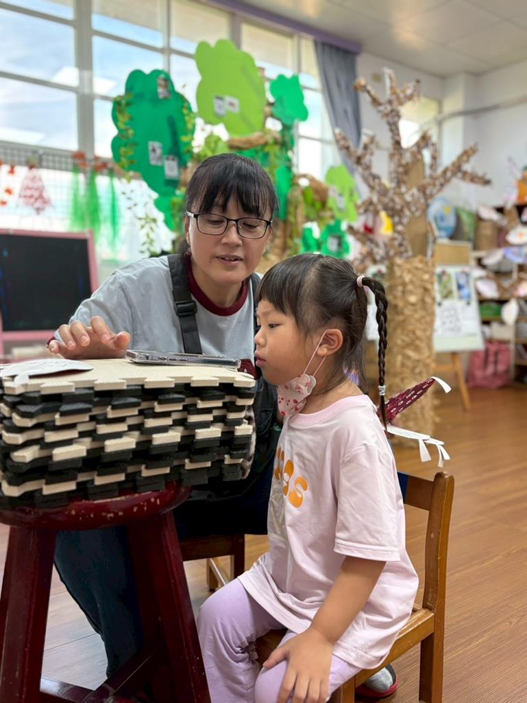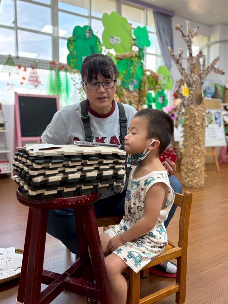 孩子們透過模仿大自然聲音老師錄音和葉子結合,貼在班級聲音大樹上-取名為企鵝大樹