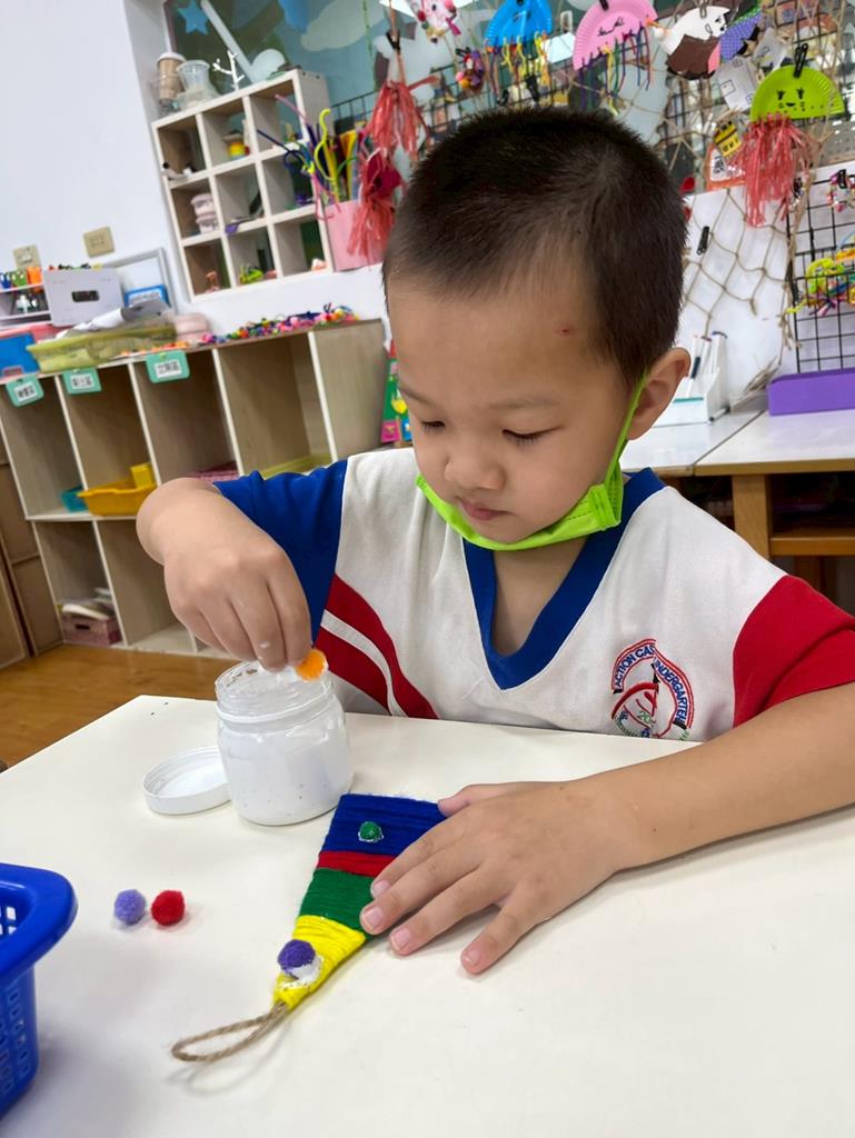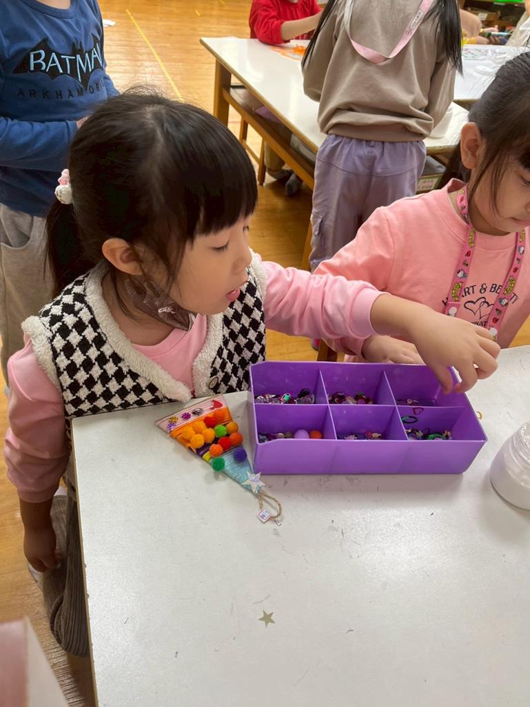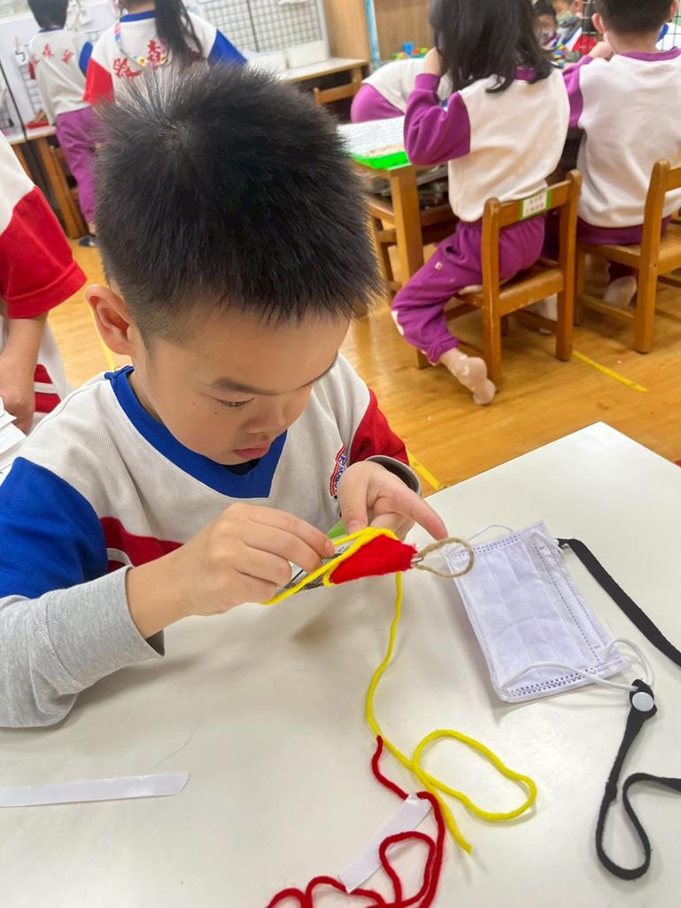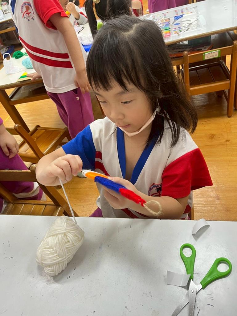 邀請孩子們利用美勞素材進行毛線纏繞,並裝飾在聖誕樹上