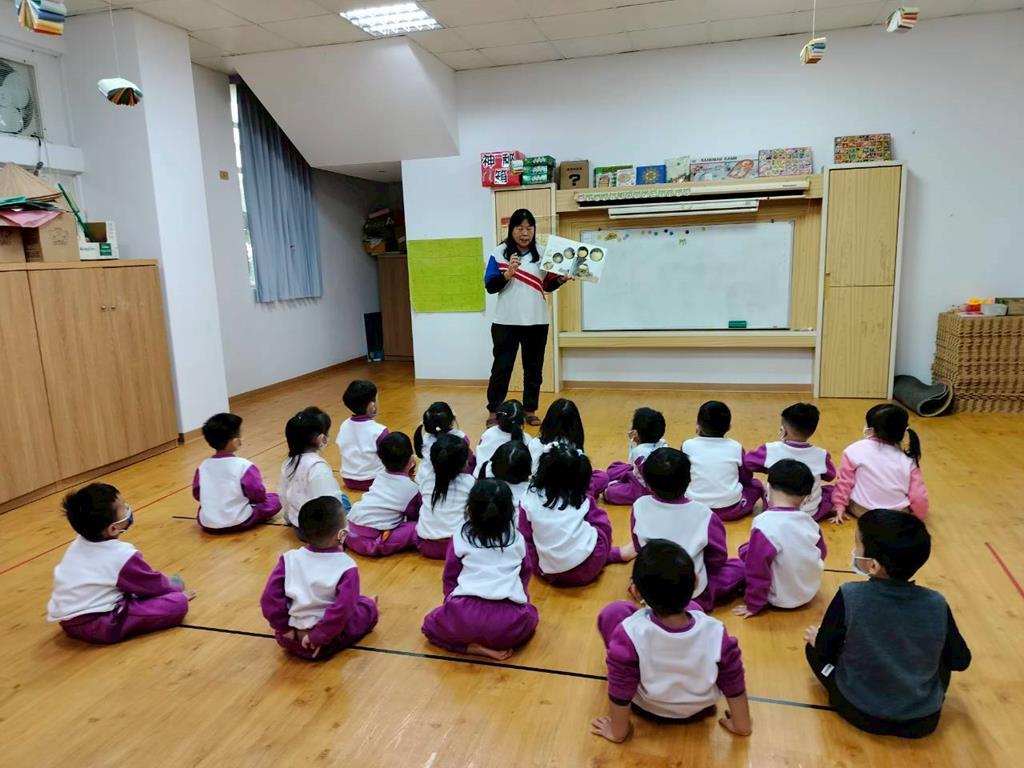 老師說了蝌蚪的家繪本,帶領孩子進行數字墊遊戲