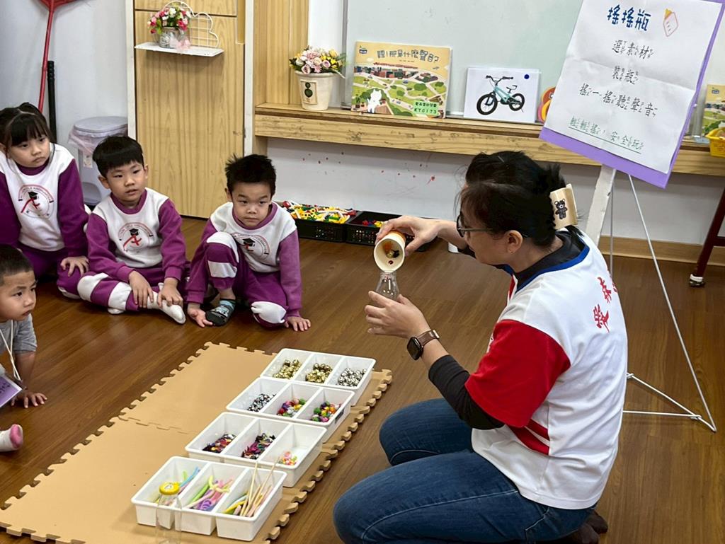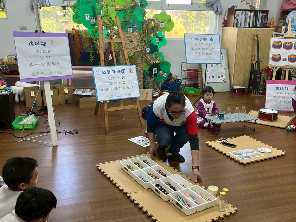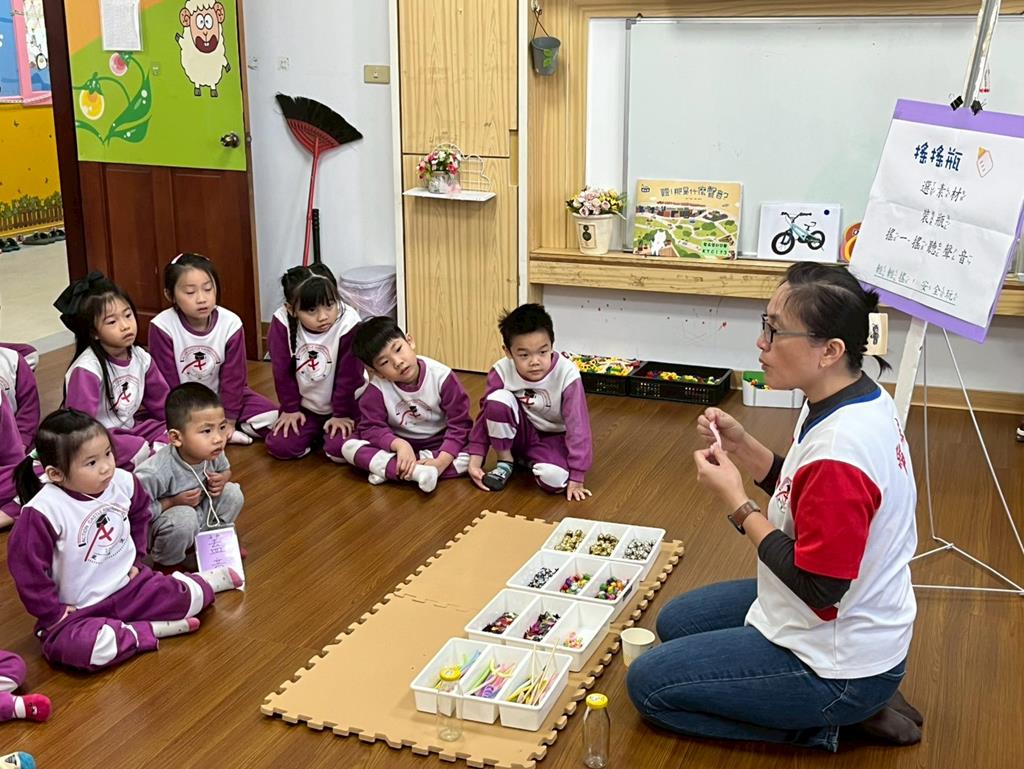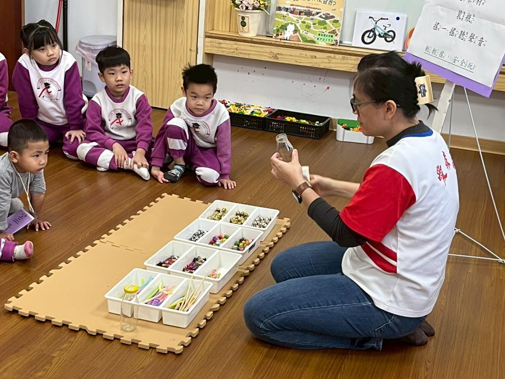 老師介紹統整活動各個關卡,提醒孩子要遵守活動規則,輪流操作