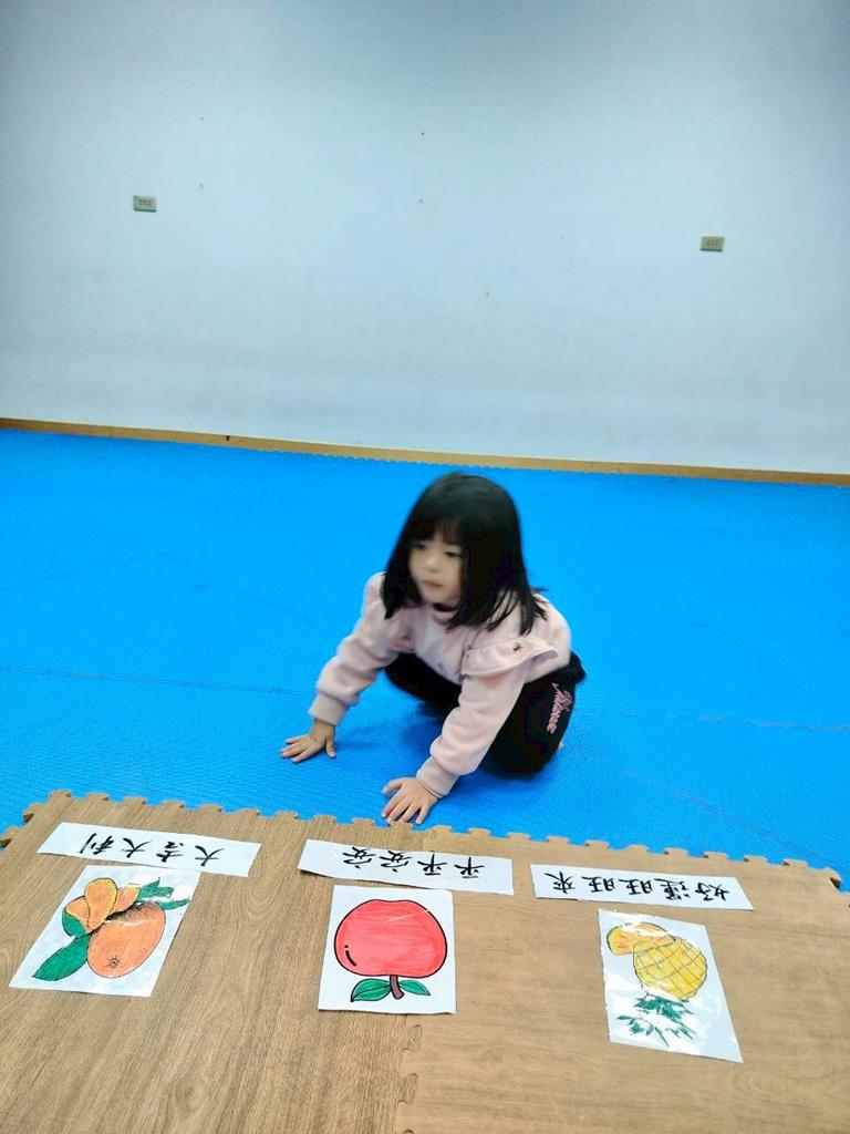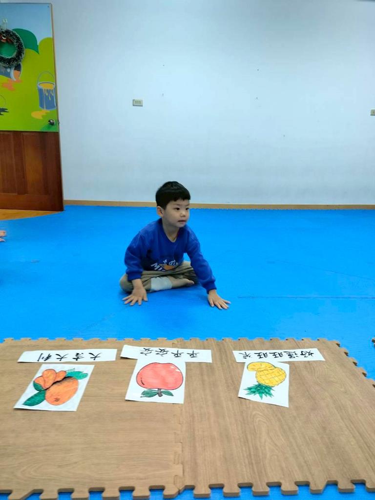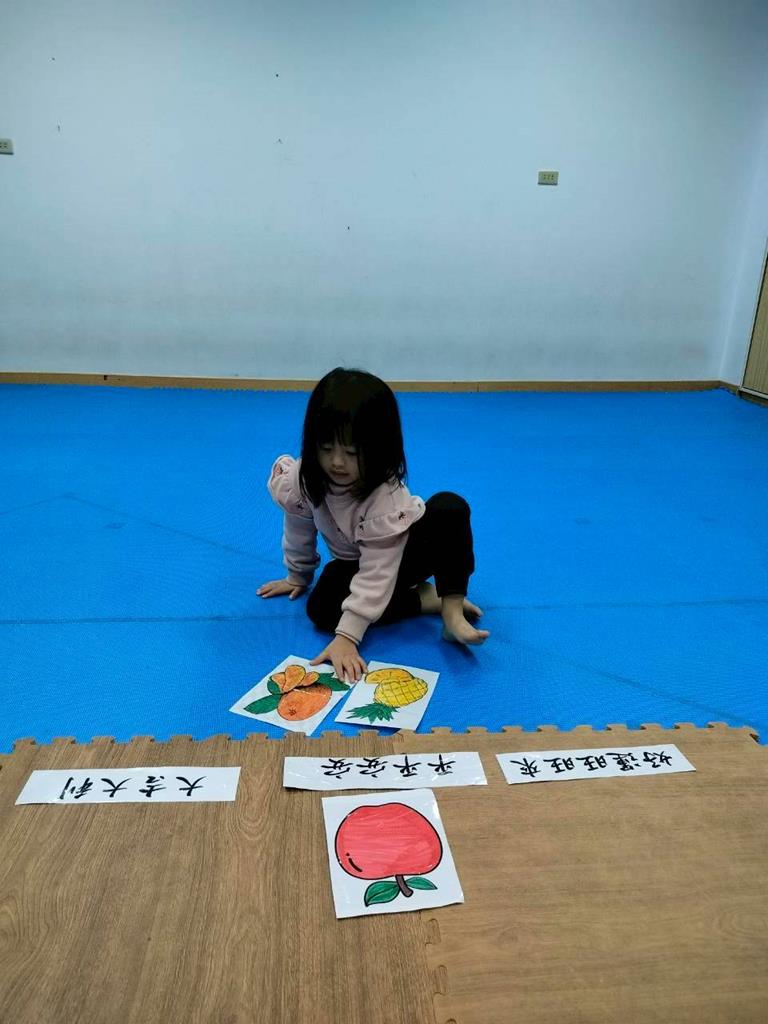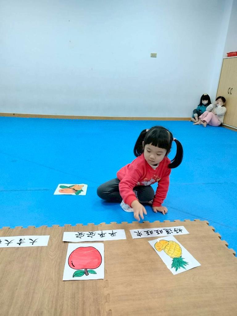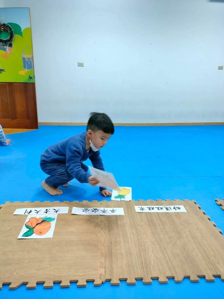 老師帶領孩子認識3種水果的吉祥話,並帶領幼兒進行配對遊戲