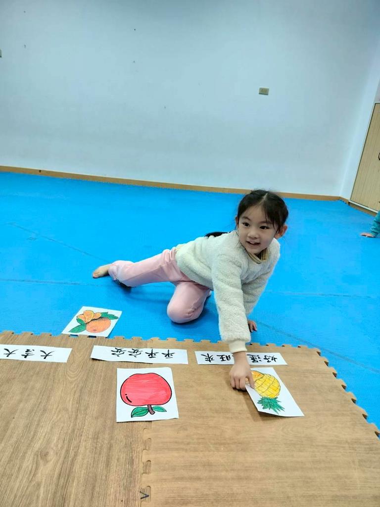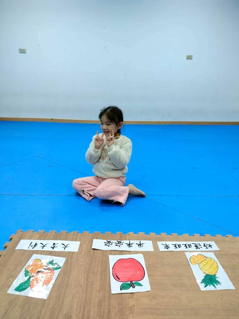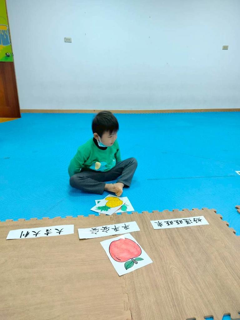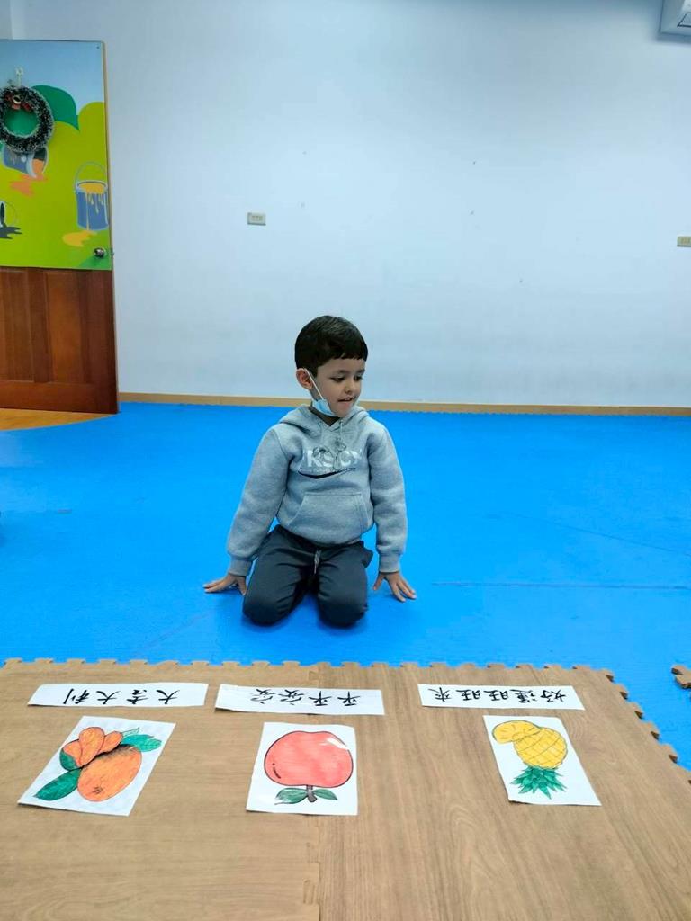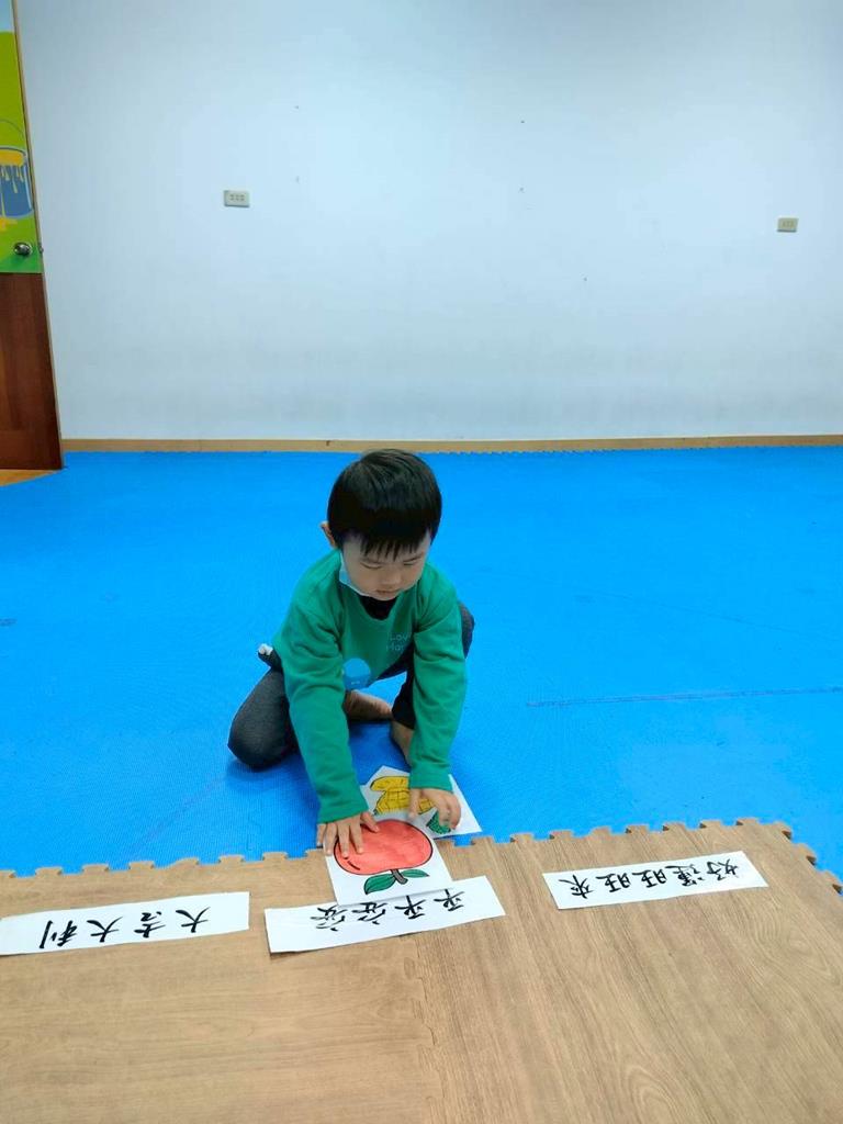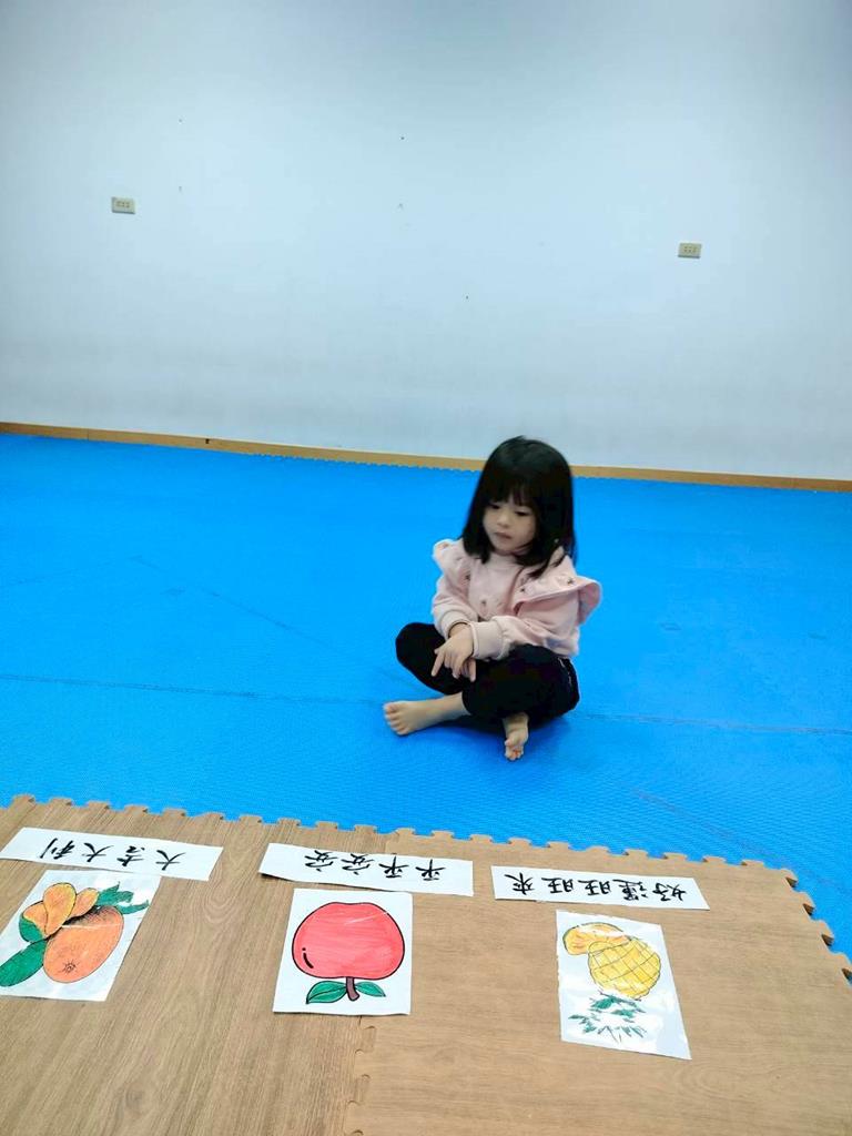 老師帶領孩子認識3種水果的吉祥話,並帶領幼兒進行配對遊戲