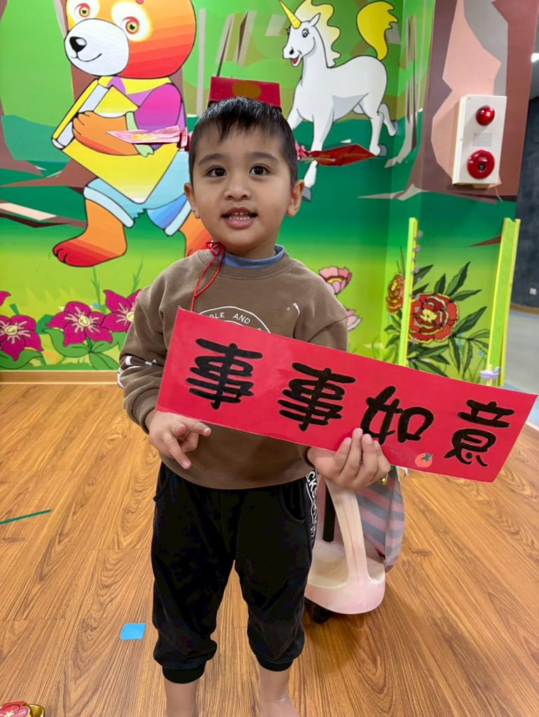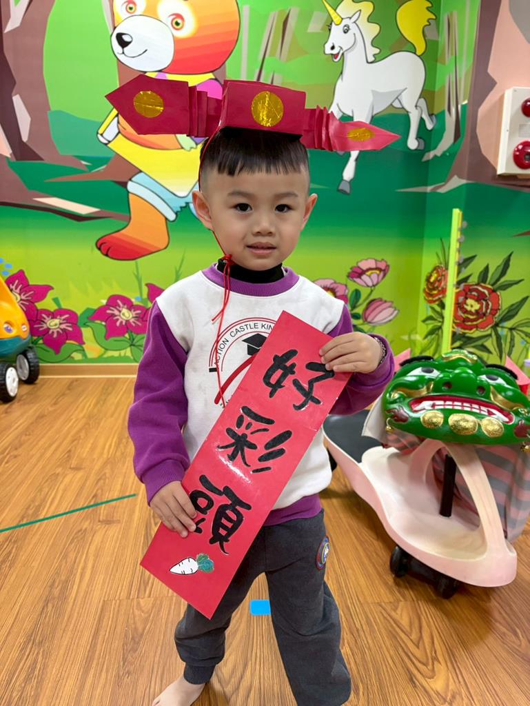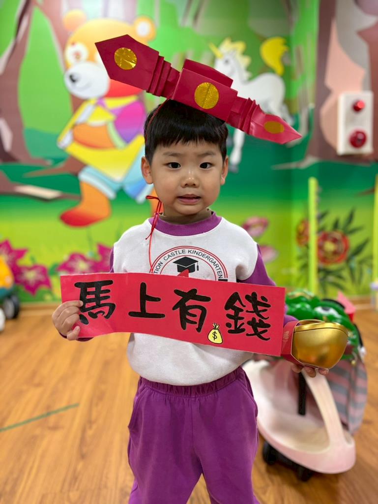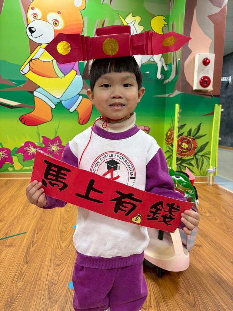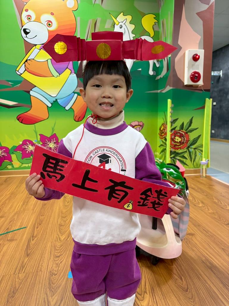 邀請幼兒扮演小小財神爺說說吉祥話