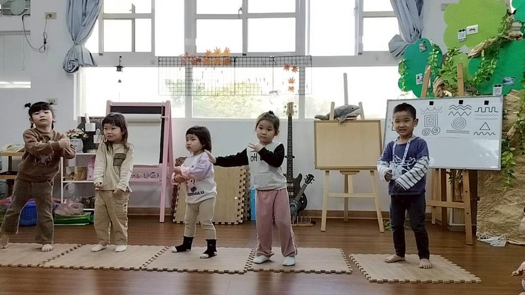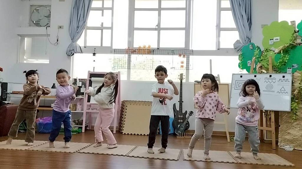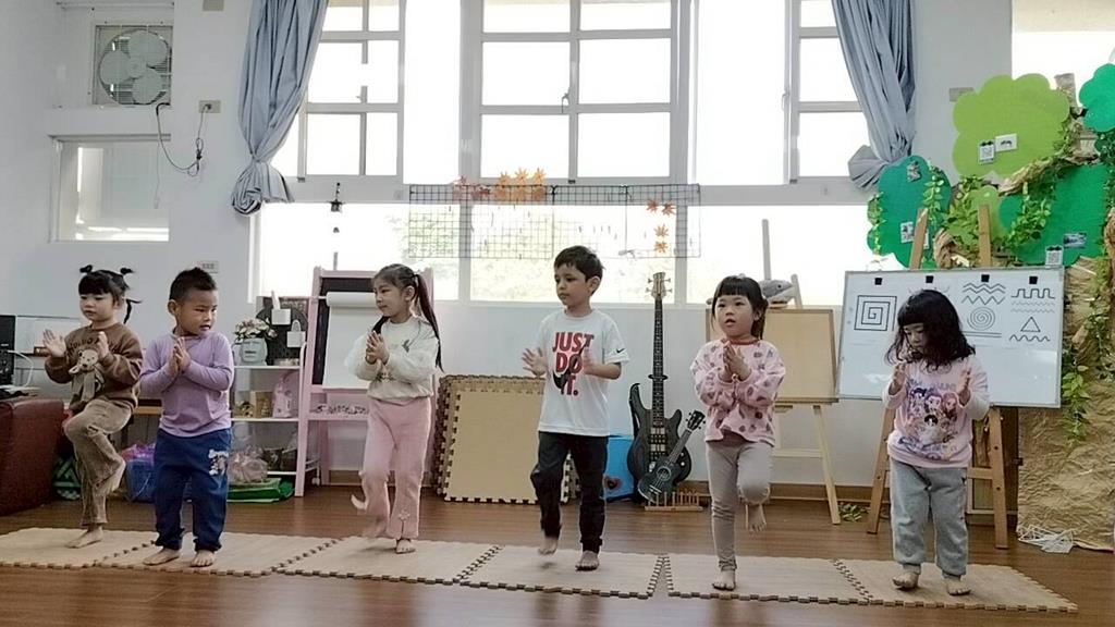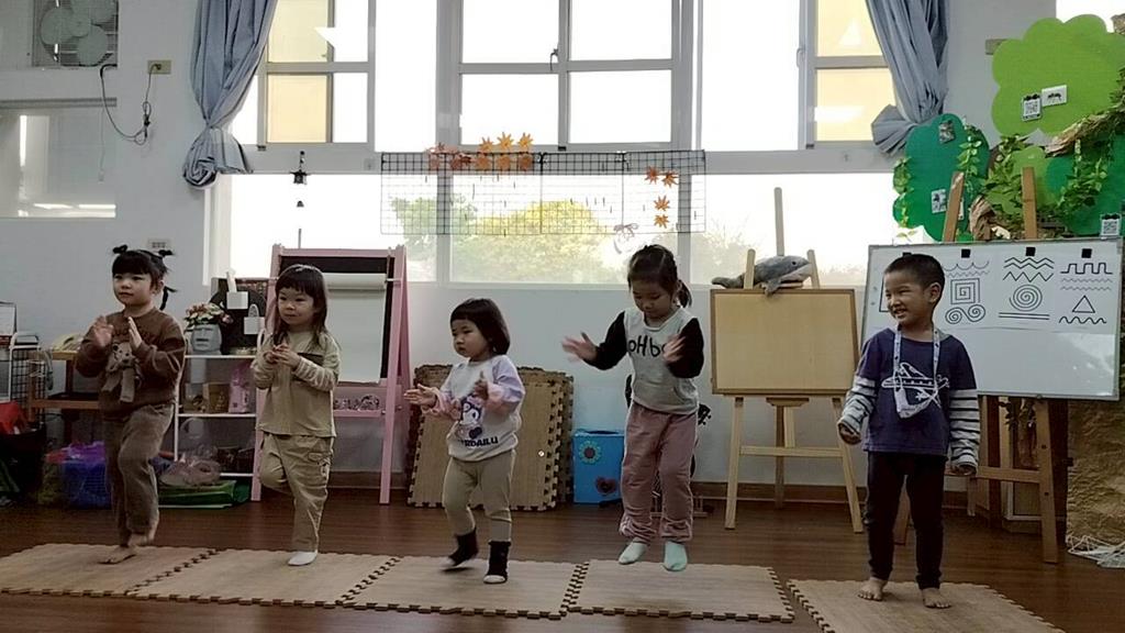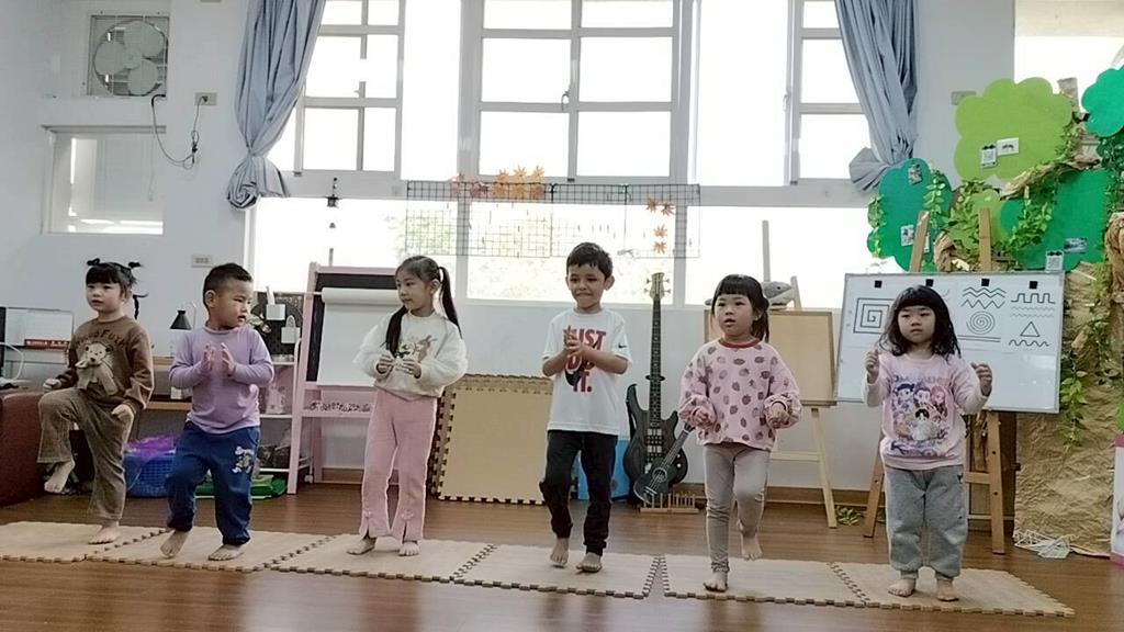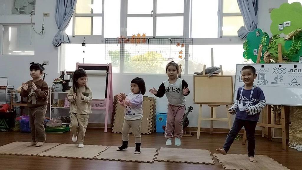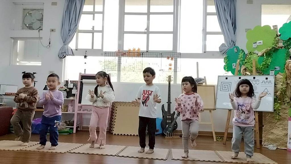 孩子們跟著經典歌曲《青蘋果樂園》一起動一動,透過拍手 踏步 跳一跳,感受音樂節奏