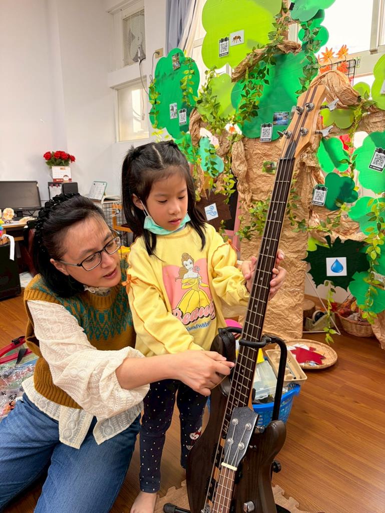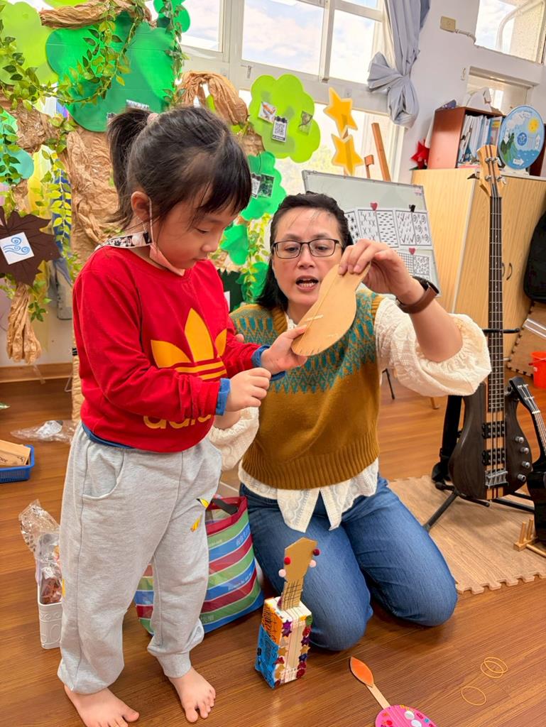 孩子探索橡皮筋發出的不同聲音,並體驗製作屬於自己的小吉他