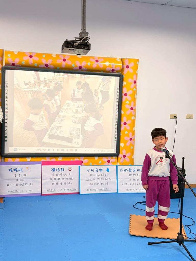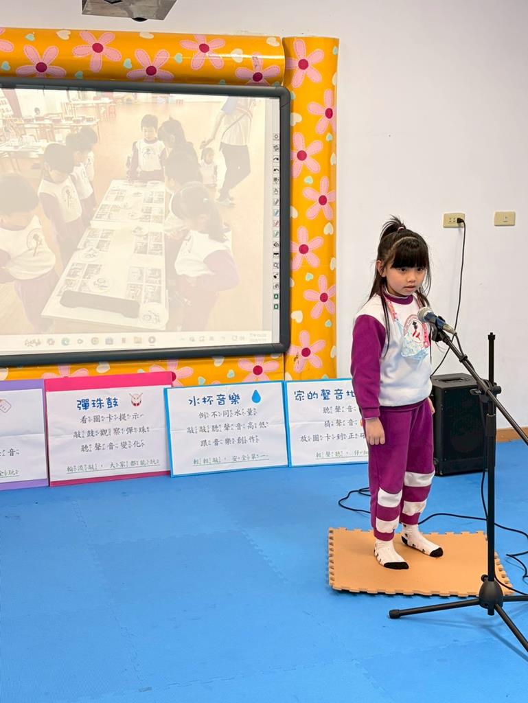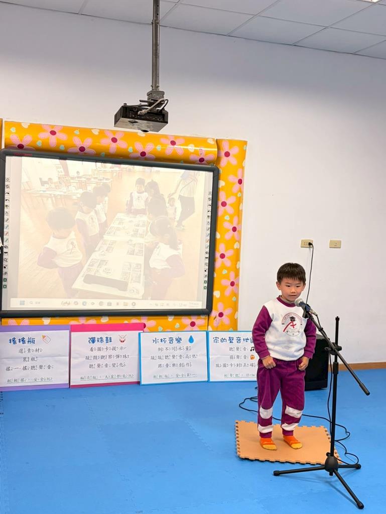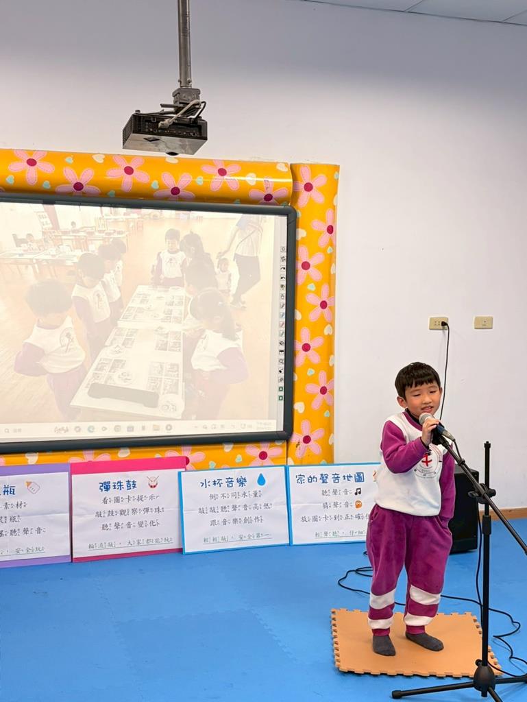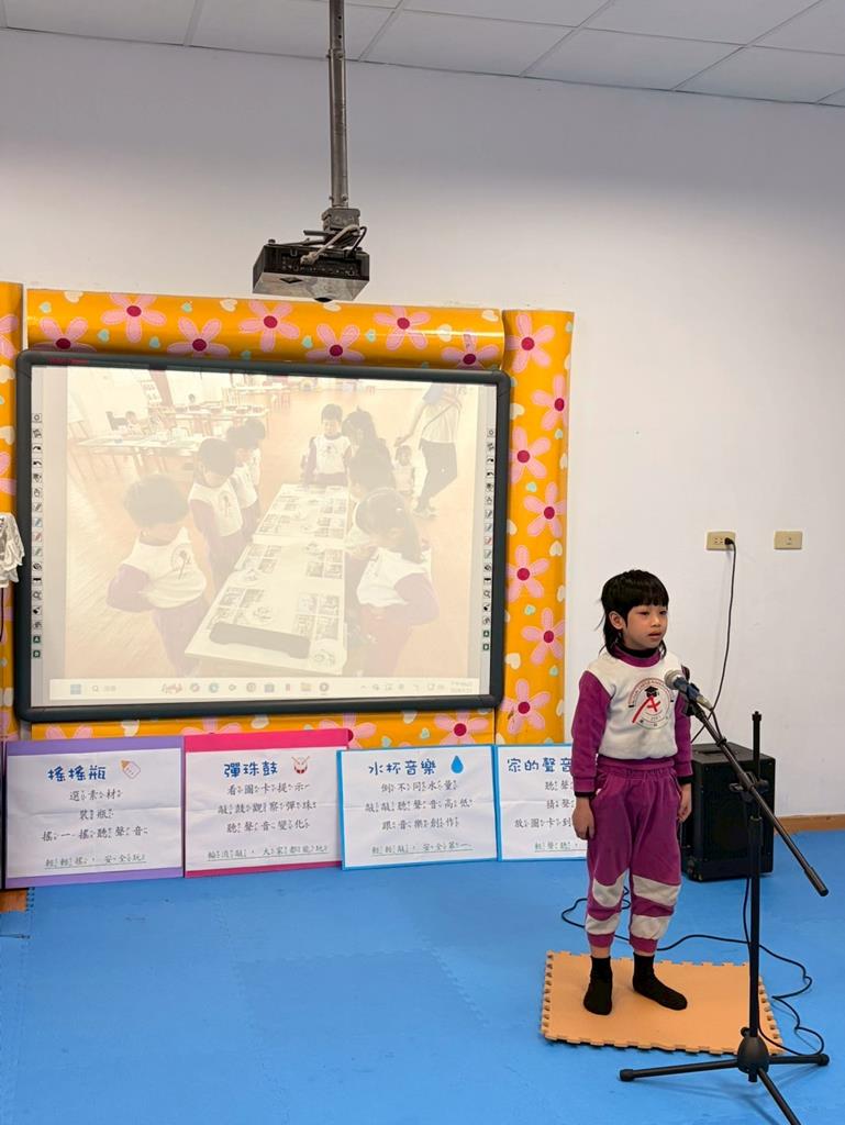 老師透過照片引導孩子說一說闖關時聽到的聲音與感受,來進行回顧與分享