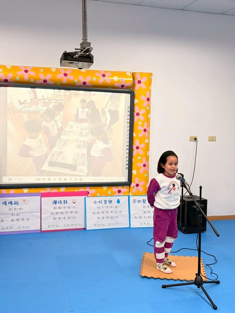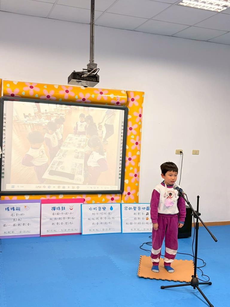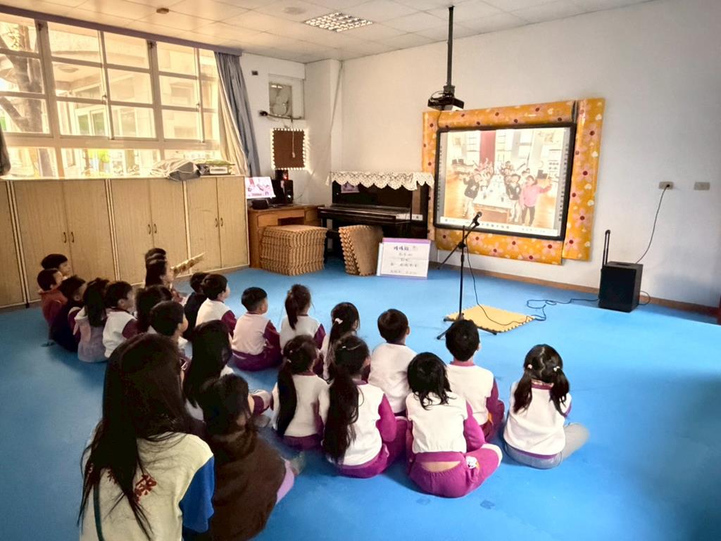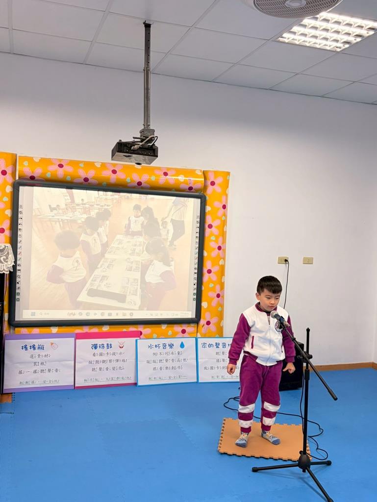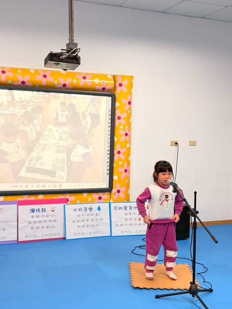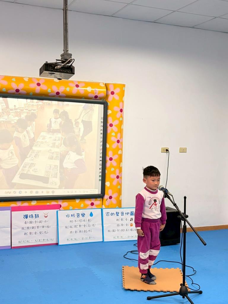 老師透過照片引導孩子說一說闖關時聽到的聲音與感受,來進行回顧與分享