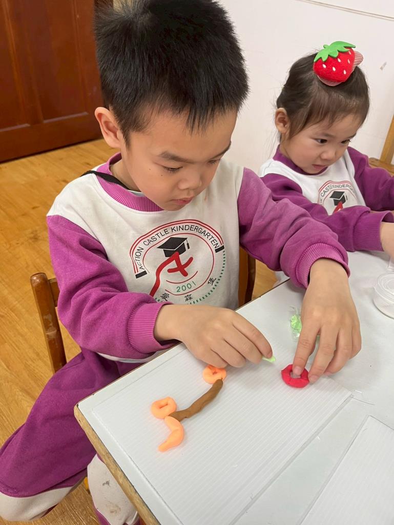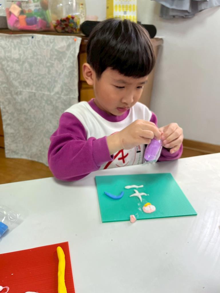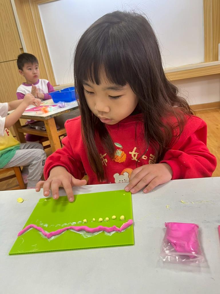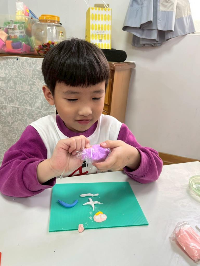 孩子把聽到的聲音想像成形狀,用黏土和美勞素材創作成立體作品