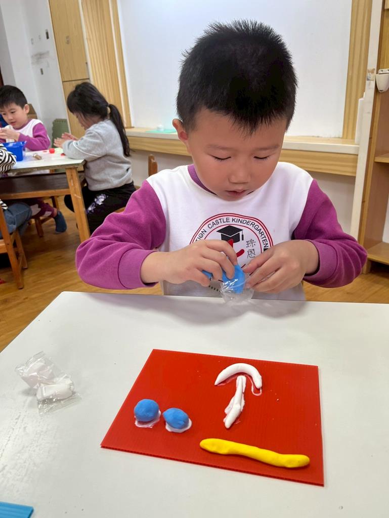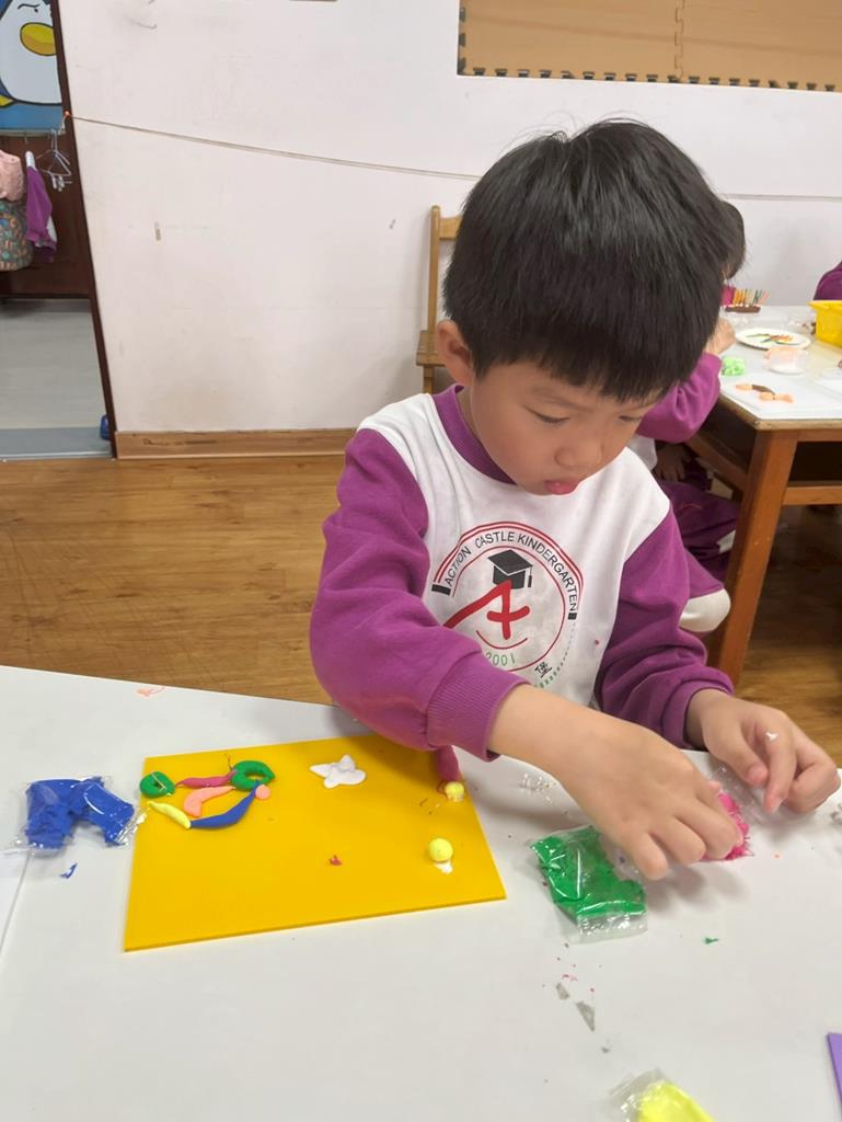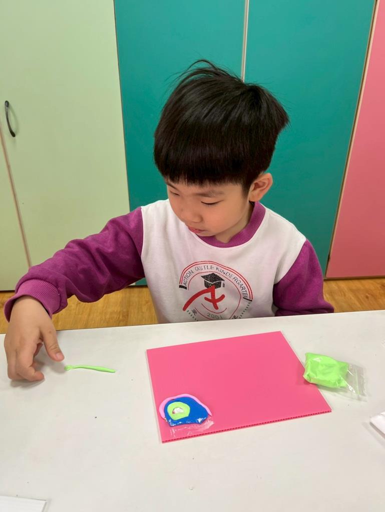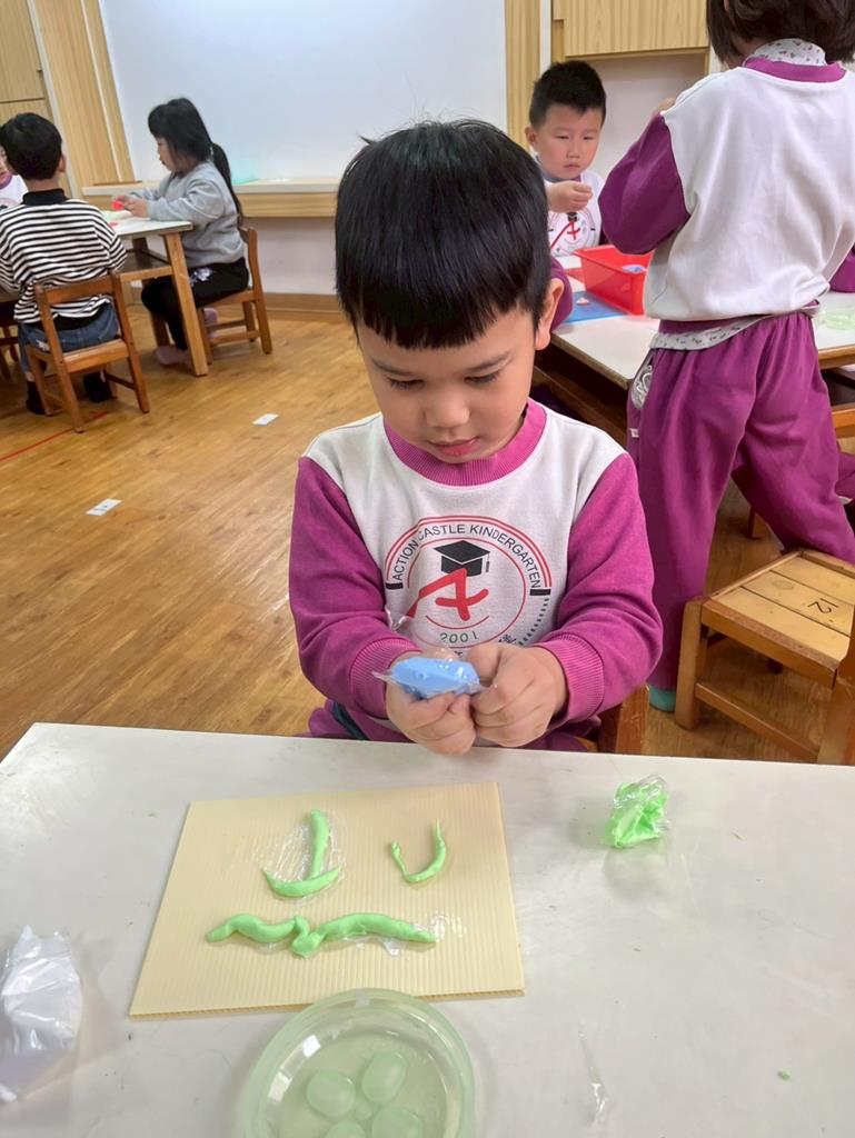 孩子把聽到的聲音想像成形狀,用黏土和美勞素材創作成立體作品