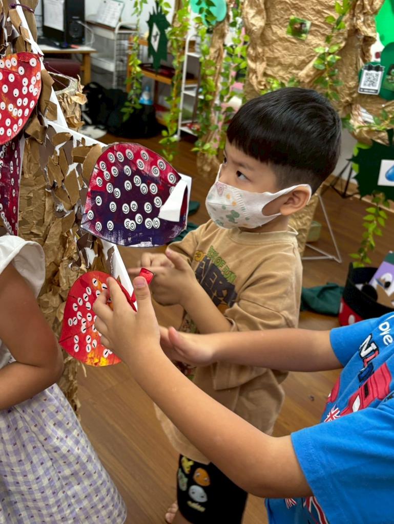相簿名稱: 企鵝小班~走進森林找聲音-幫葉片錄音變成聲音大樹