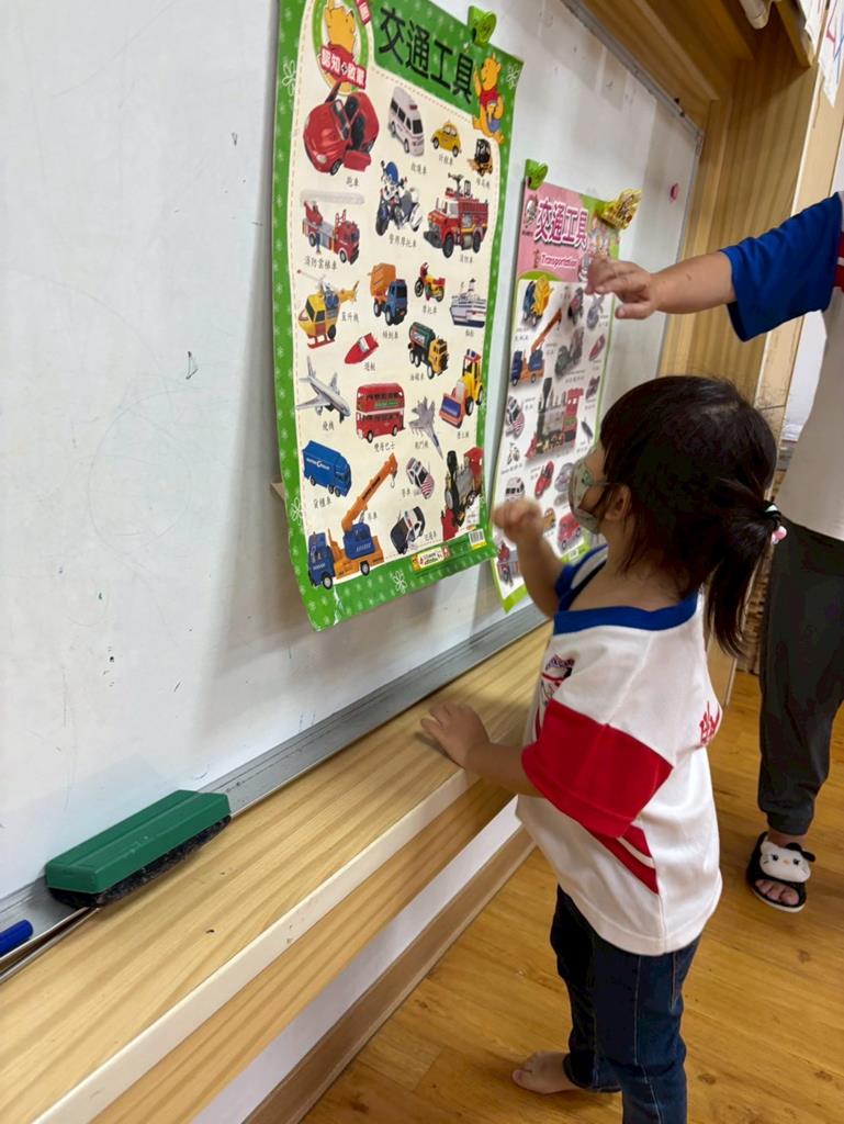 老師指定交通工具邀請幼兒聽聽聲音舉牌辨別對或錯。