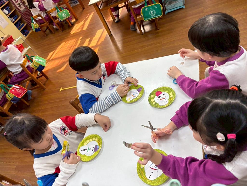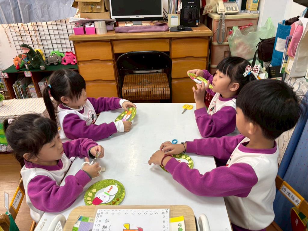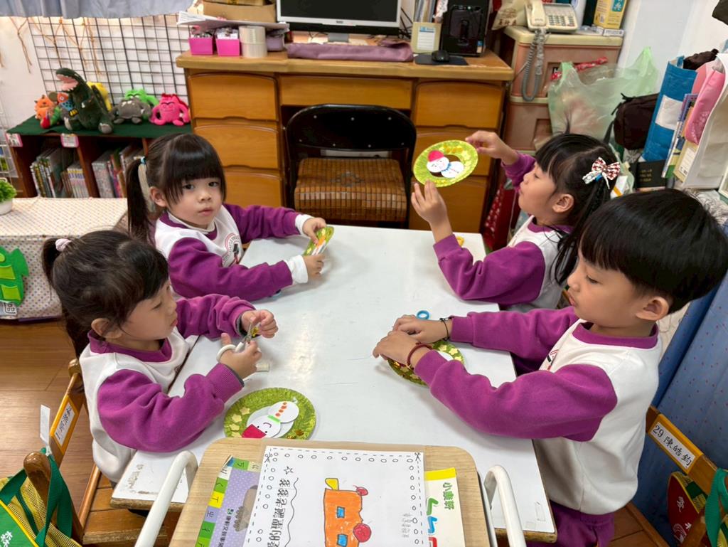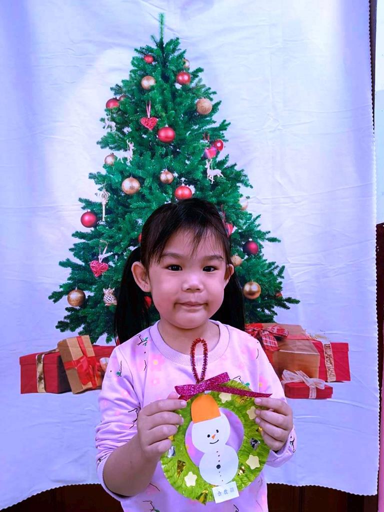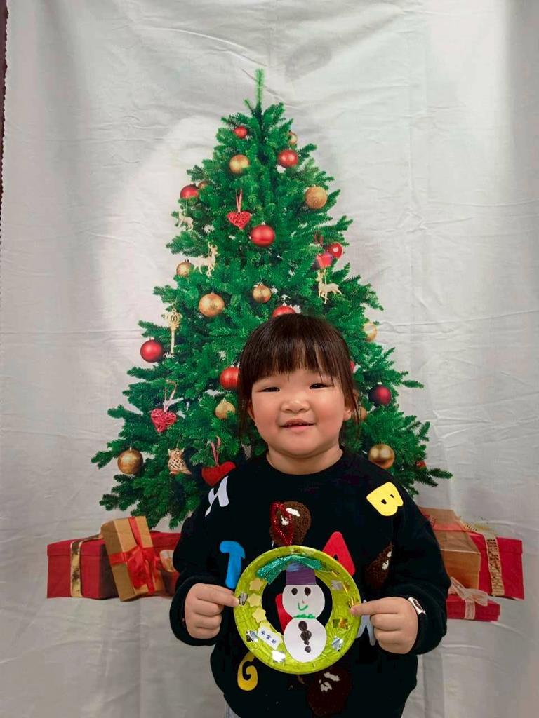 孩子們利用蛋糕紙盤進行聖誕花圈DIY並裝飾在聖誕樹上