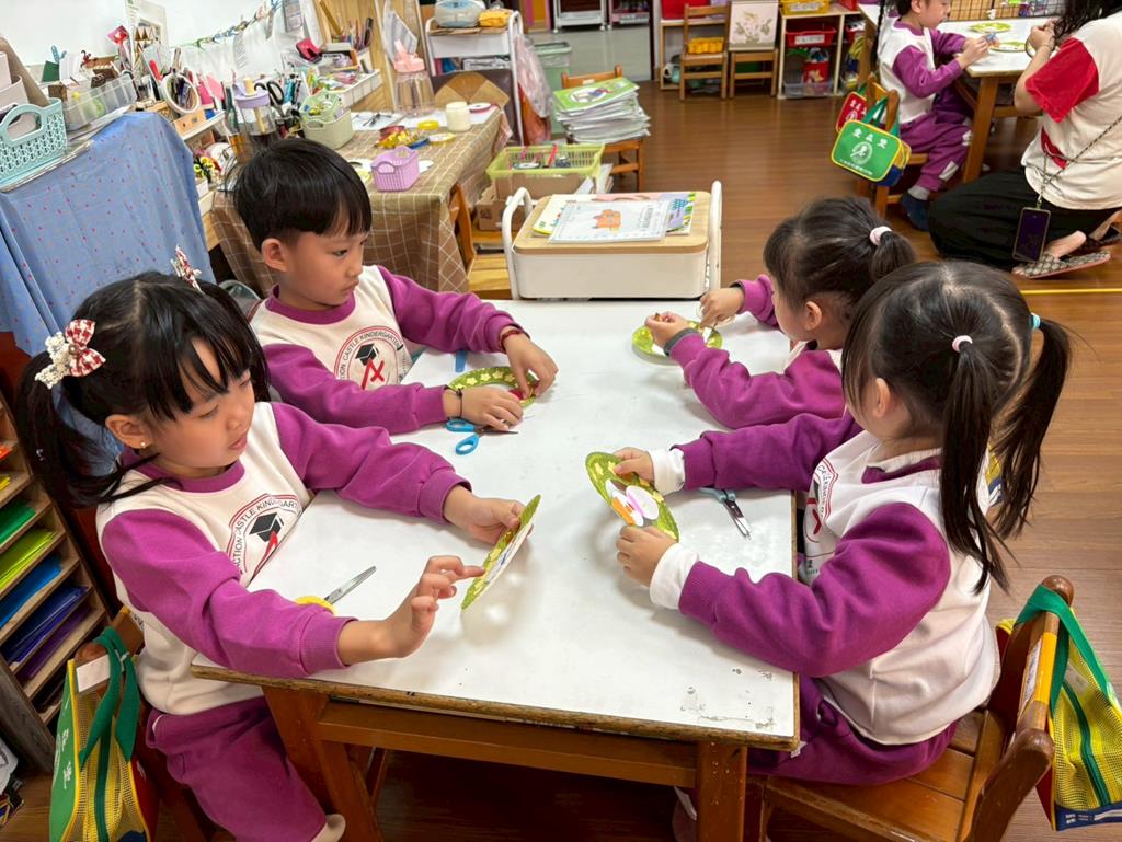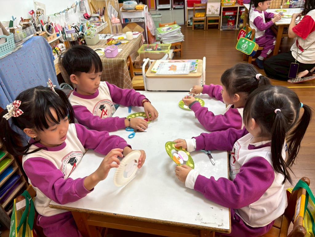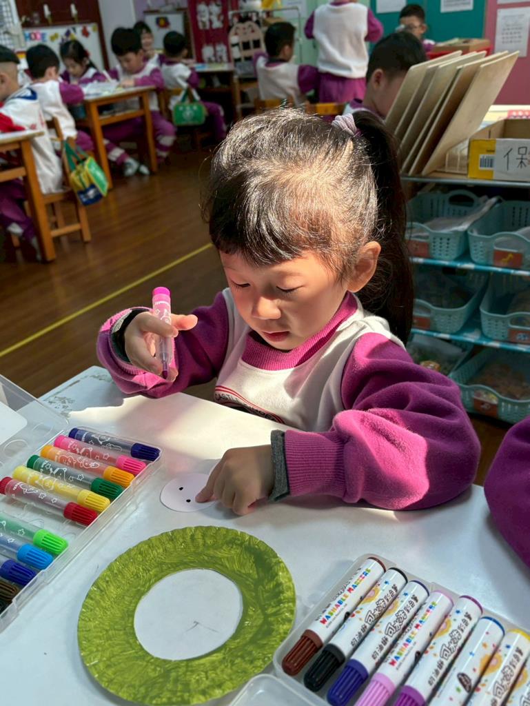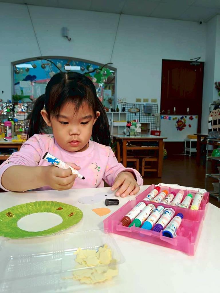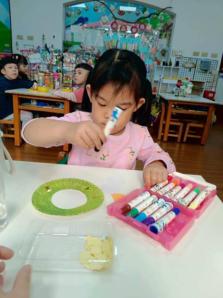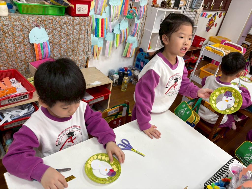 孩子們利用蛋糕紙盤進行聖誕花圈DIY並裝飾在聖誕樹上