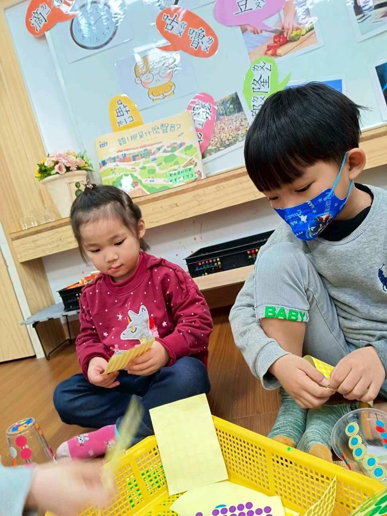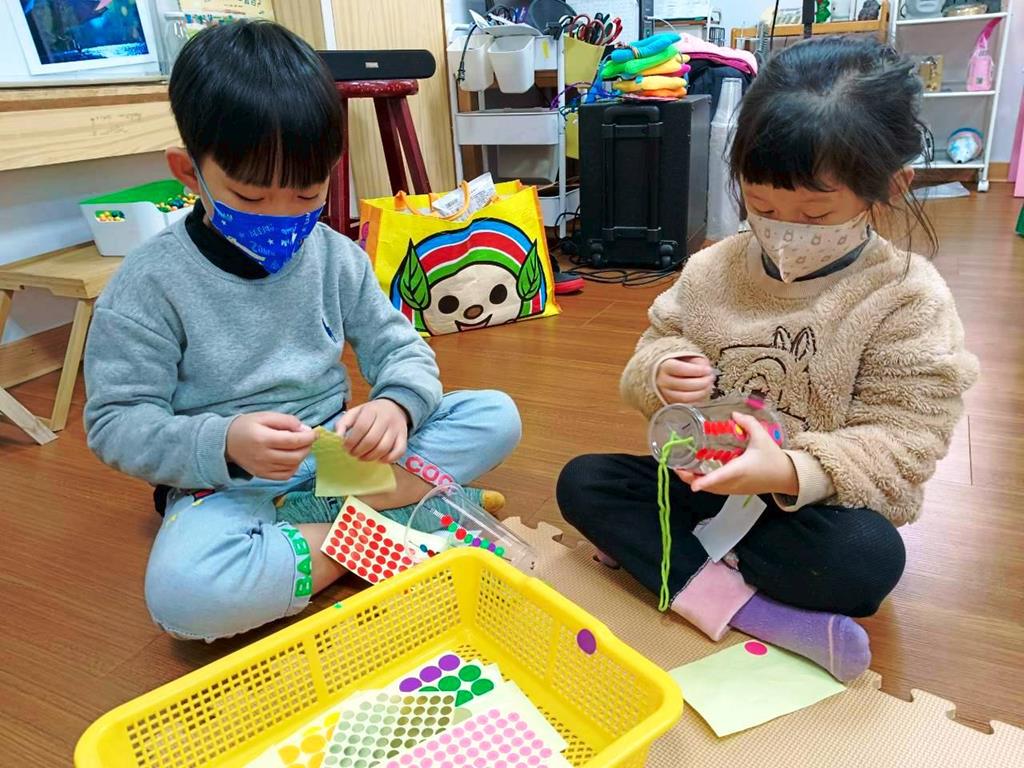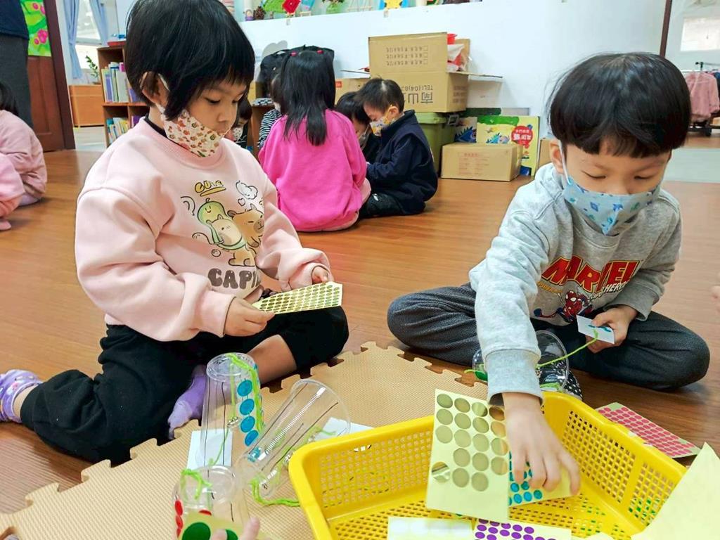 孩子們運用美勞素材製作自己的小風鈴
