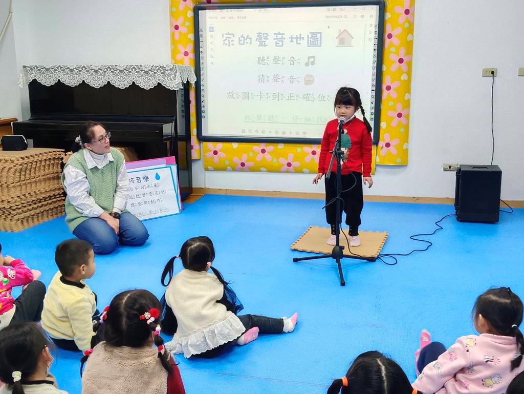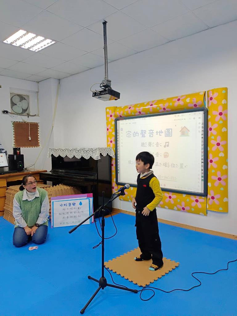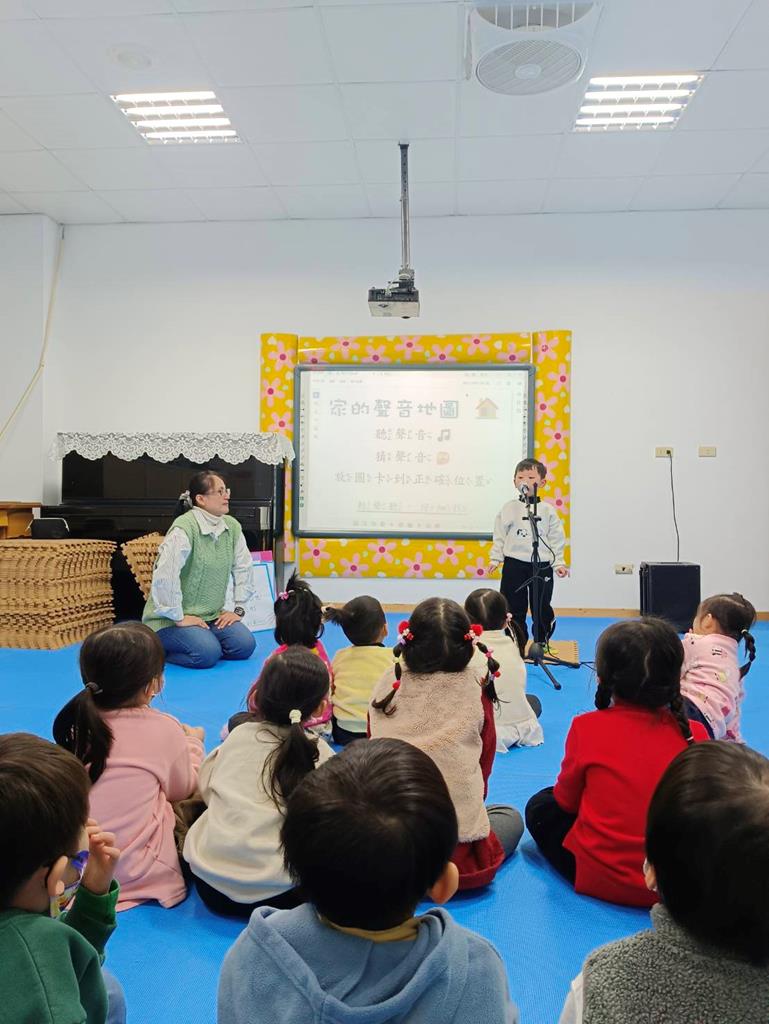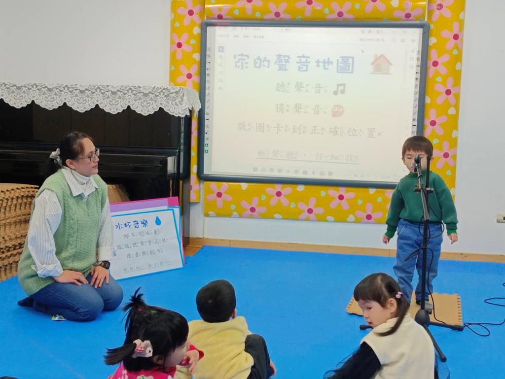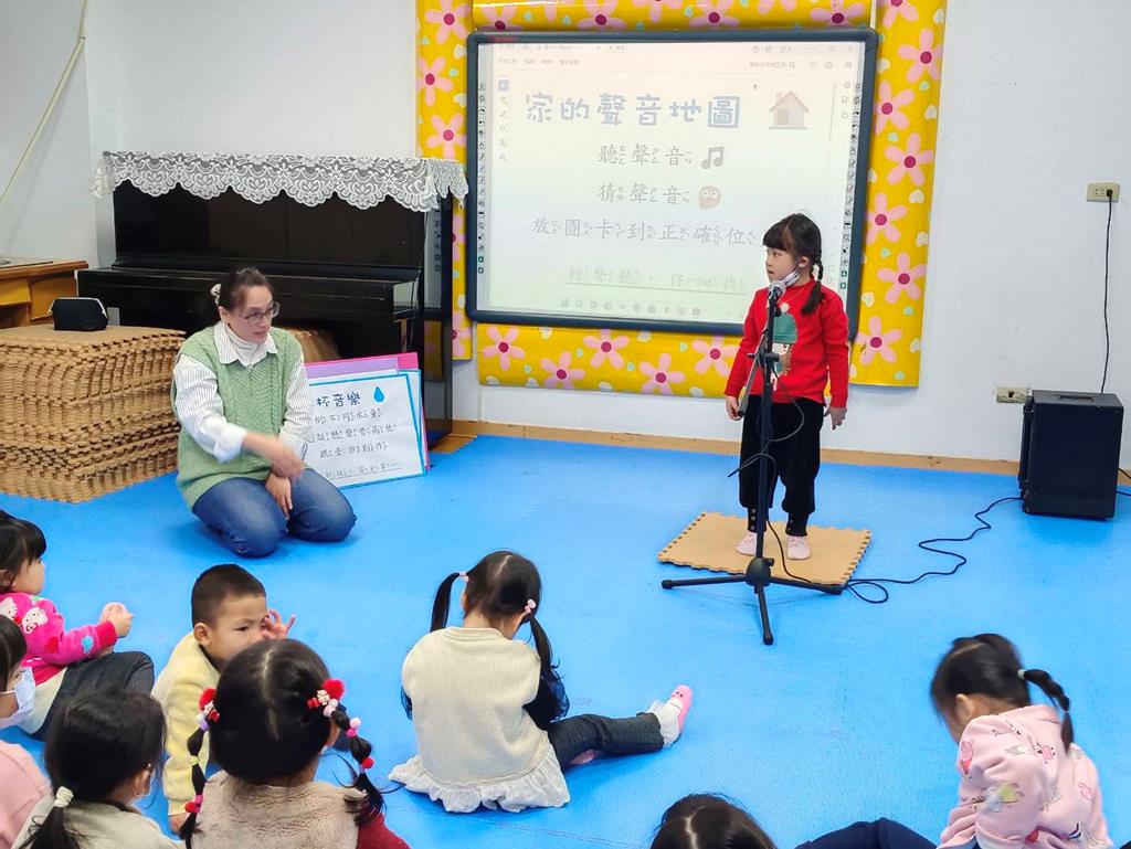 完成闖關活動後,進行活動回顧與分享,透過照片引導孩子說一說闖關時聽到的聲音與感受