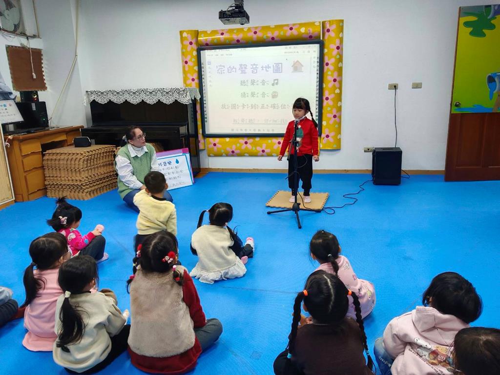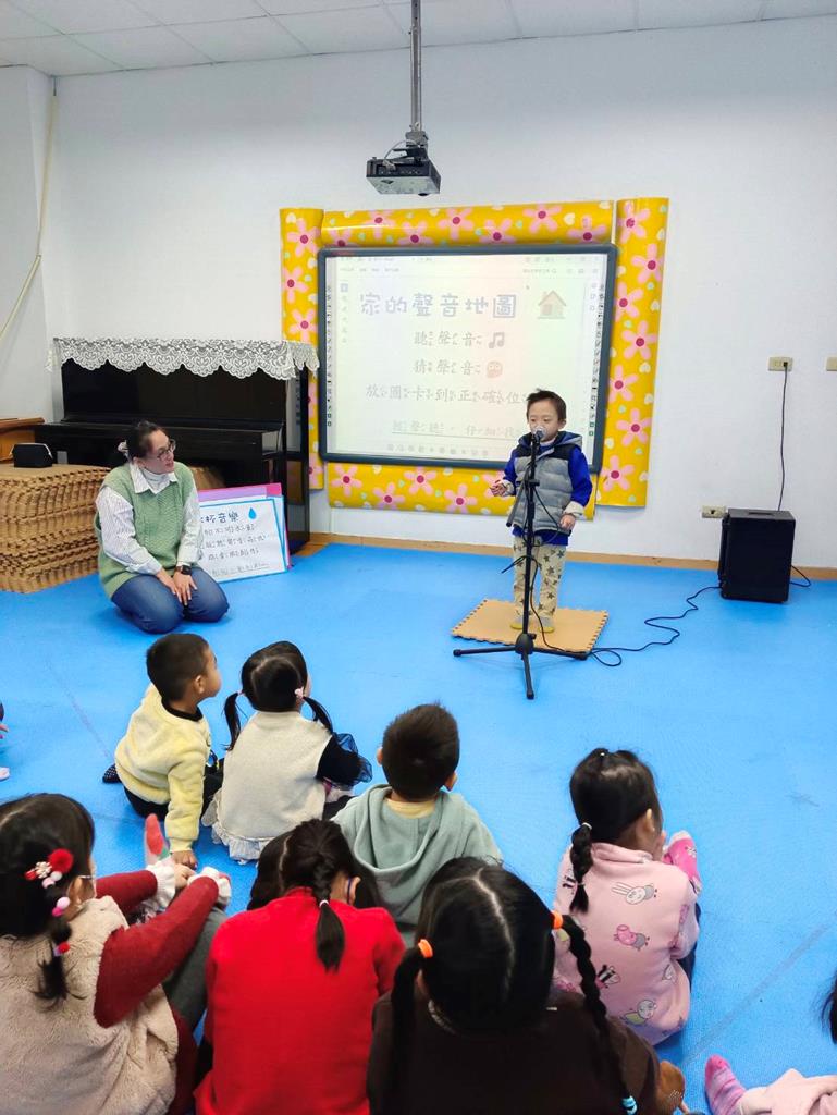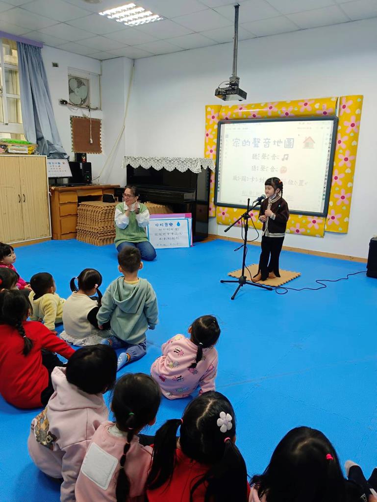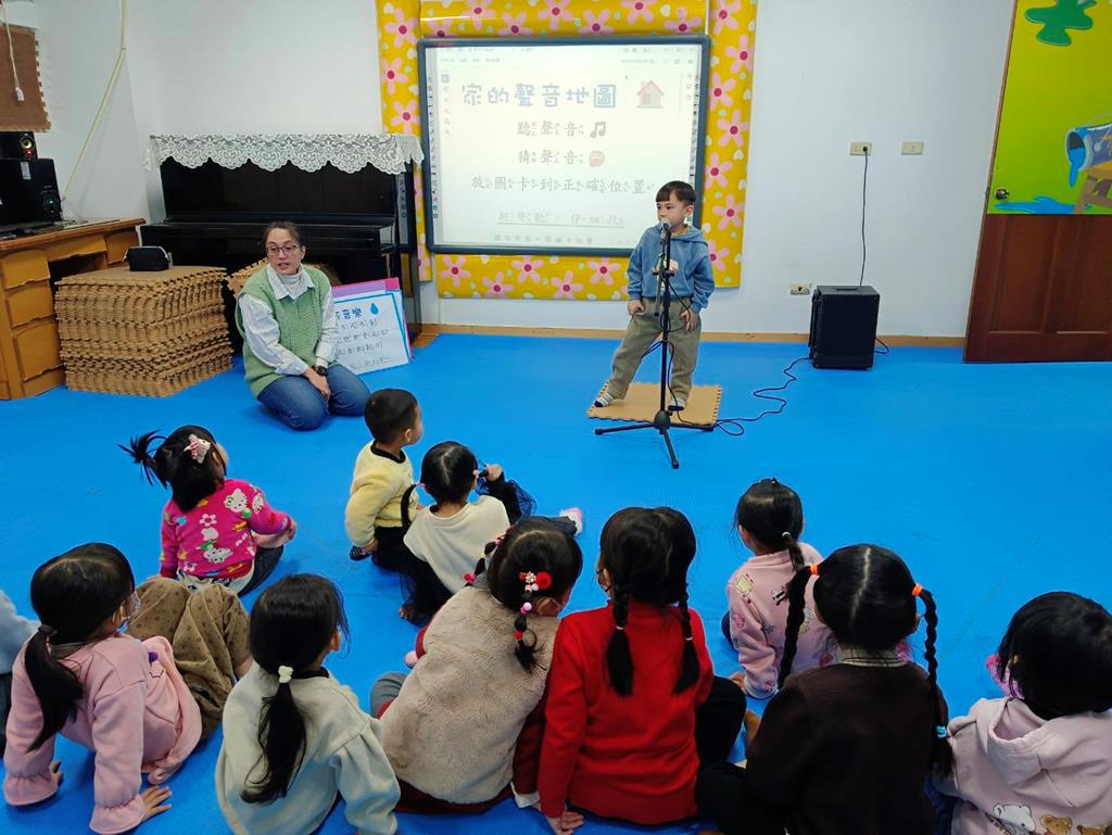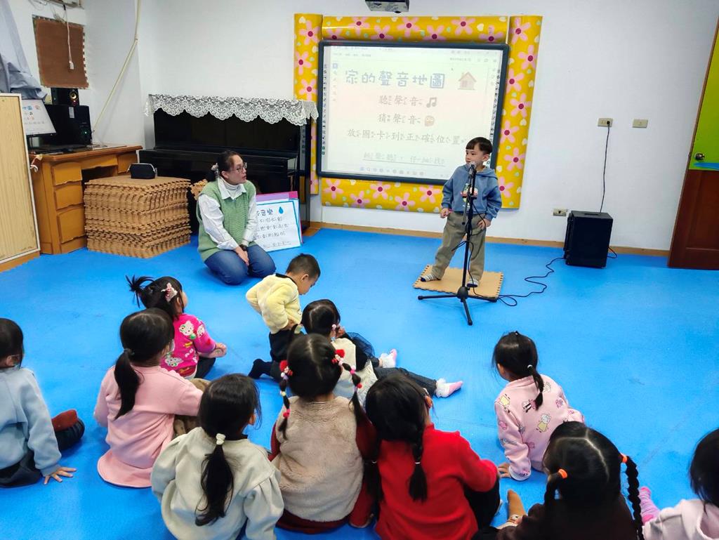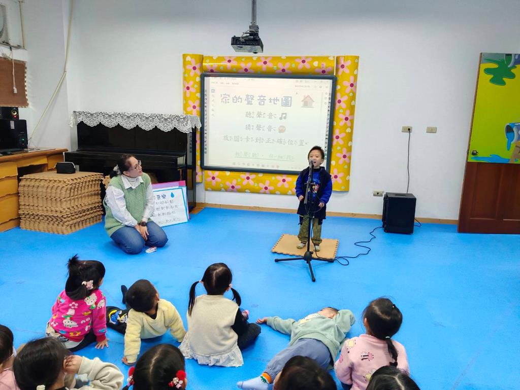 完成闖關活動後,進行活動回顧與分享,透過照片引導孩子說一說闖關時聽到的聲音與感受