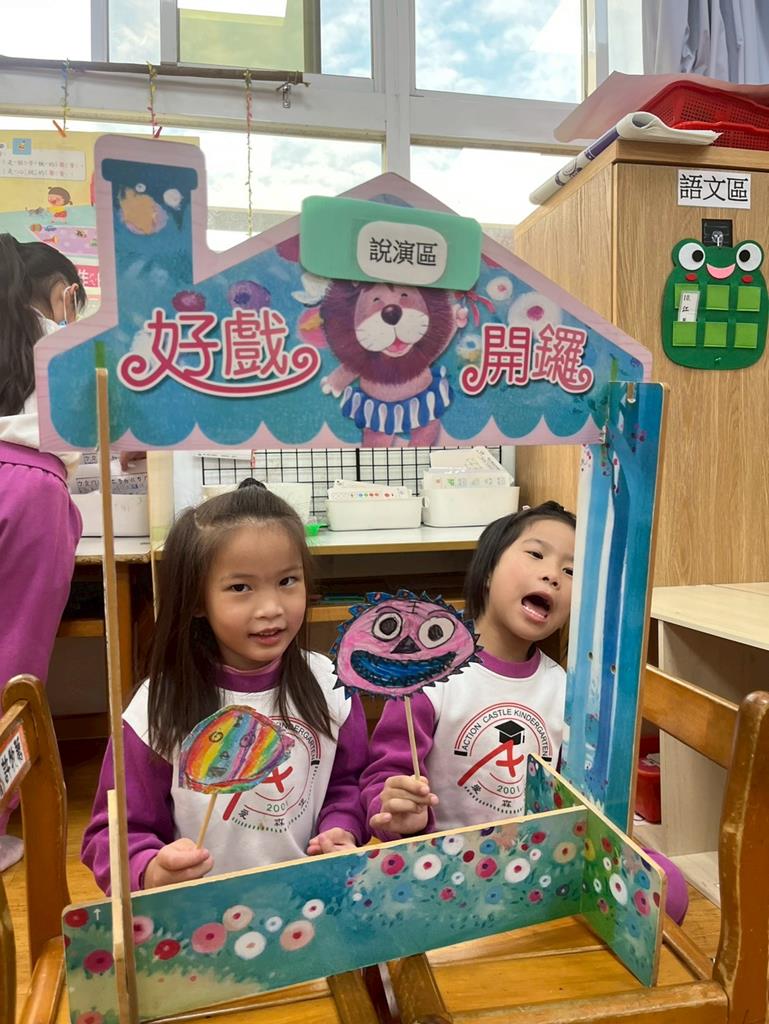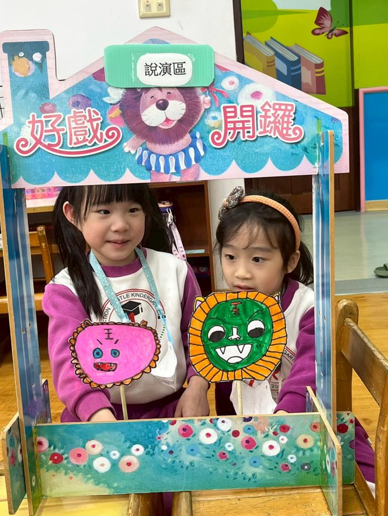 老師介紹年的由來,請幼兒畫出心目中的年獸並製作成故事棒偶,進行扮演遊戲