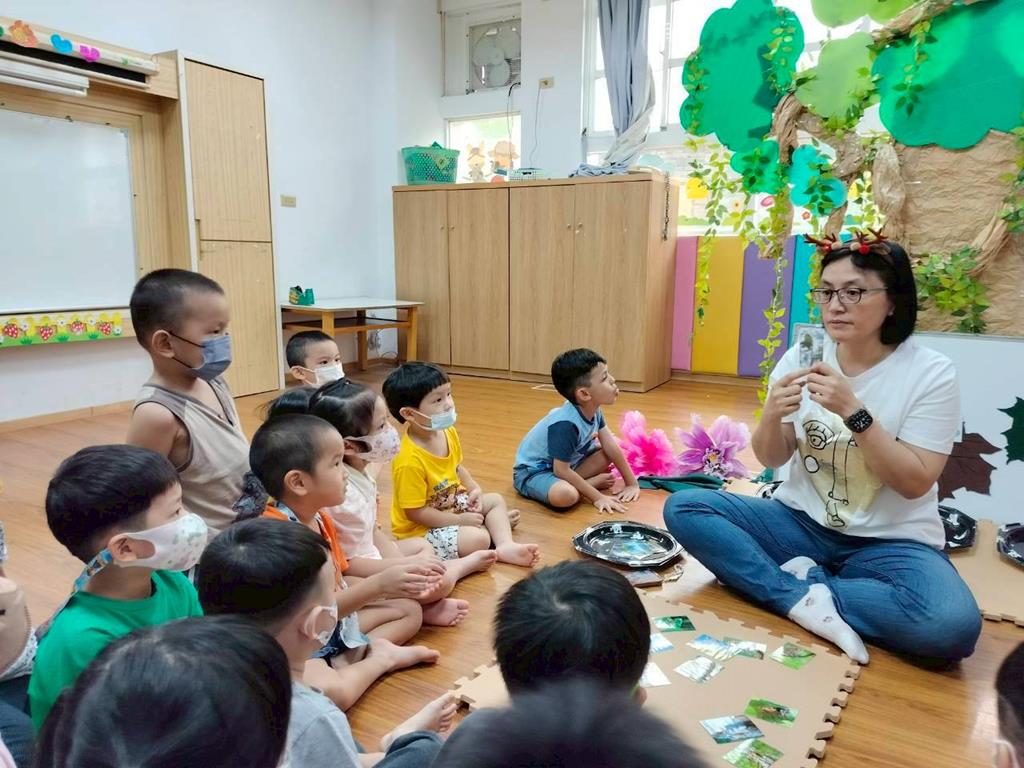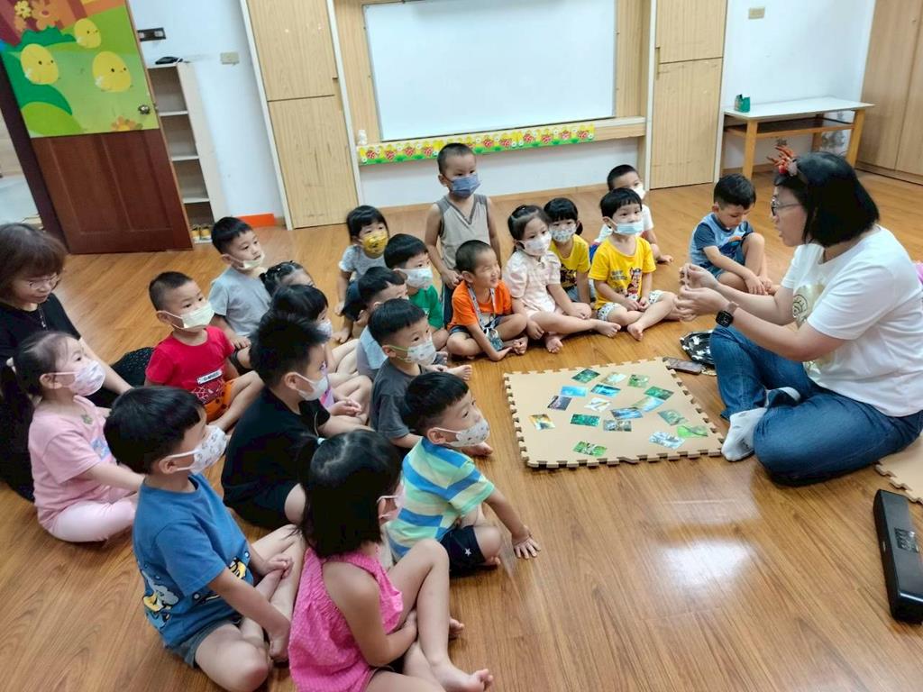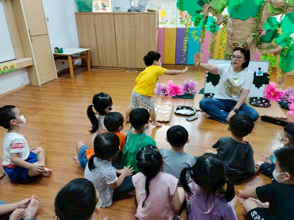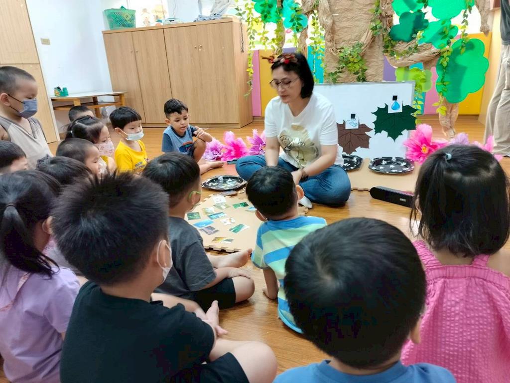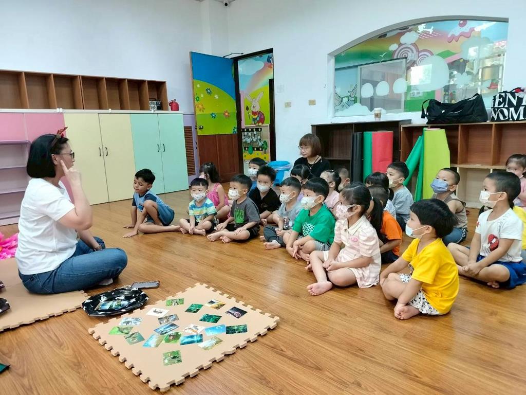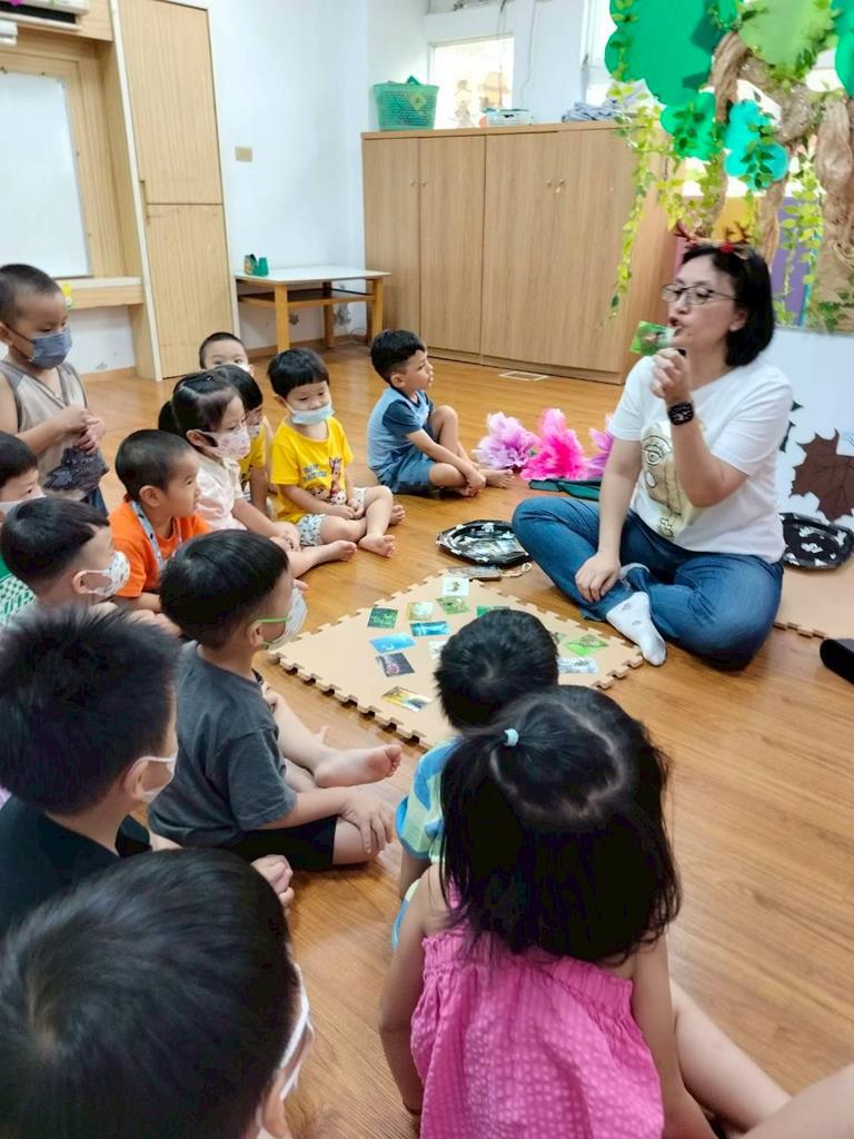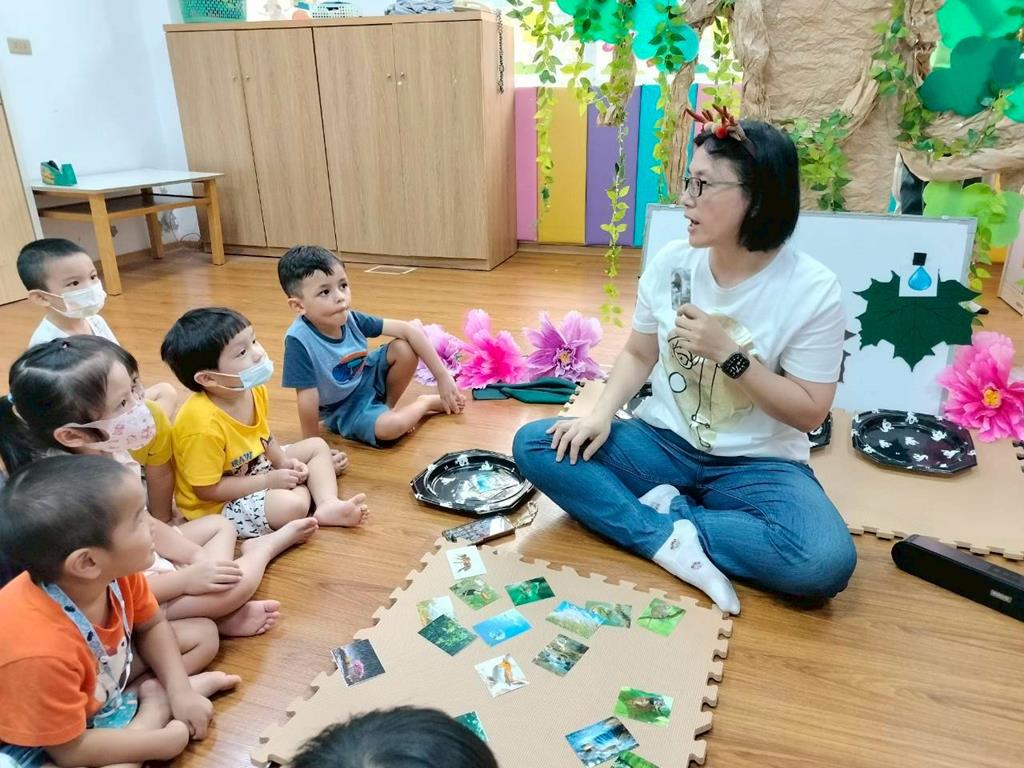 延續上個活動,今天孩子將聆聽聲音,找出對應圖片配對用身體模仿聲音完成森林交響曲
