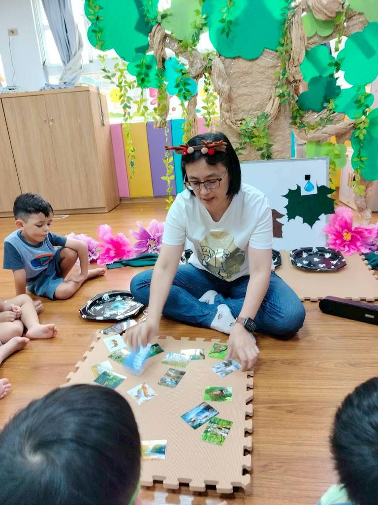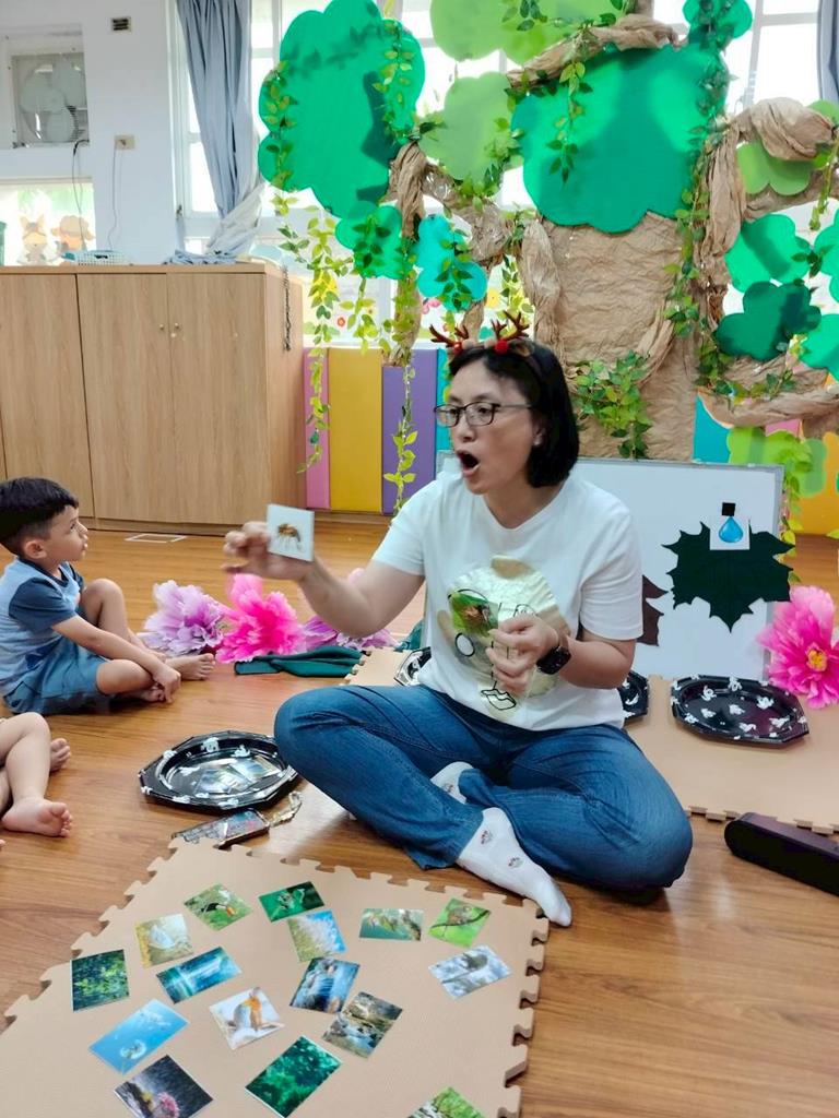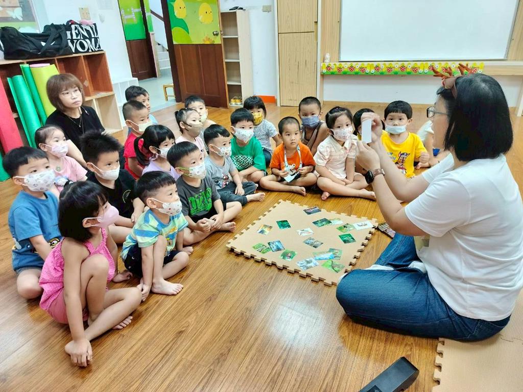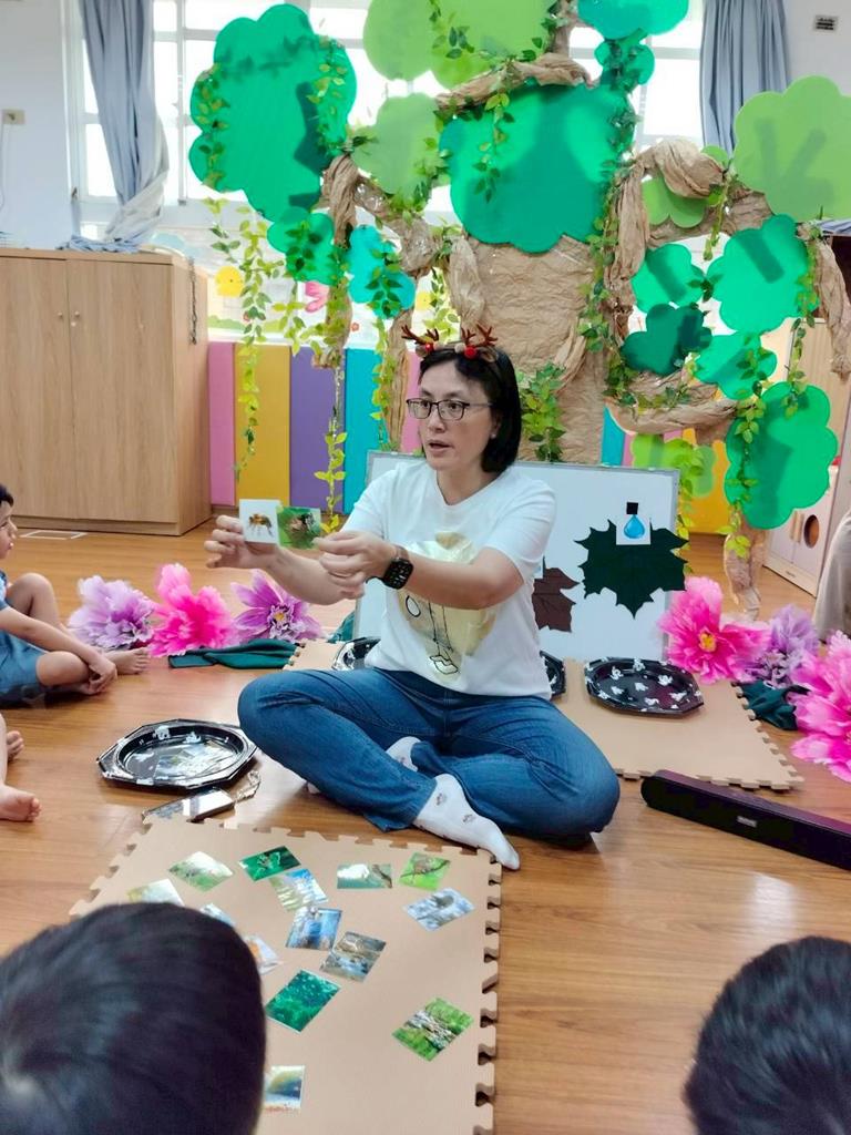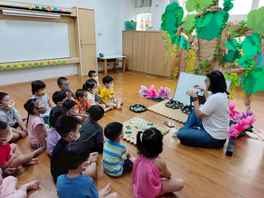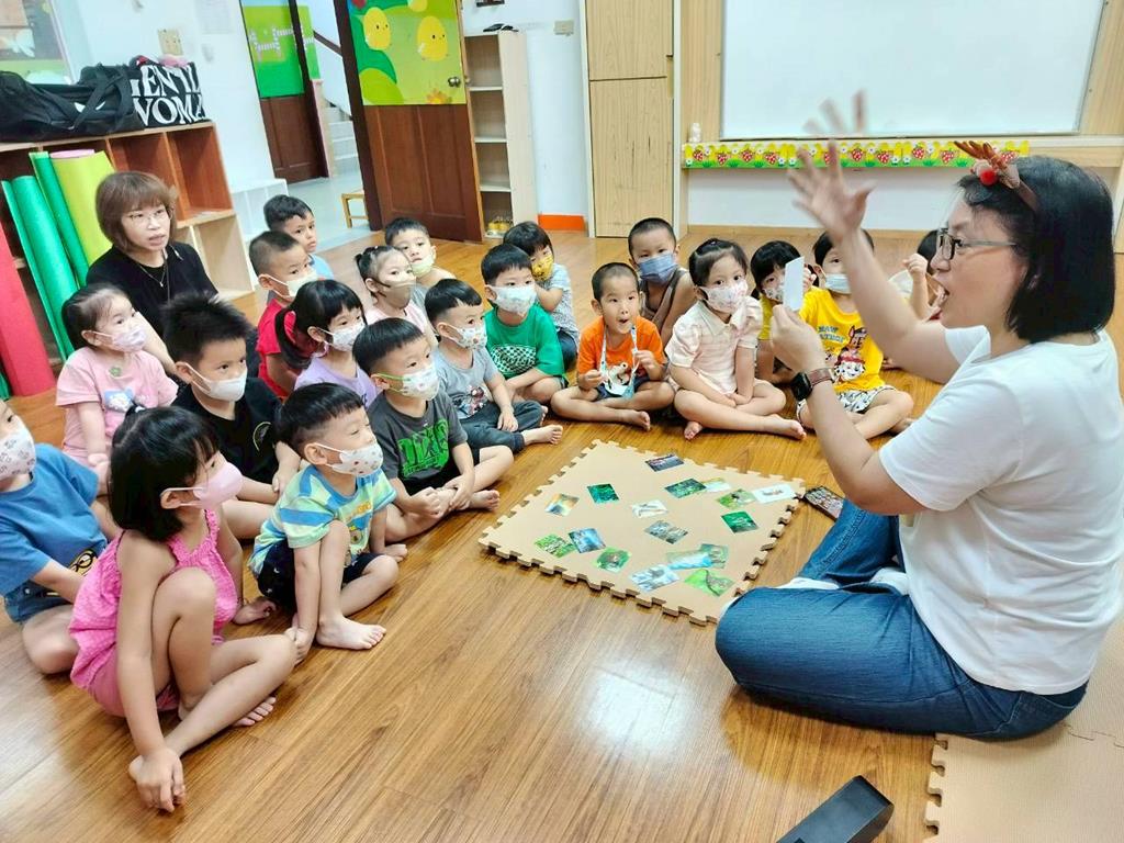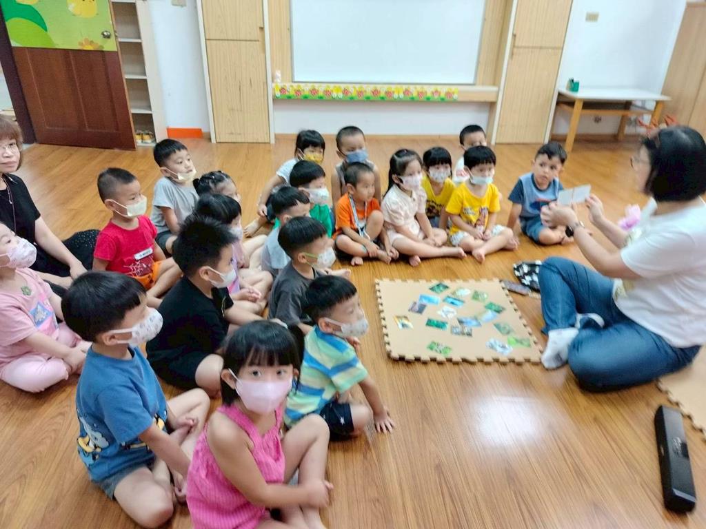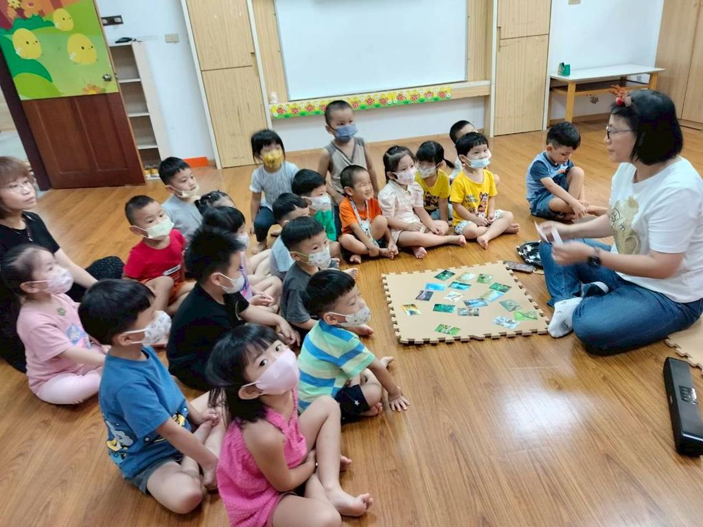 延續上個活動,今天孩子將聆聽聲音,找出對應圖片配對用身體模仿聲音完成森林交響曲