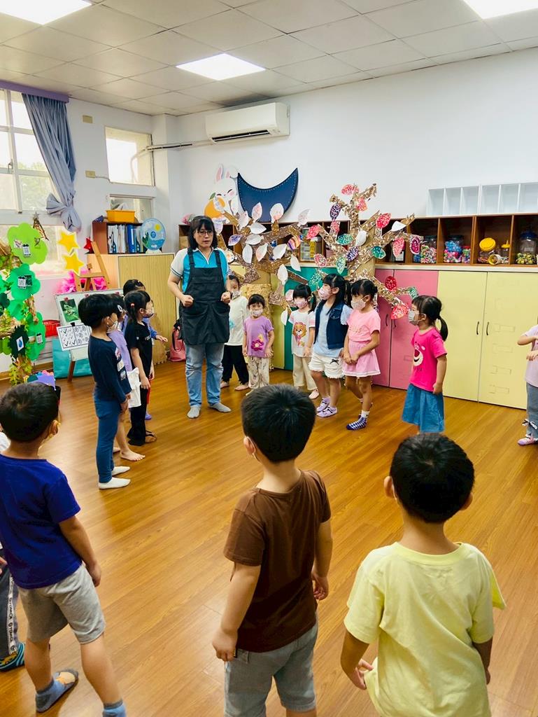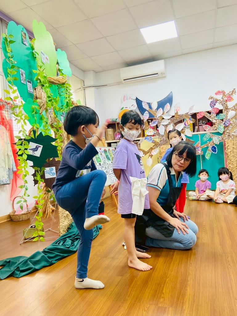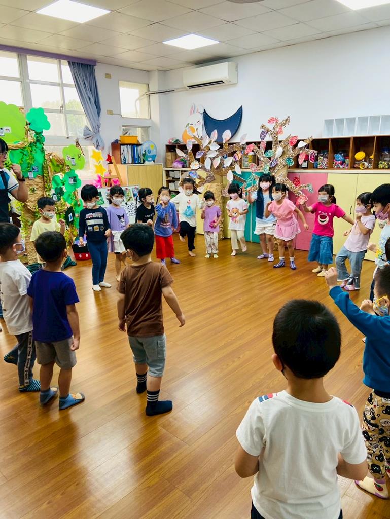 老師與孩子進行好玩的聽音停遊戲,並分成小組創作「腳步舞」