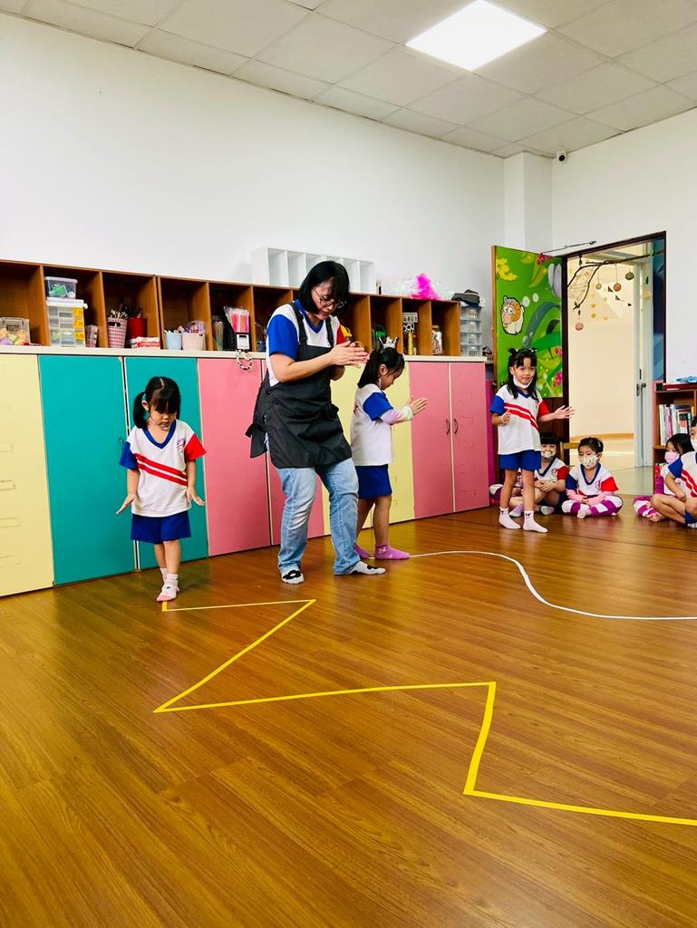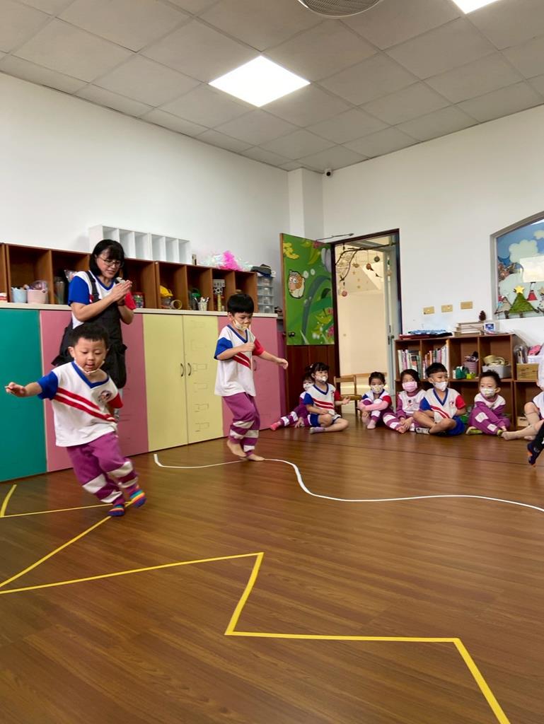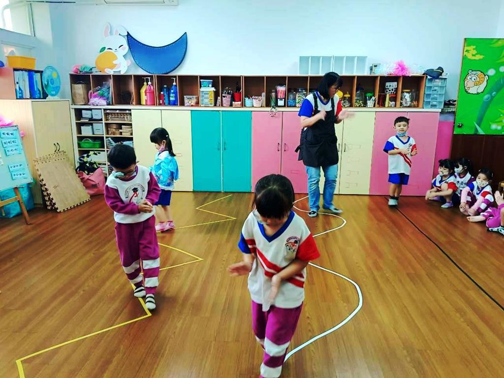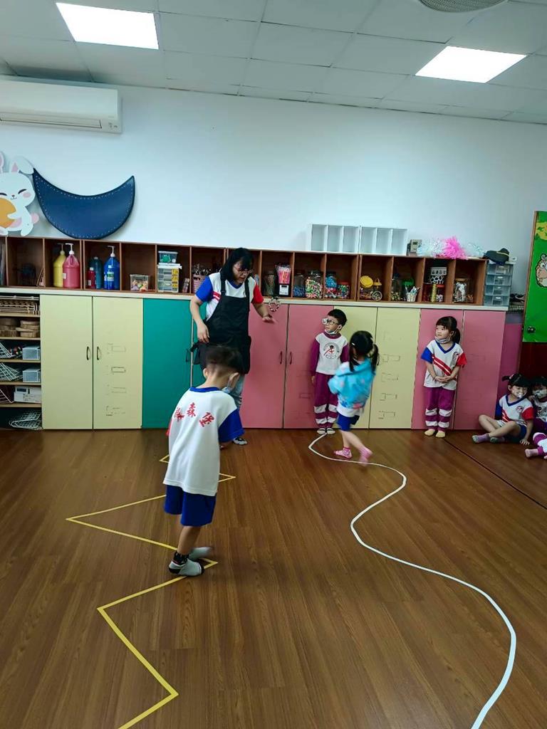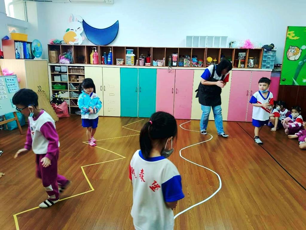 播放不同速度與強弱的音樂(如輕快、慢板、強節奏)孩子分組輪流走在不同線上,感受腳步與音樂節奏的變化。