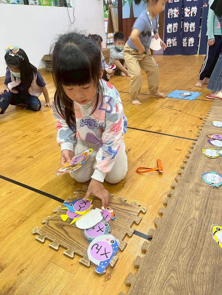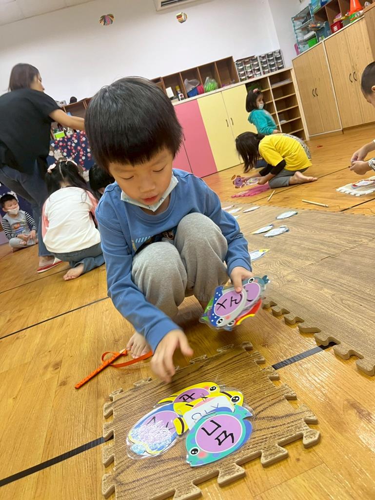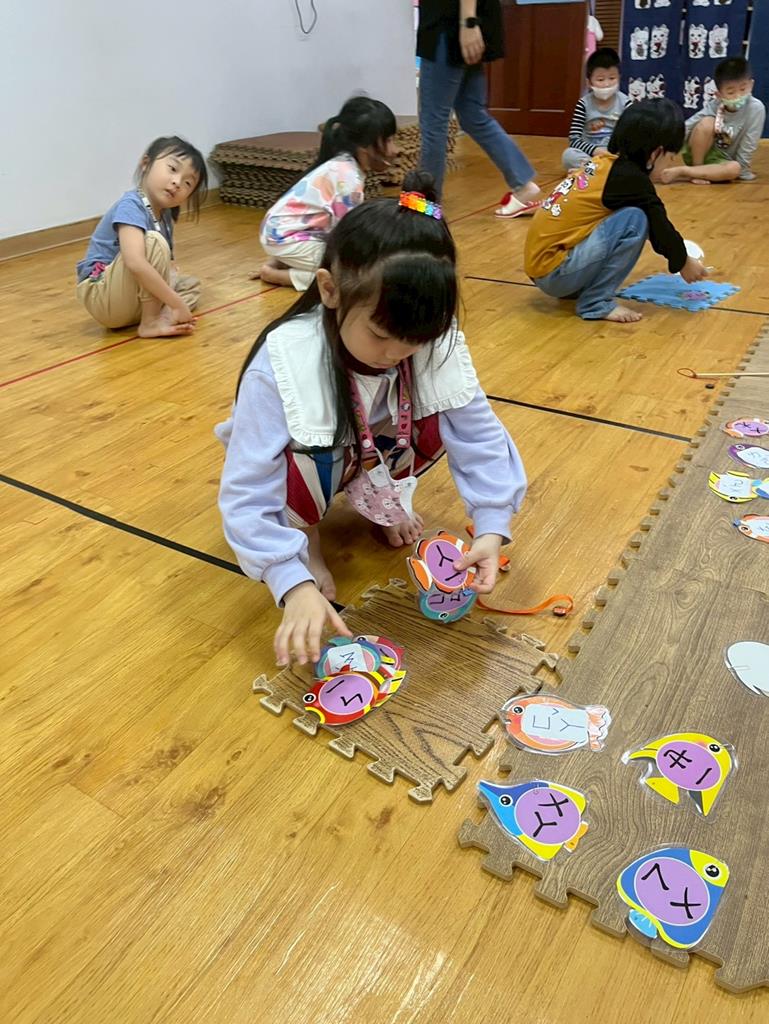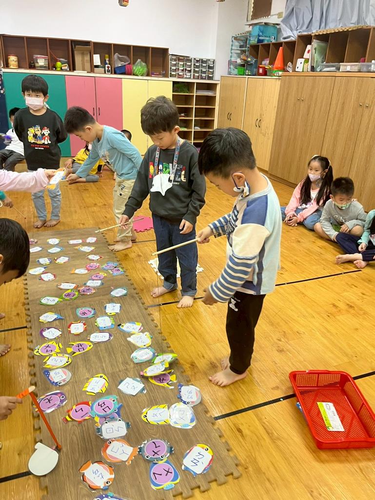 老師將教過的注音擺放在軟墊上,以分組的方式進行PK大賽