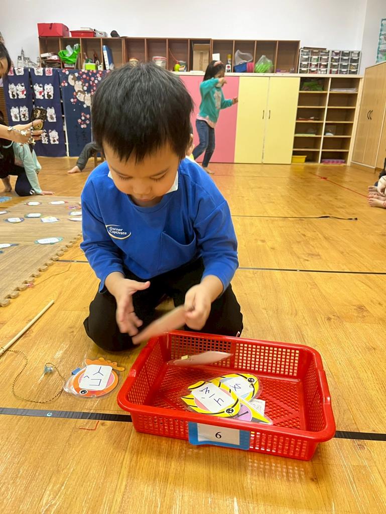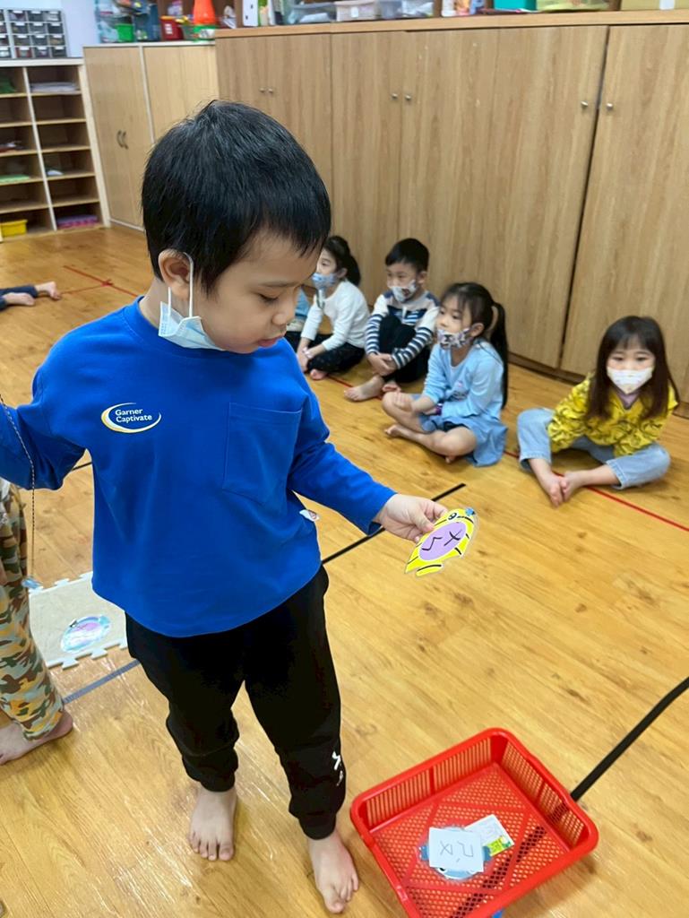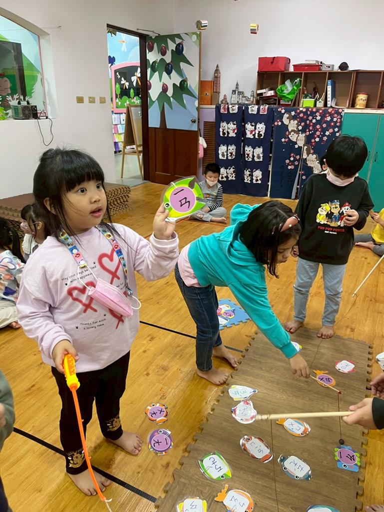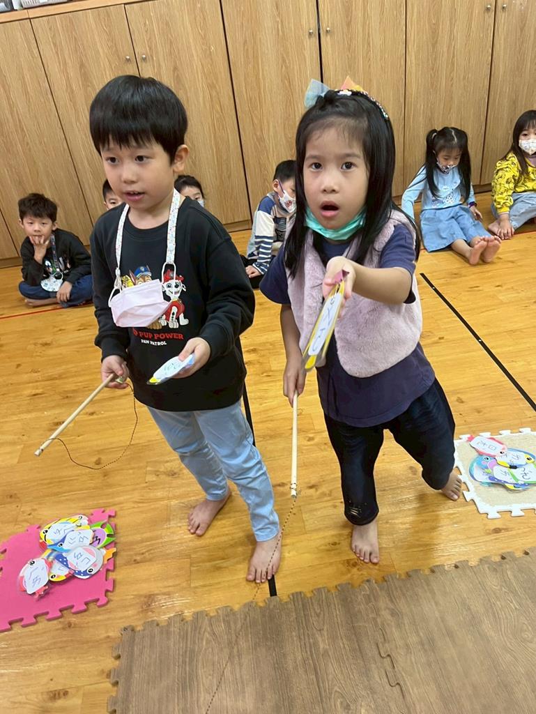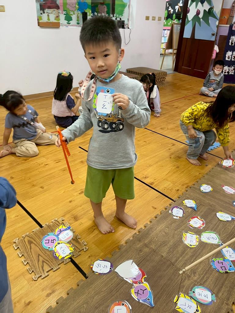 老師將教過的注音擺放在軟墊上,以分組的方式進行PK大賽
