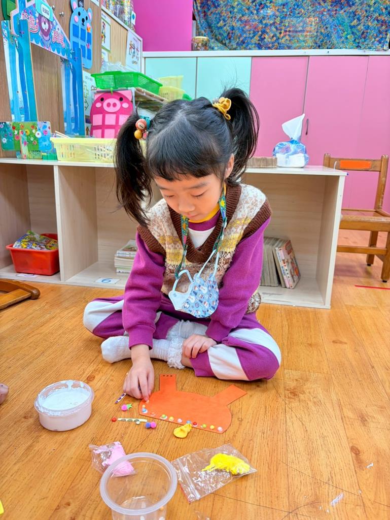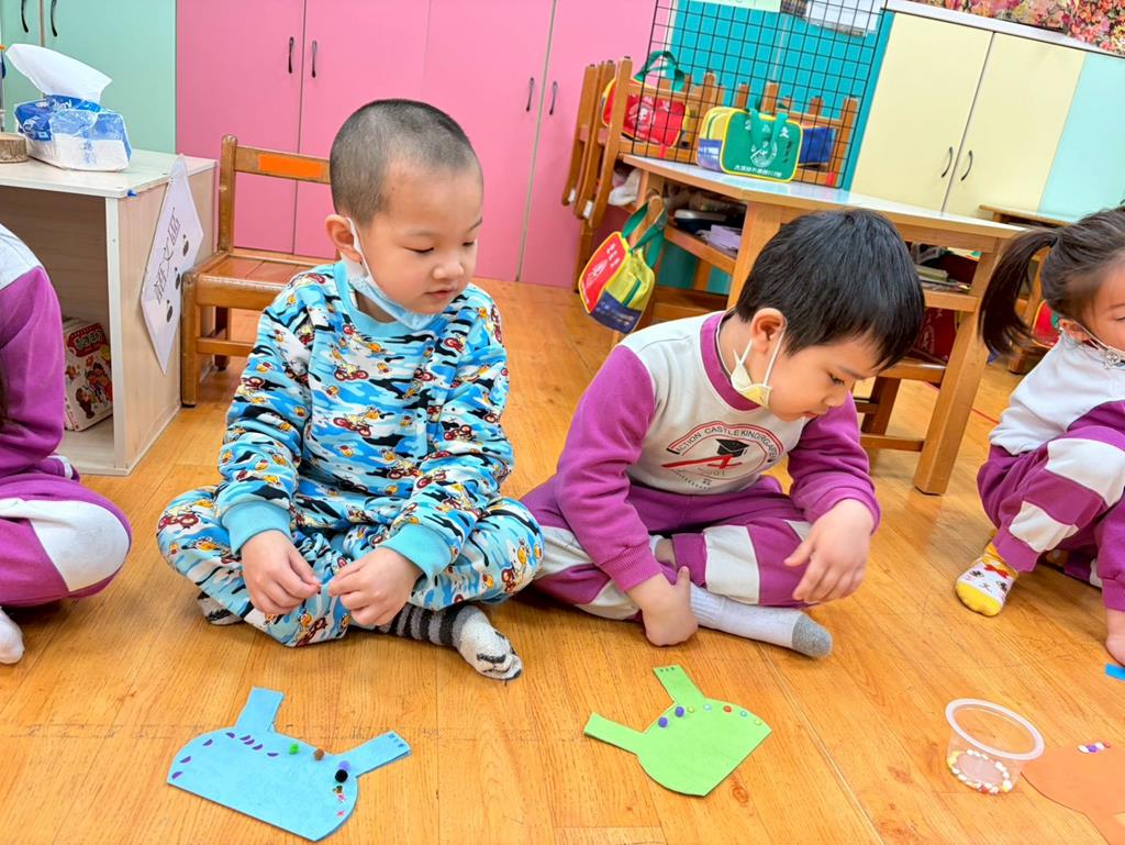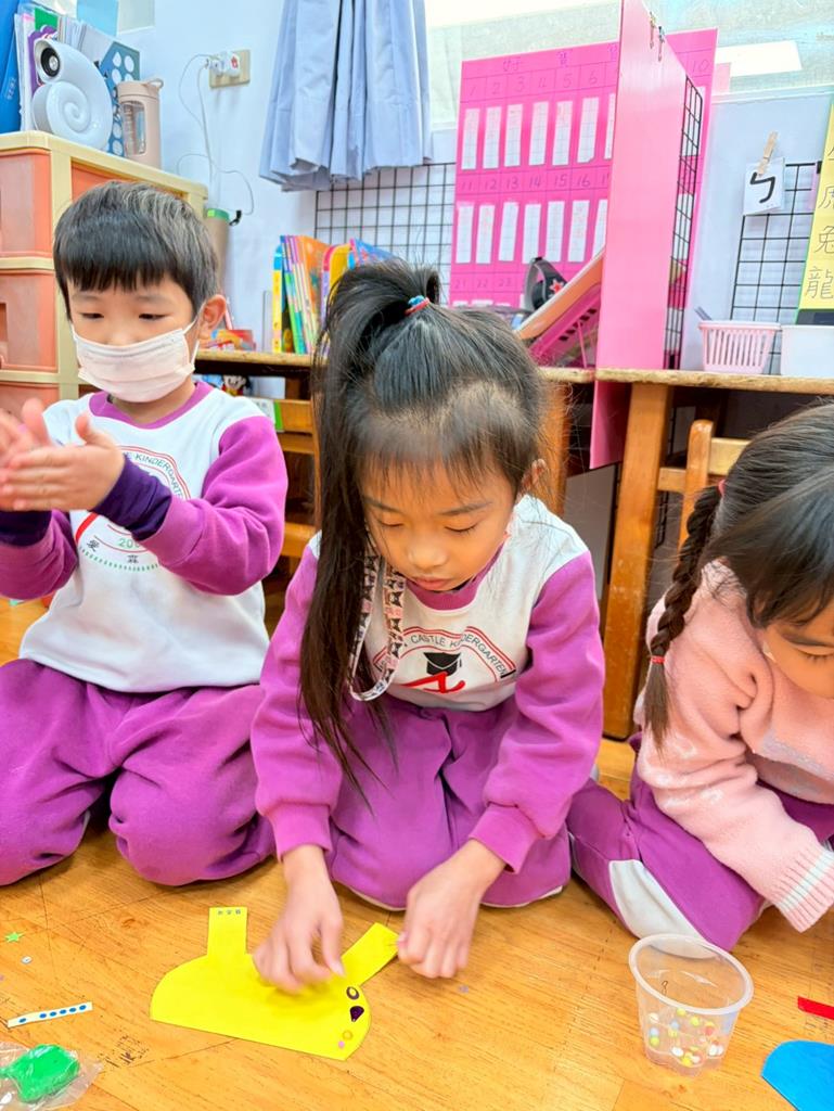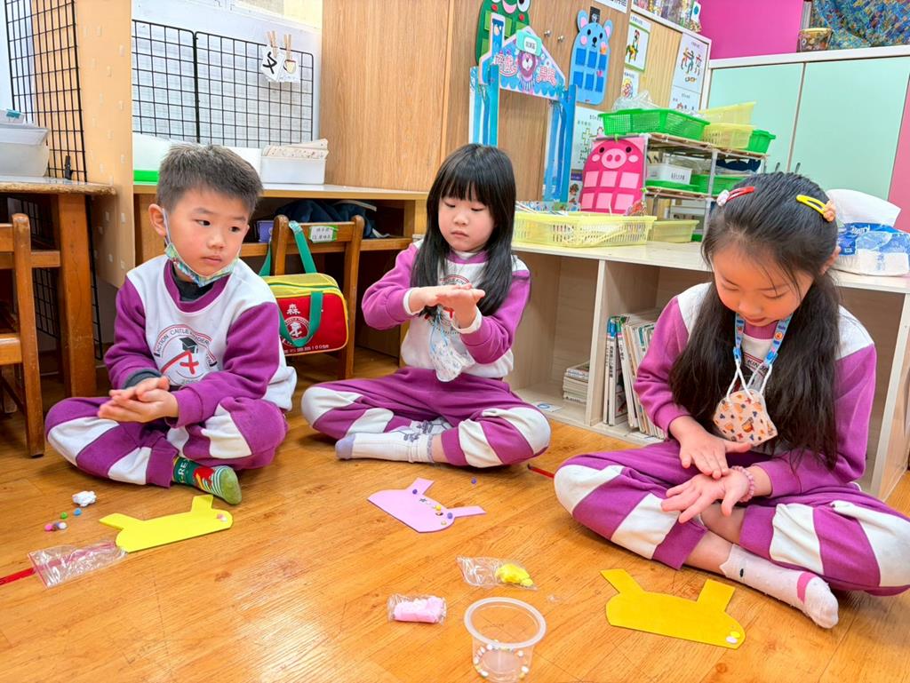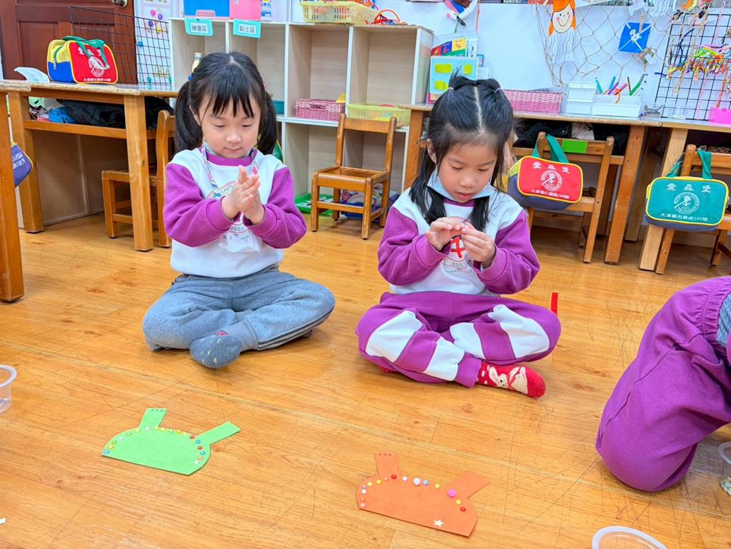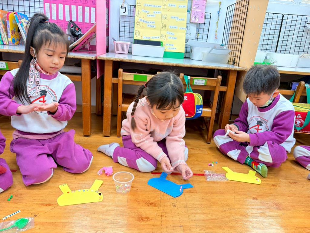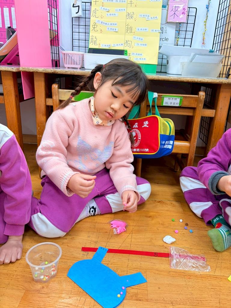 運用各式美勞素材,與孩子一起製作馬年吊飾,布置教室走廊