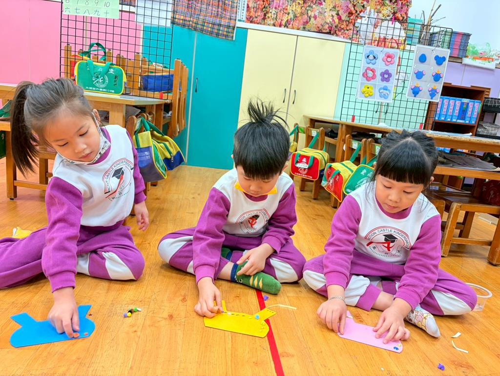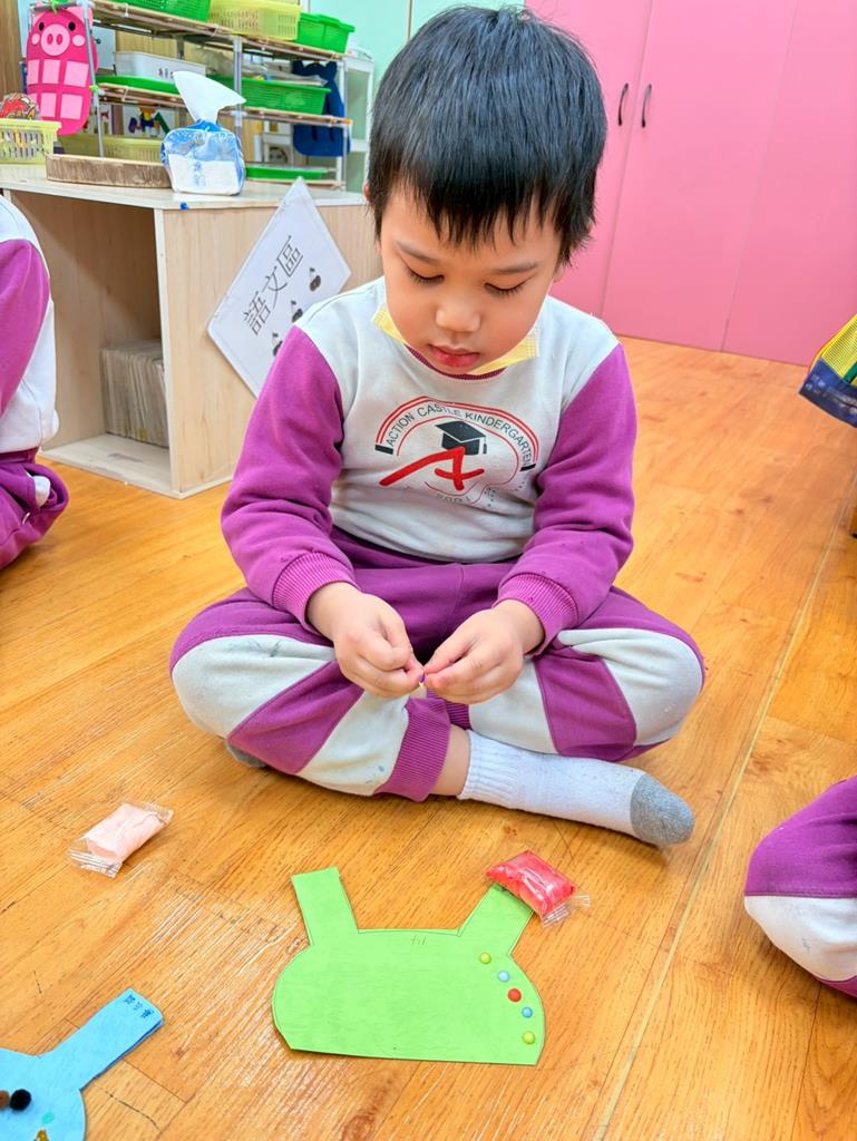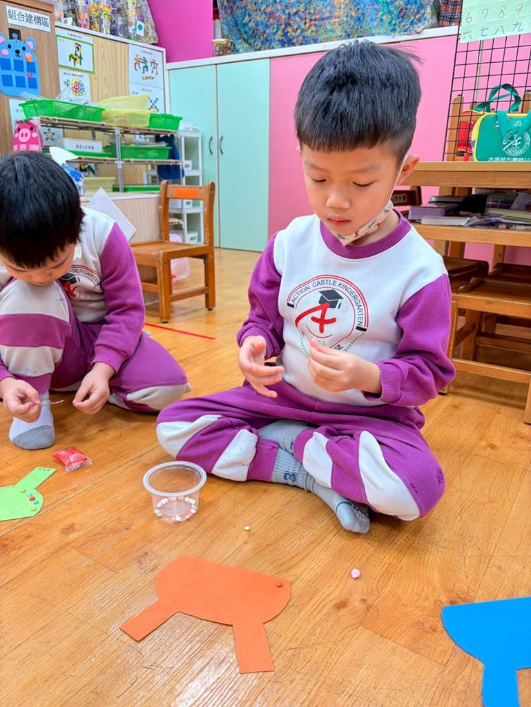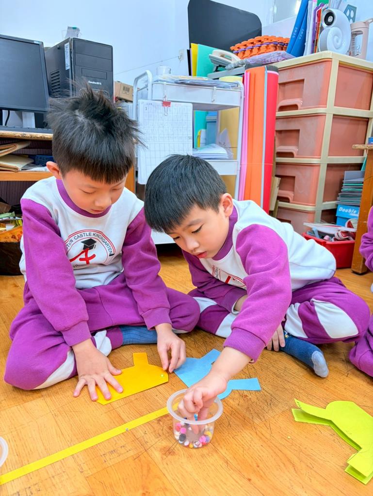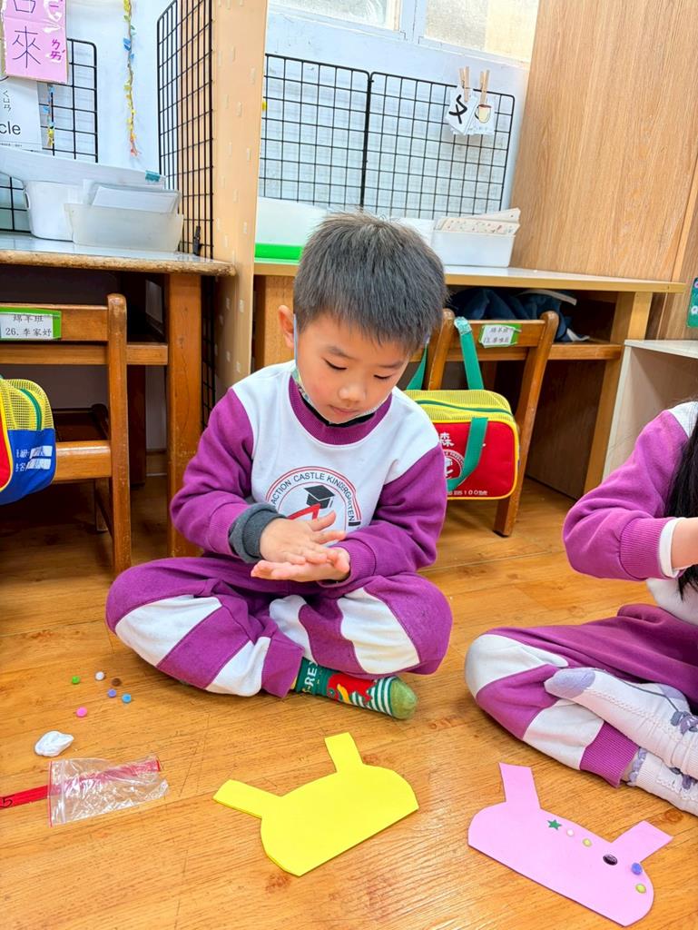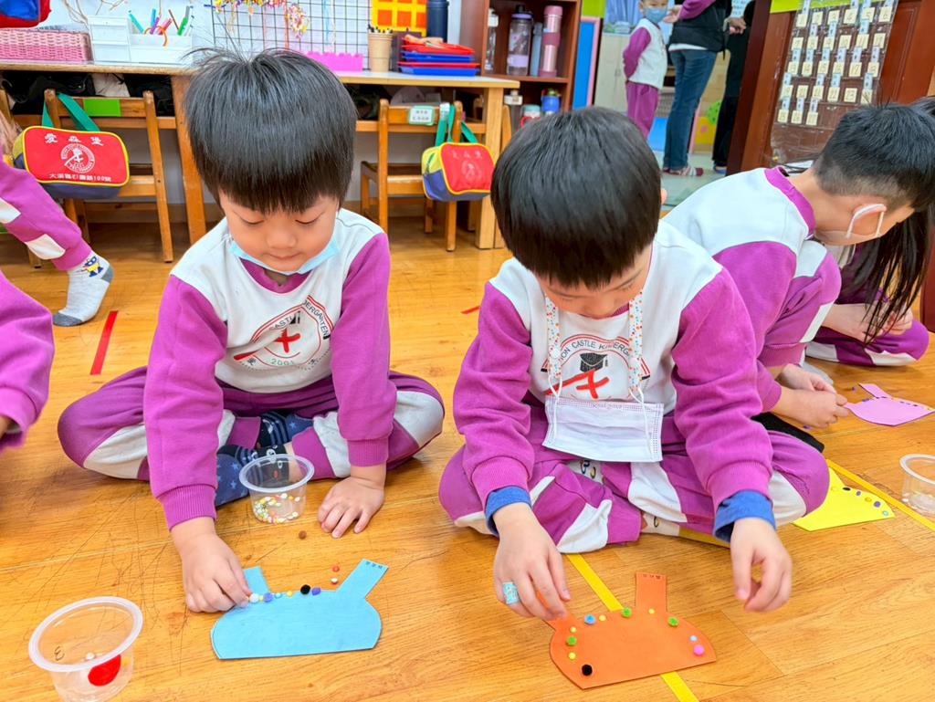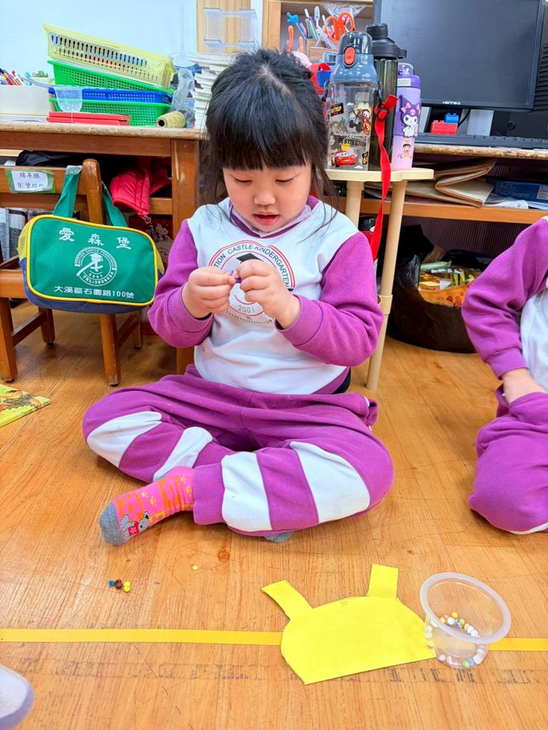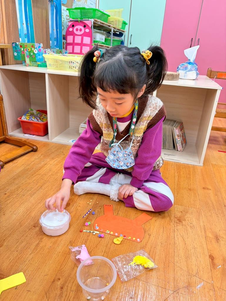 運用各式美勞素材,與孩子一起製作馬年吊飾,布置教室走廊